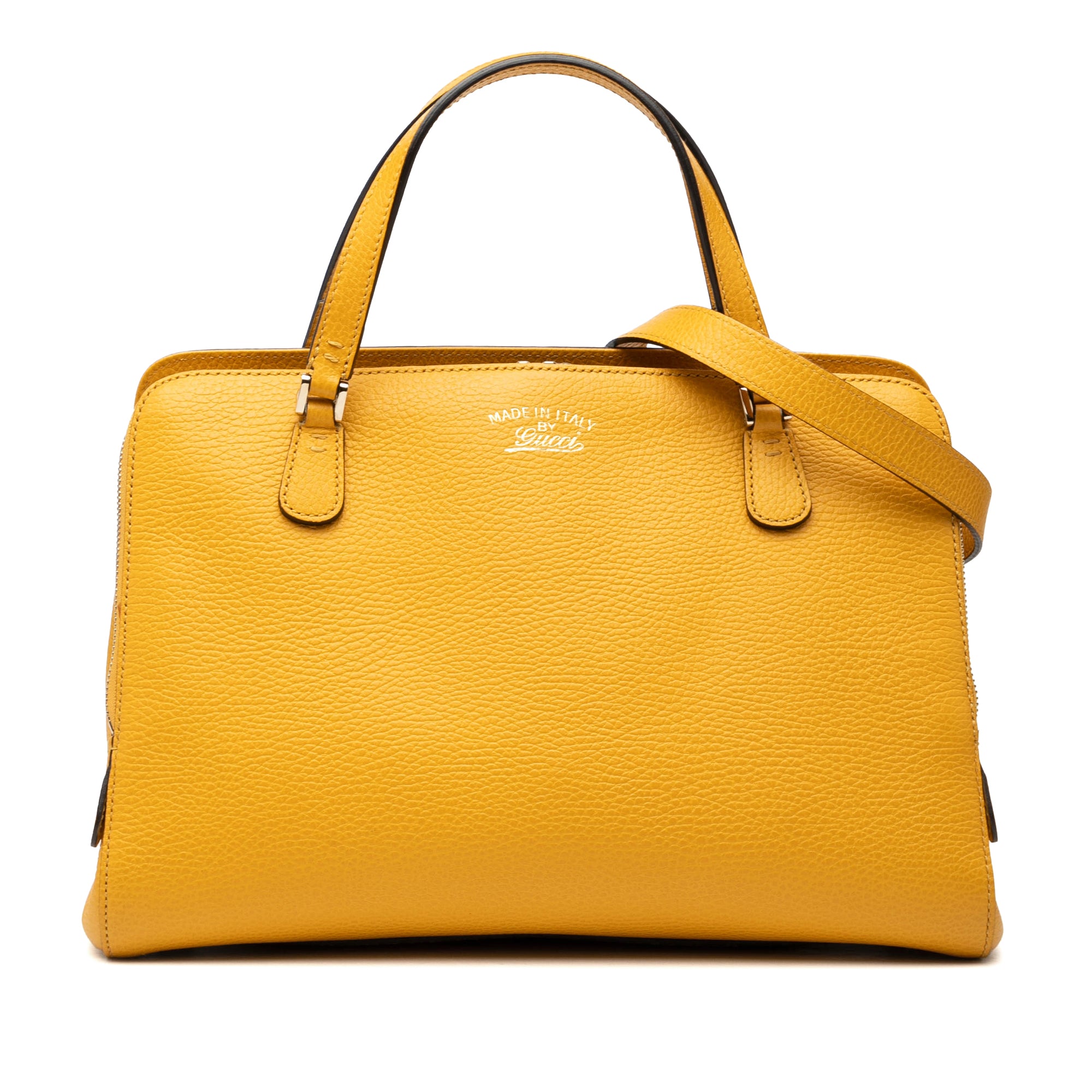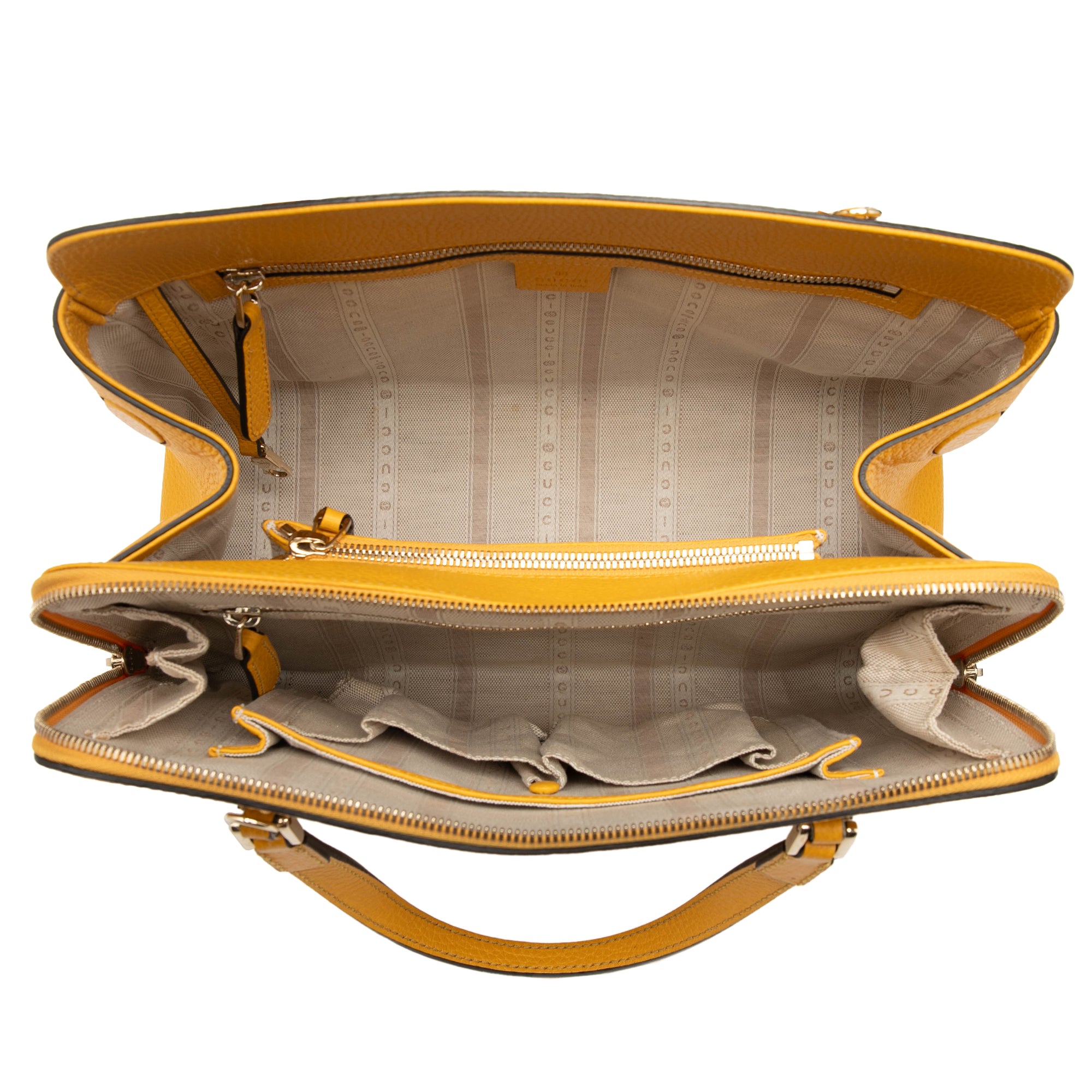 The Swing features a leather body, flat leather handles, a detachable flat leather strap, an open top with lobster clasp closure, an interior zip compartment, and interior zip and slip pockets. Retail Price: 1110.00