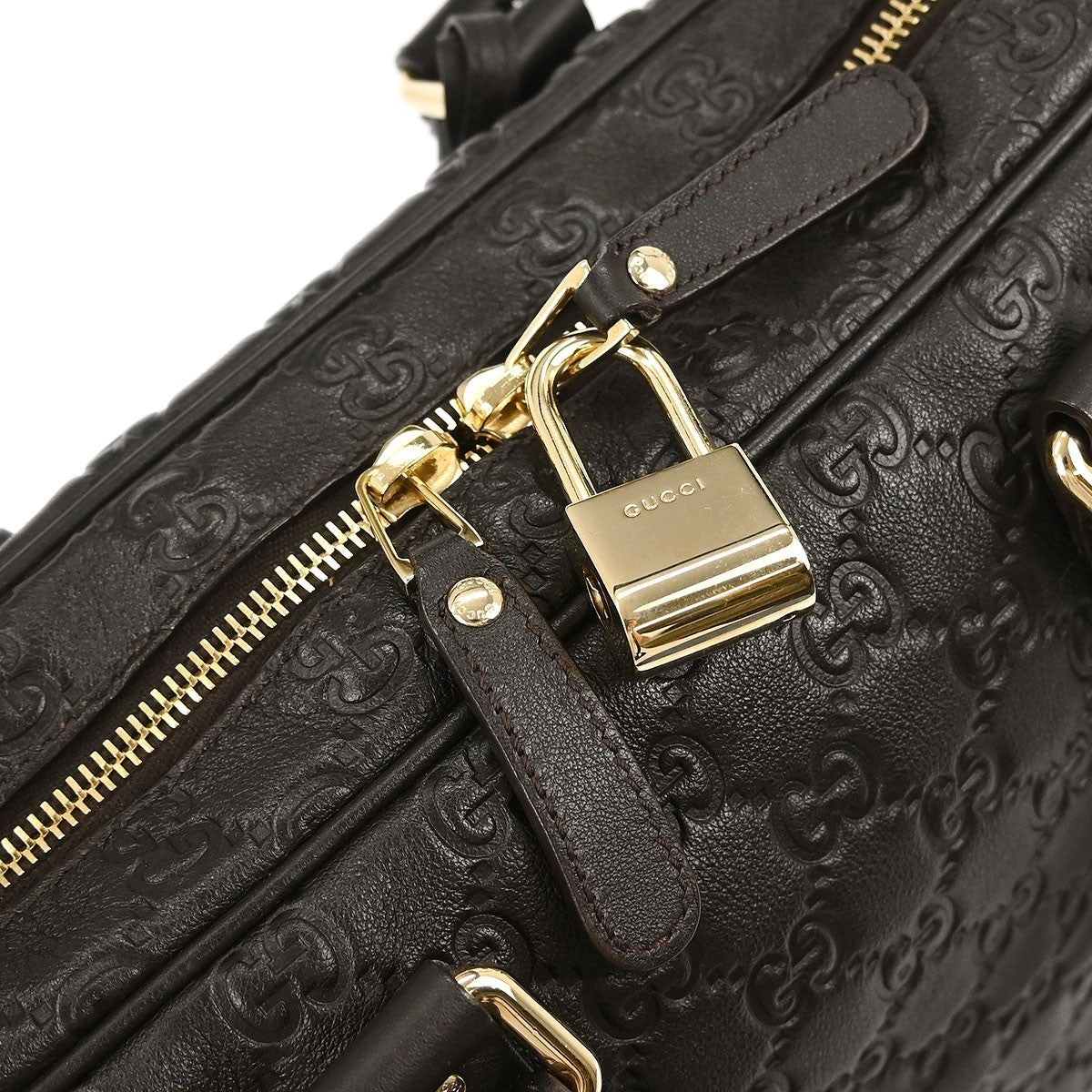 Brand : Gucci Model : Convertible Briefcase Style : Guccissima Leather Serial number : 208463 498879 Inclusions : Padlock, Keys*2, Cover of Key, Shoulder Strap. Spare Cloth