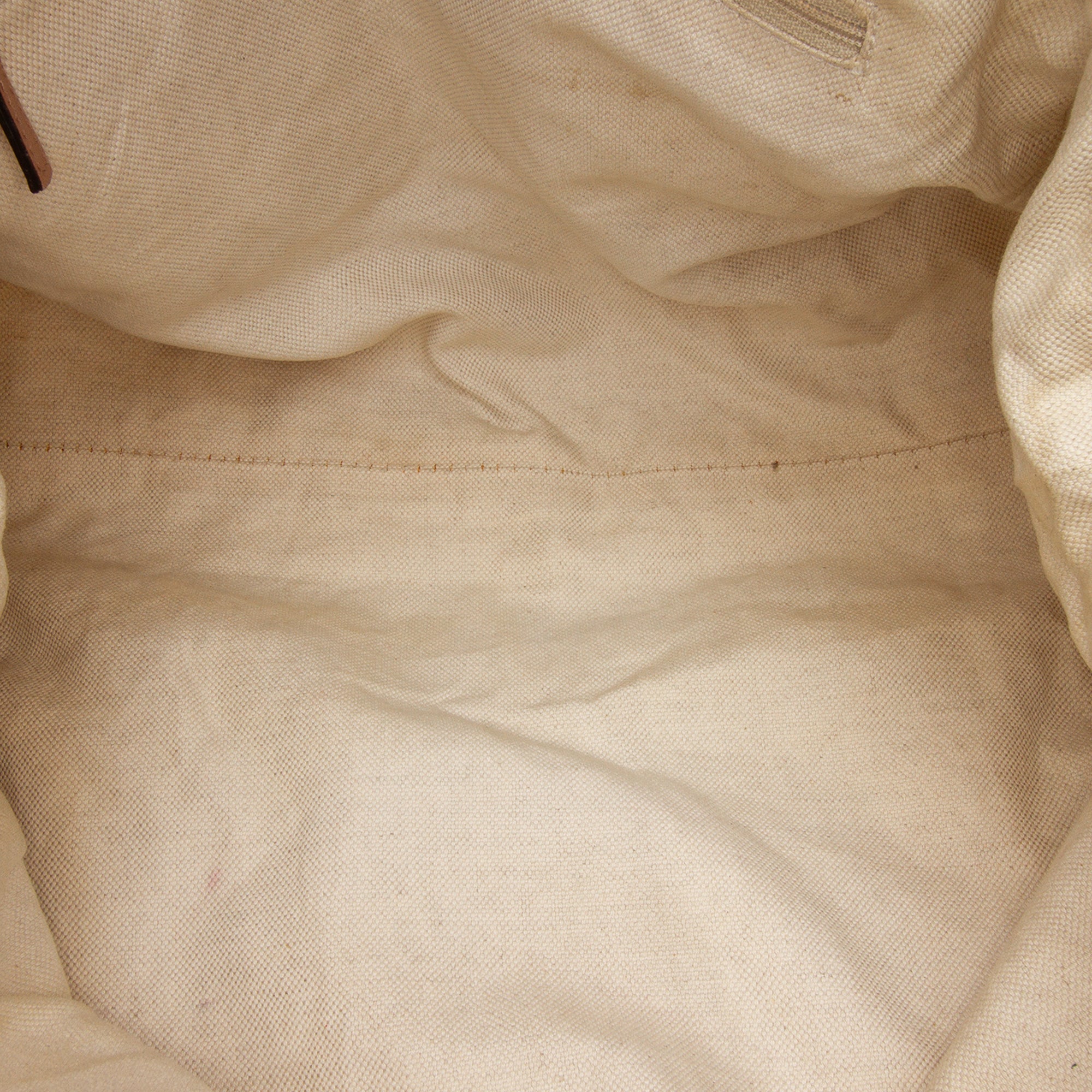 This satchel features a canvas body with leather trim, rolled leather handles, a detachable flat leather shoulder strap, a top zip closure, and an interior zip pocket. Retail Price: 990.00