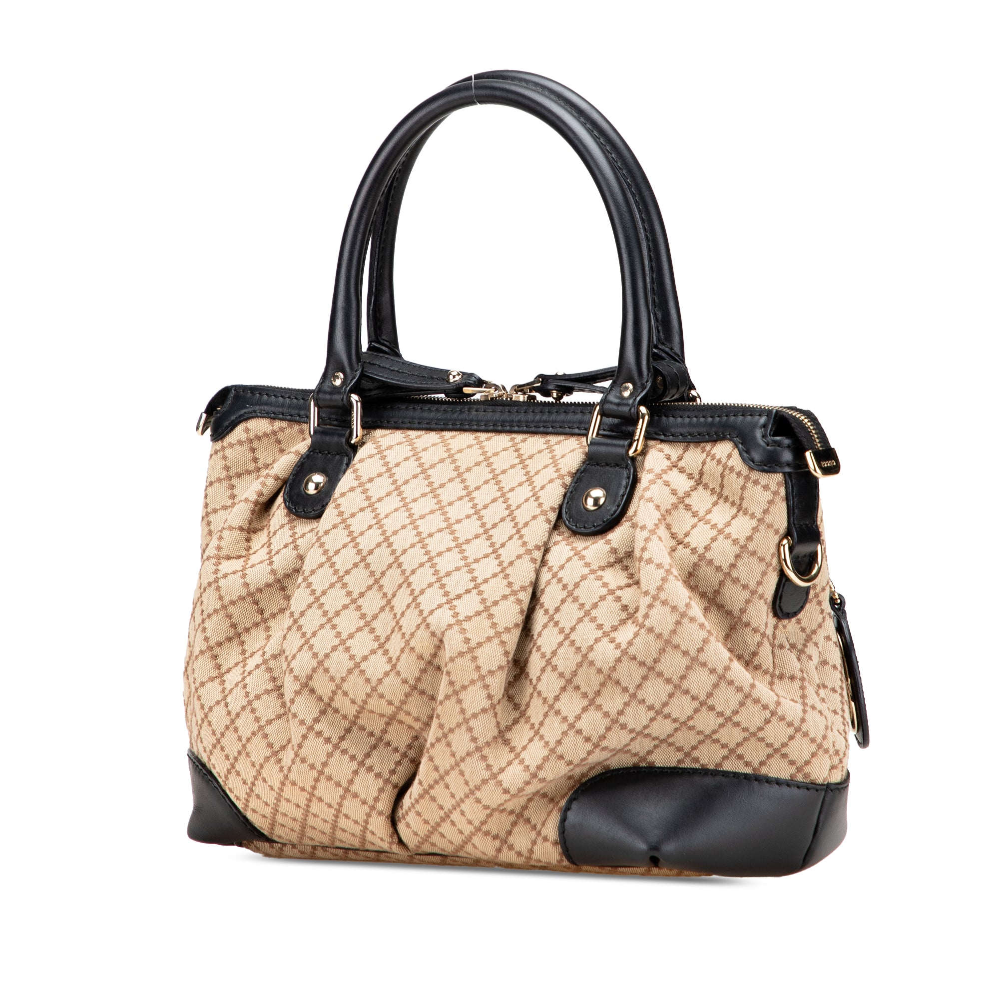 This Sukey features a canvas body with leather trim, rolled leather handles, a top zip closure, and interior zip and slip pockets. Retail Price: 900.00
