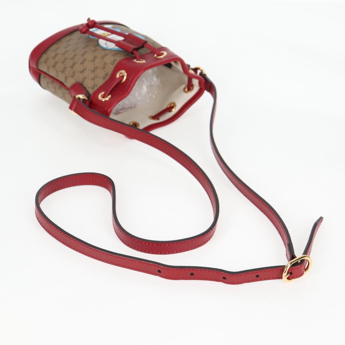 Brand : Gucci Model : Doraemon Bucket Bag Style : Printed Mini GG Coated Canvas Serial number : 647801 Inclusions : There is no item box and dust bag. We will send only the item which is put in the photo.