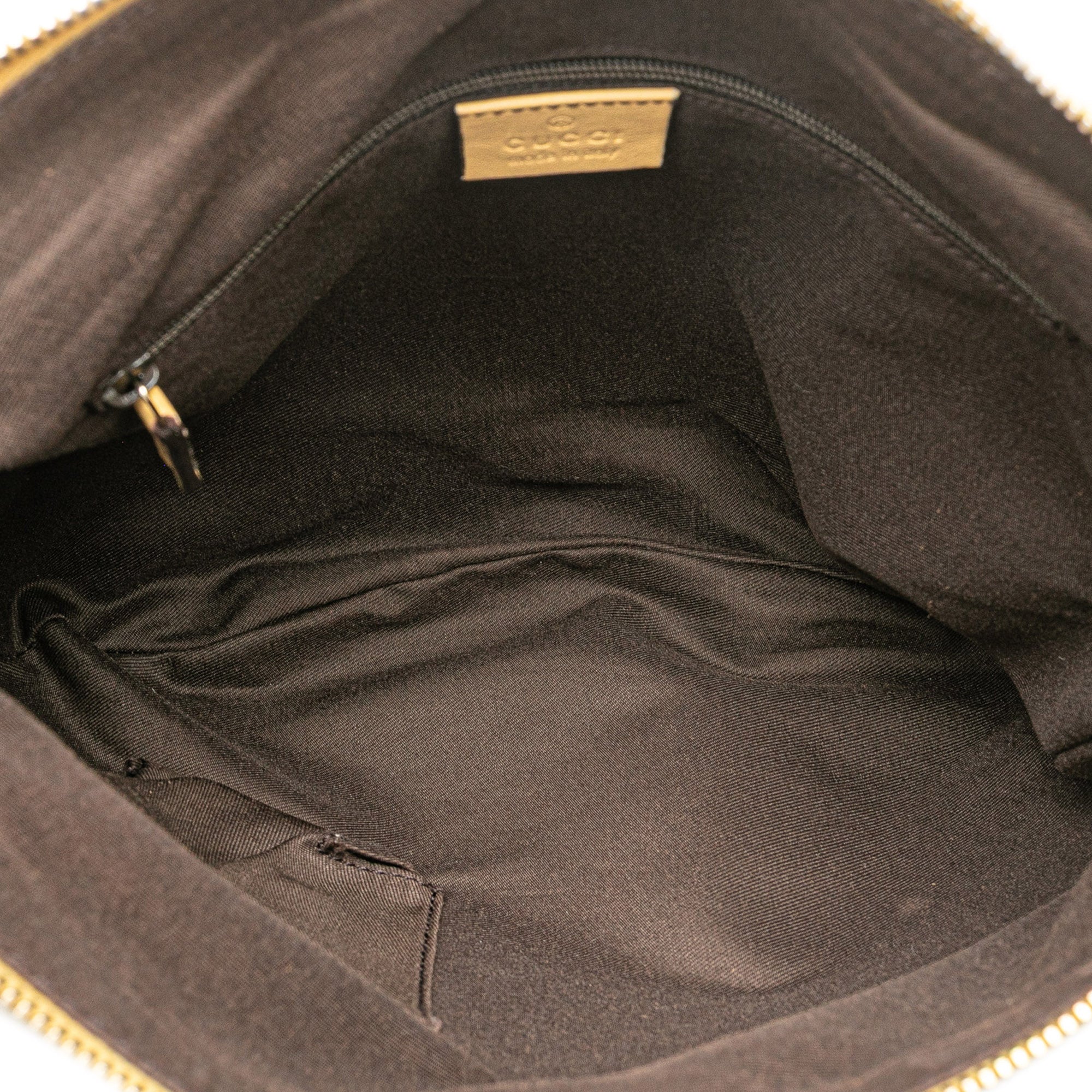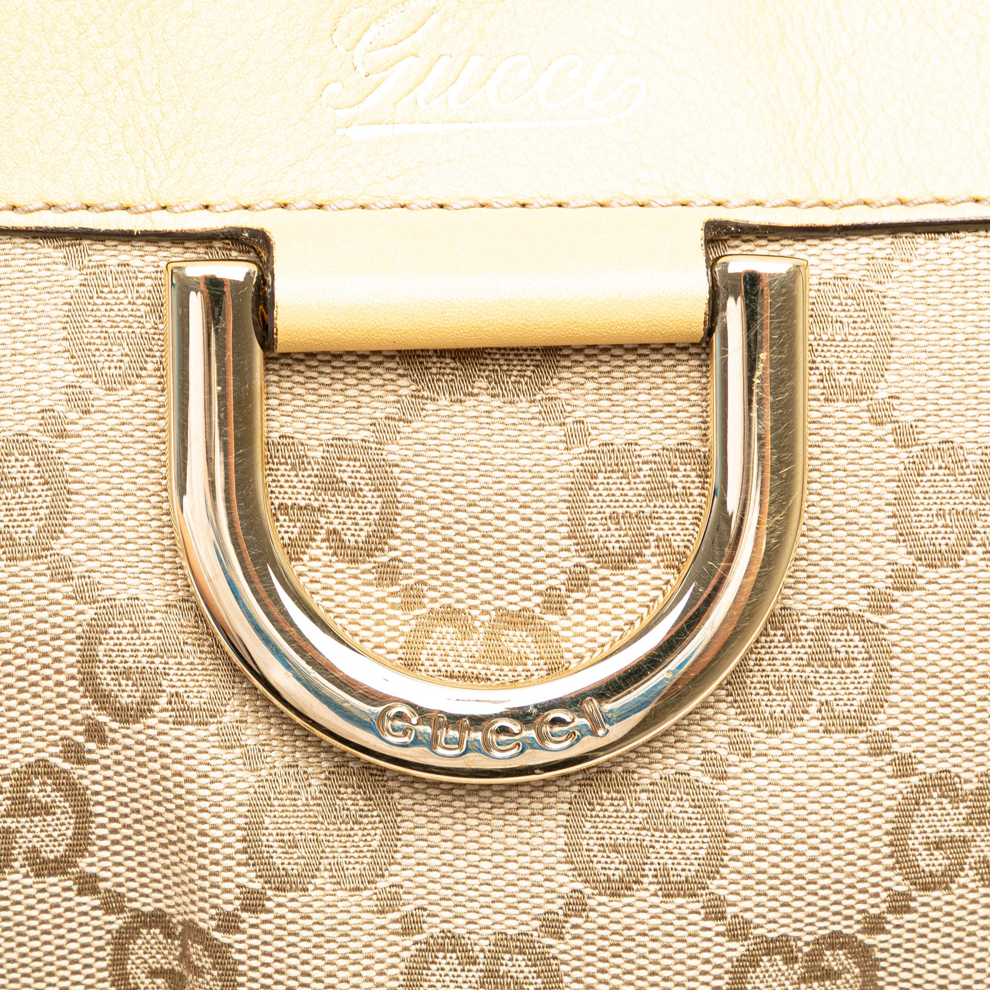 This crossbody bag features a canvas body with leather trim, an adjustable flat leather shoulder strap, a top zip closure, and interior zip and slip pockets. Retail Price: 850.00