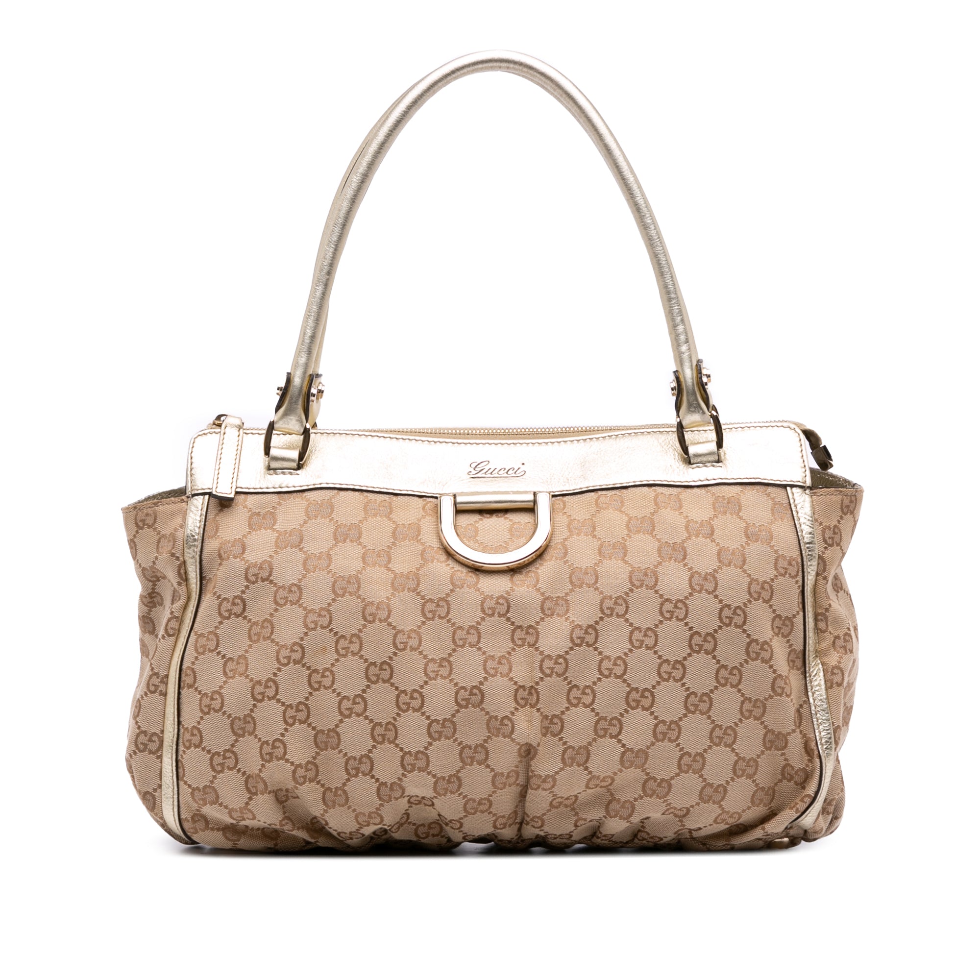 This tote bag features a canvas body with leather trim, rolled leather handles, a top zip closure, and interior zip and slip pockets. Retail Price: 895.00