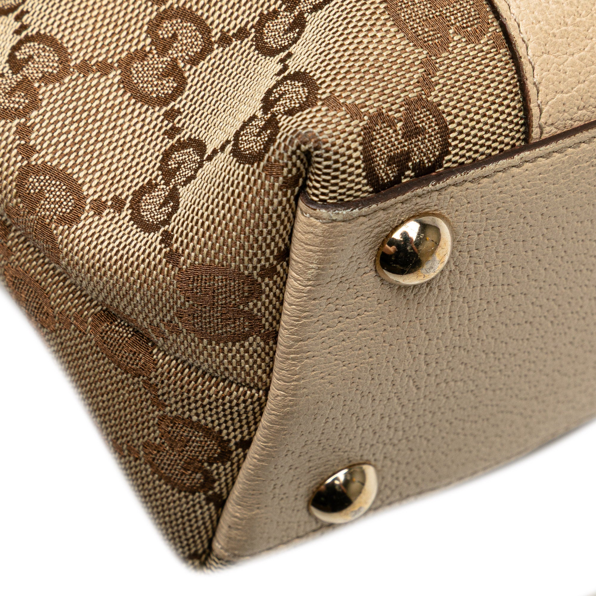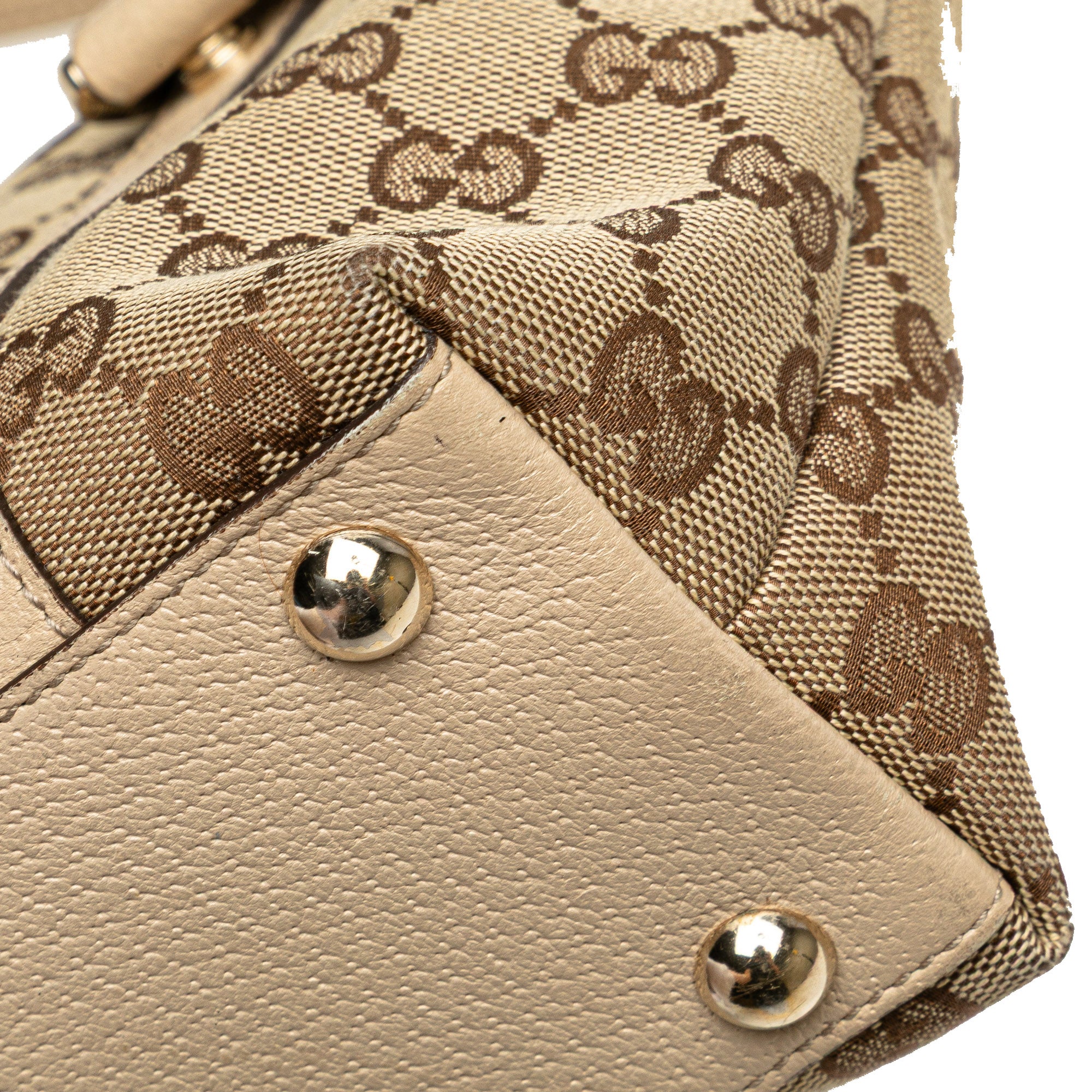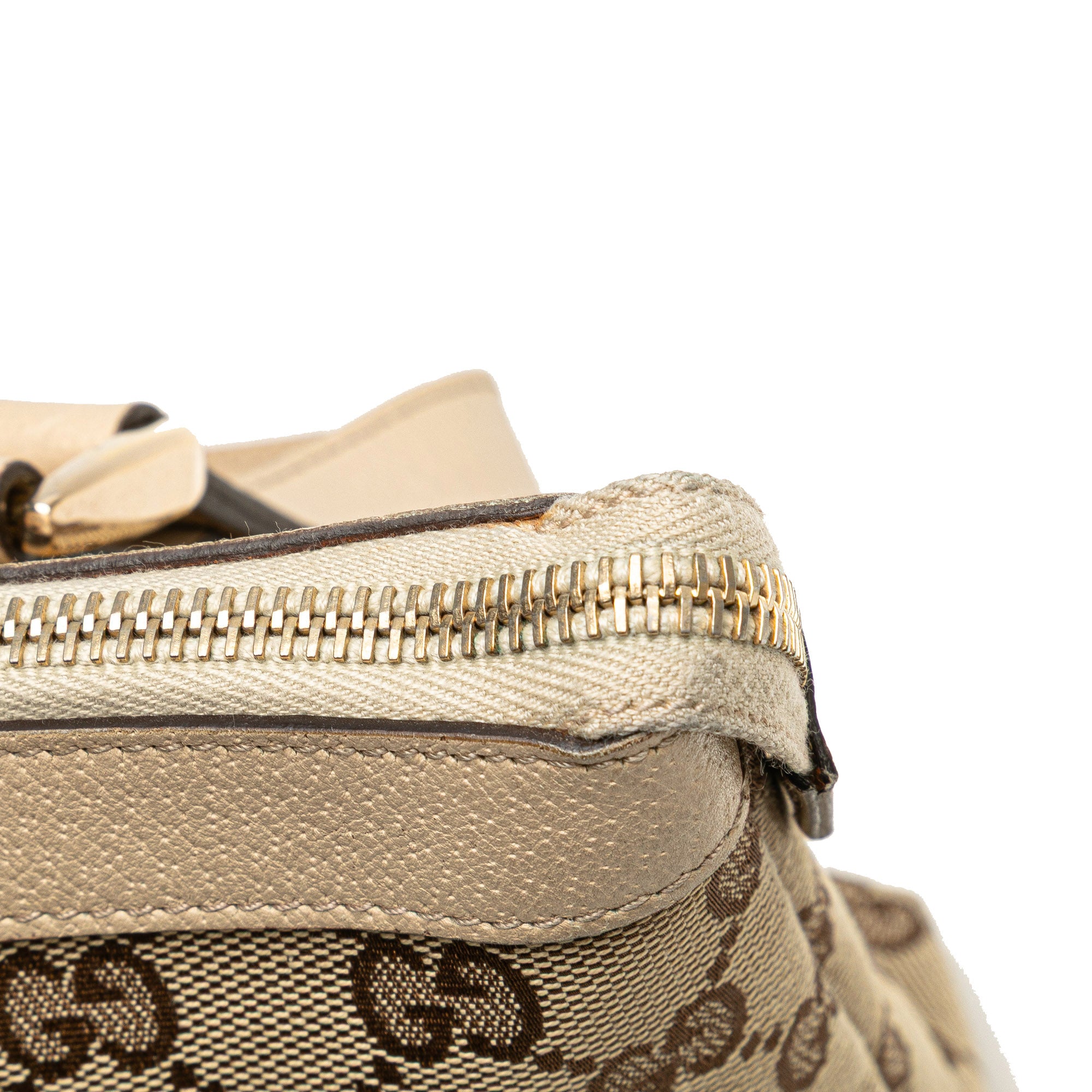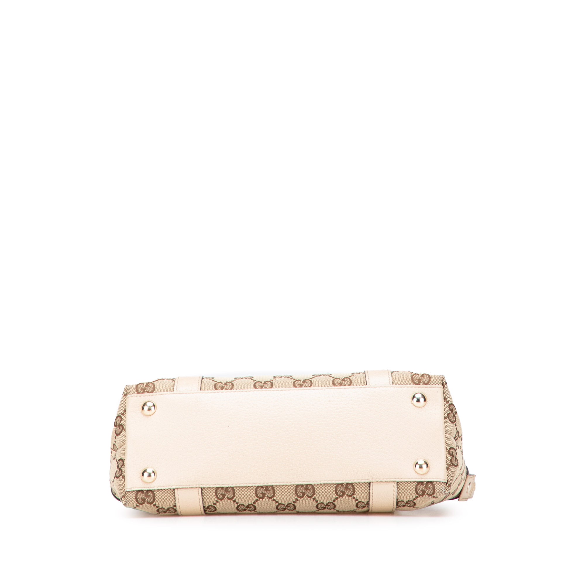 This tote bag features a canvas body with leather trim, flat leather straps, top zip closure, and an interior zip and slip pockets. Inclusion: Dust bag. Retail Price: 850.00