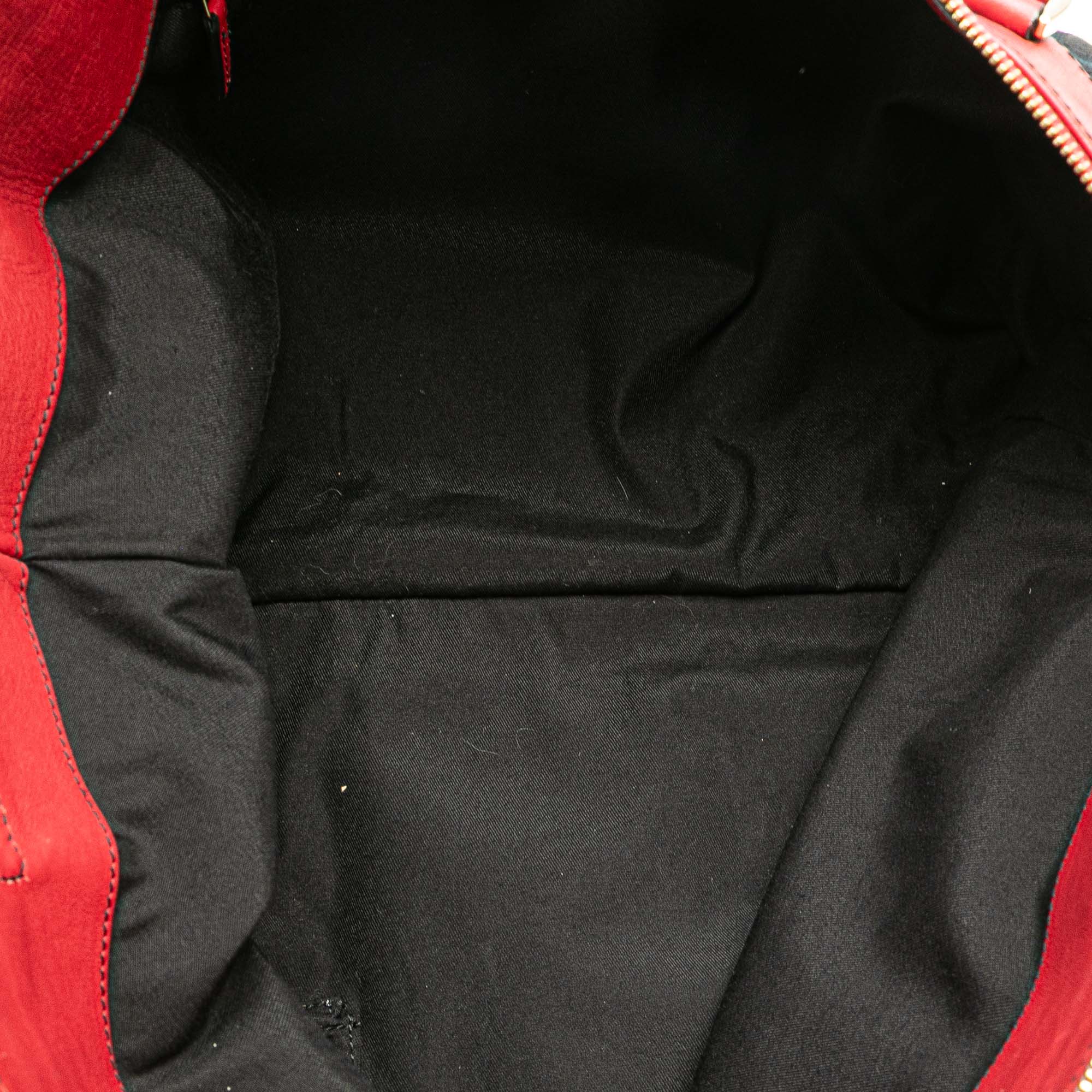 This tote bag features a canvas body with leather trim, rolled leather straps, a top zip closure, and interior zip and slip pockets. Retail Price: 800.00