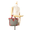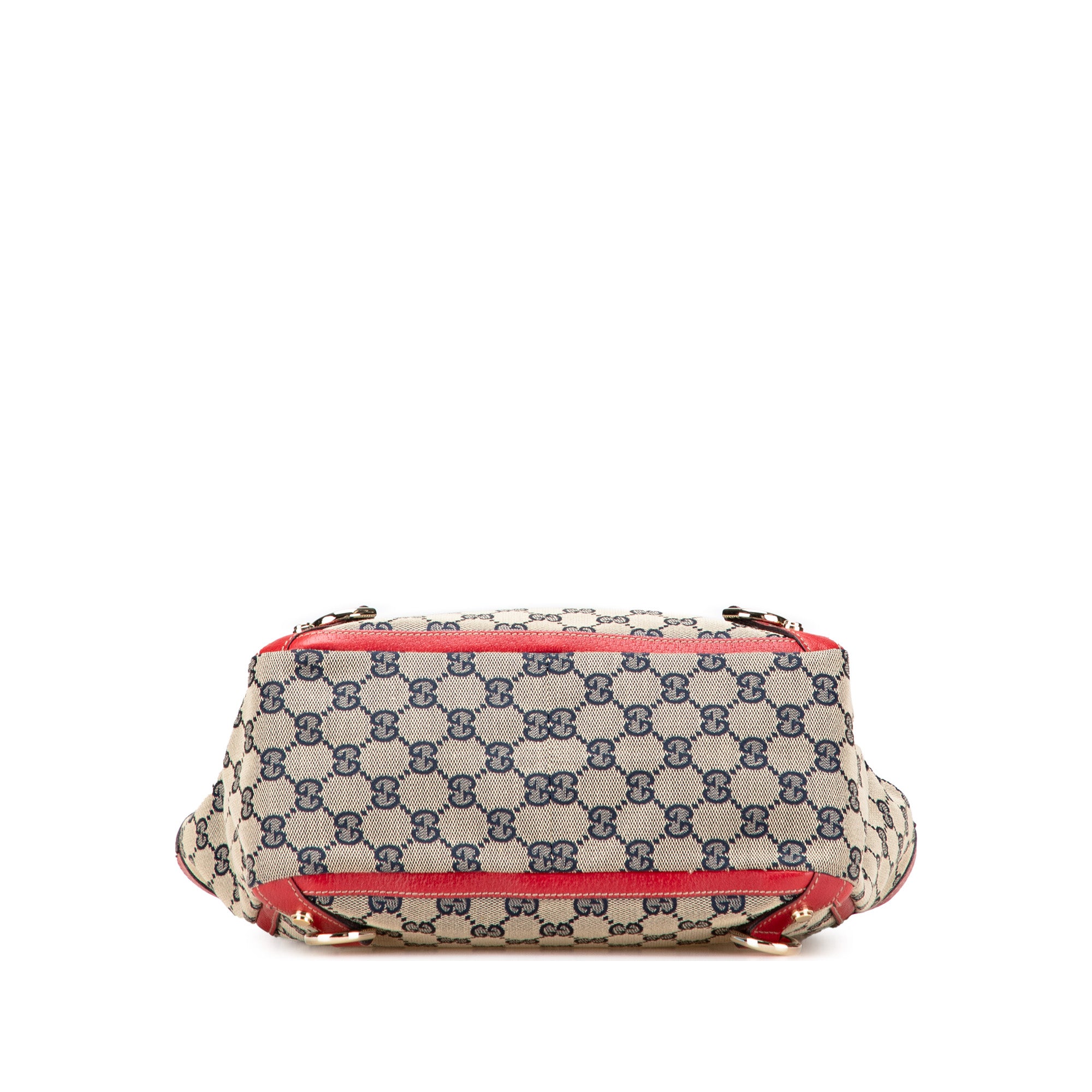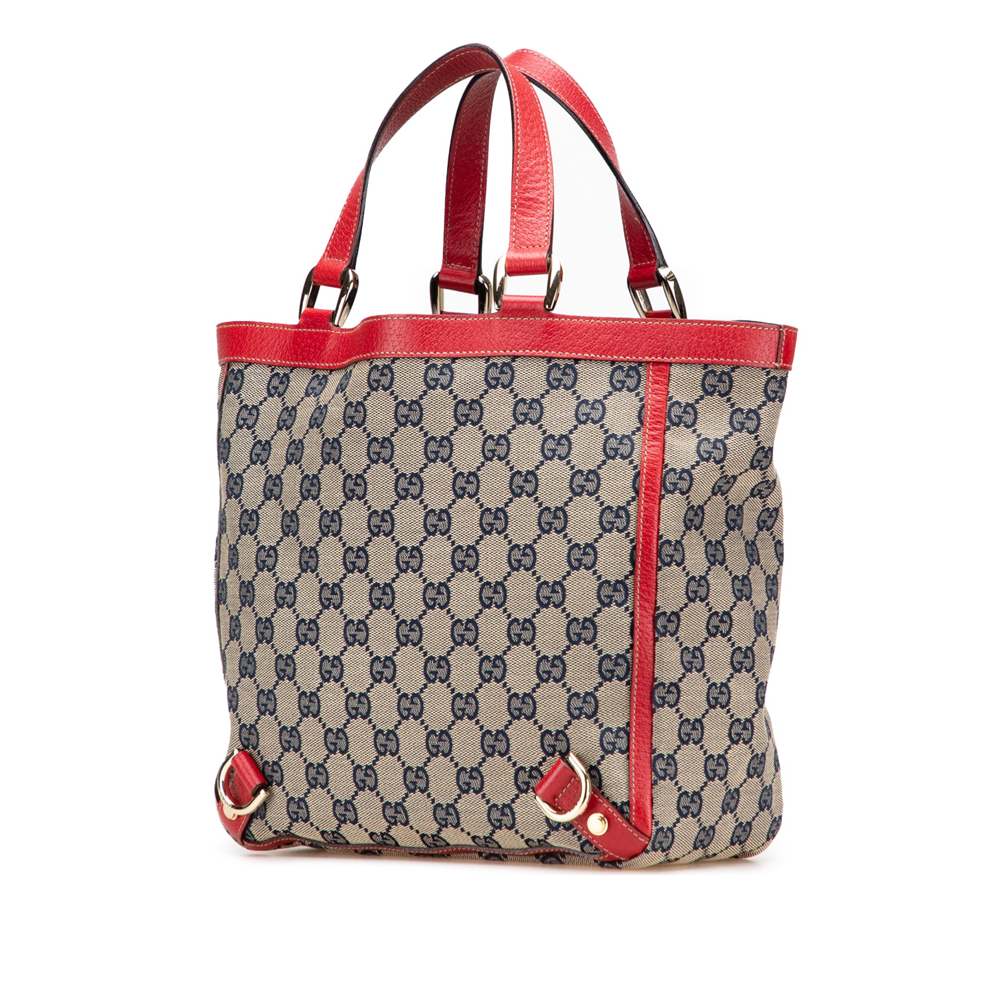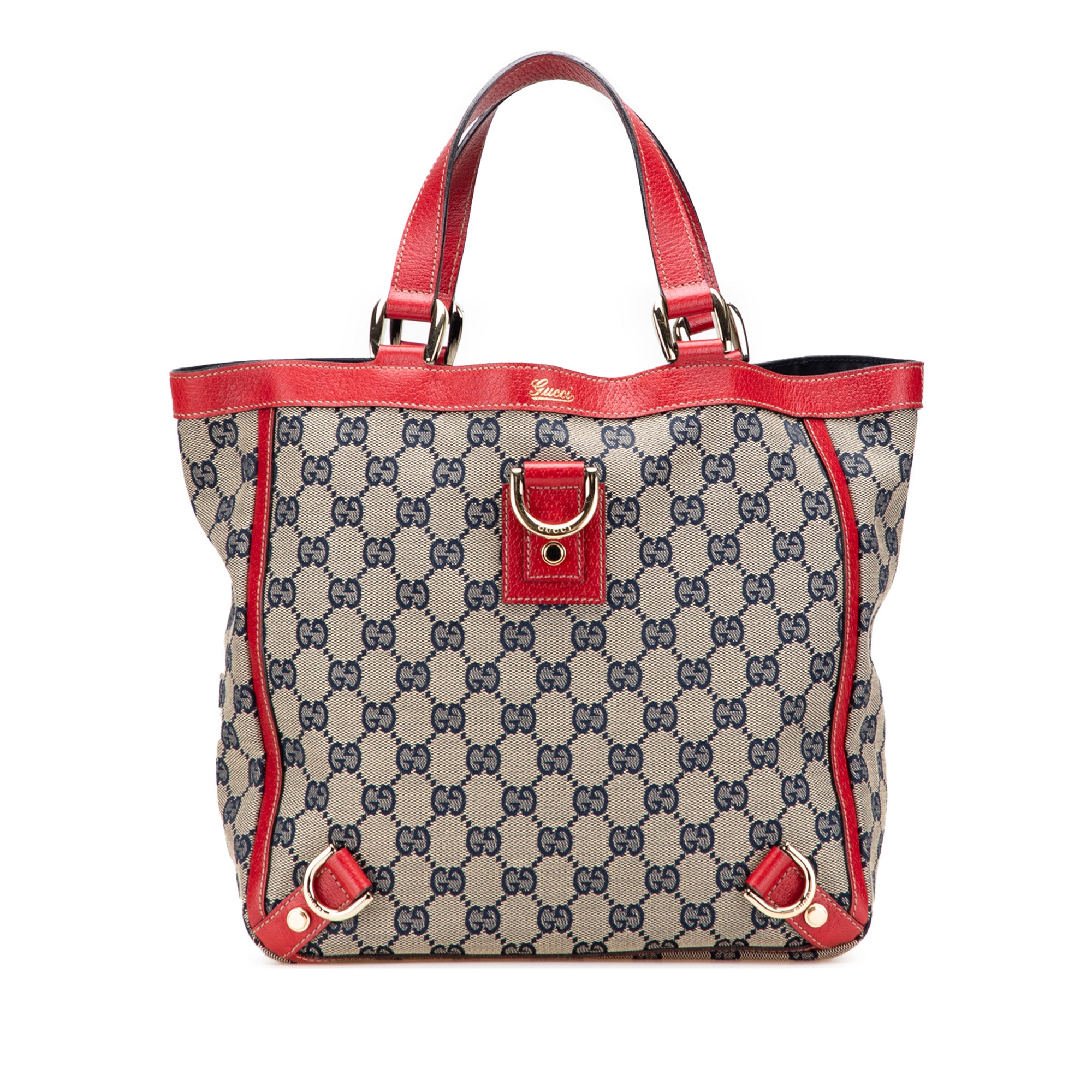 This Abbey tote bag features a canvas body with leather trim, flat leather straps, an open top, and interior zip and slip pockets. Retail Price: 1500.00