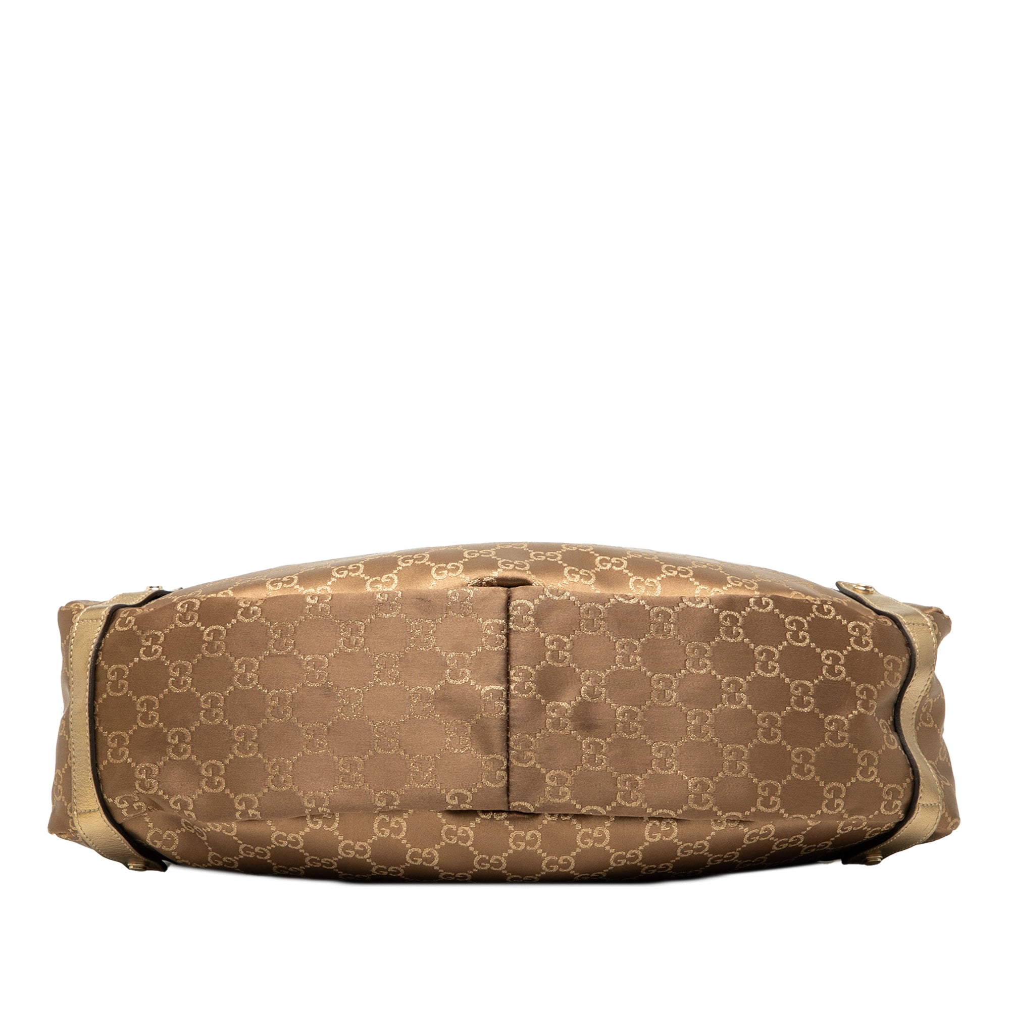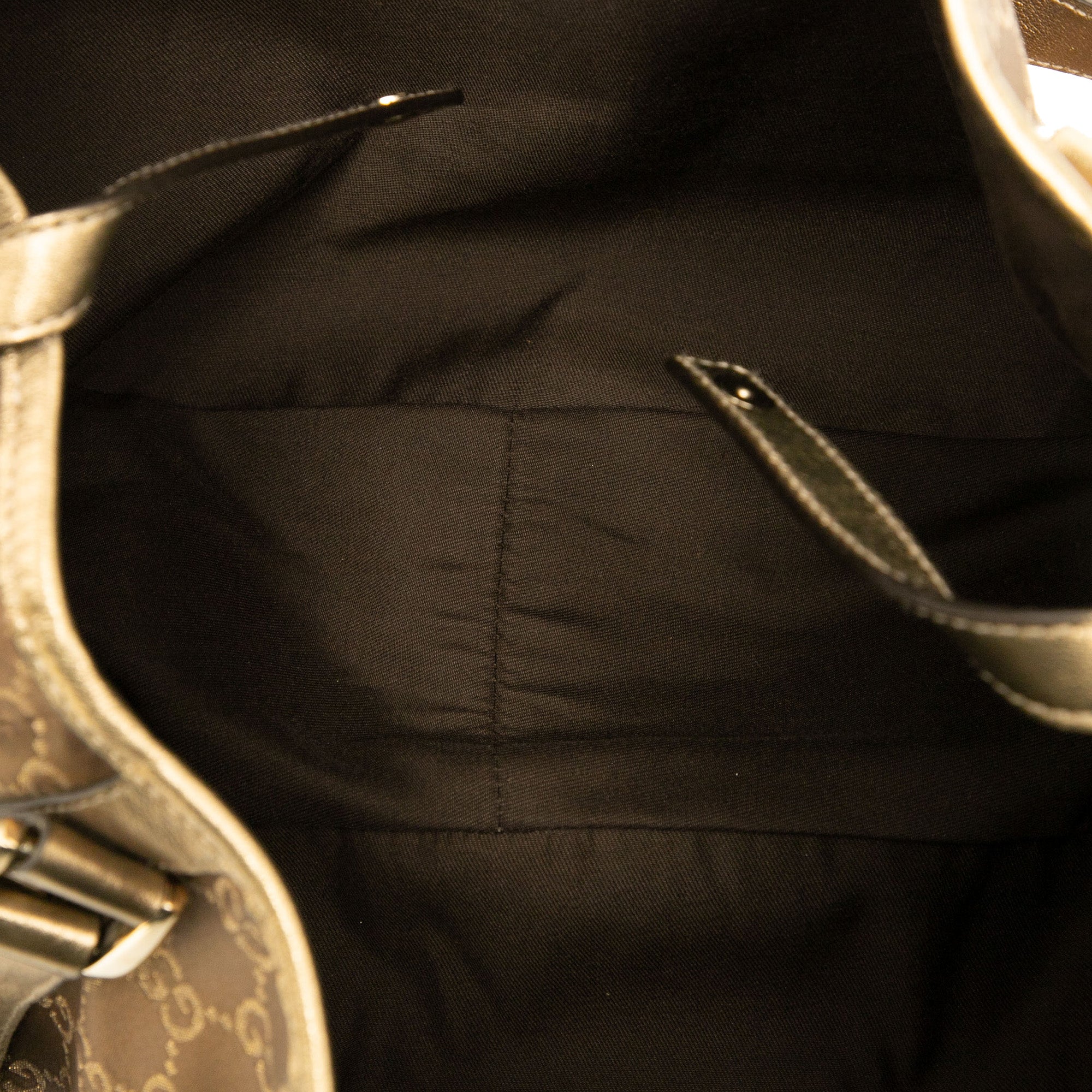 This tote bag features a canvas body with leather trim, flat leather straps, an open top with snap button closure, and interior zip and slip pockets. Retail Price: 980.00