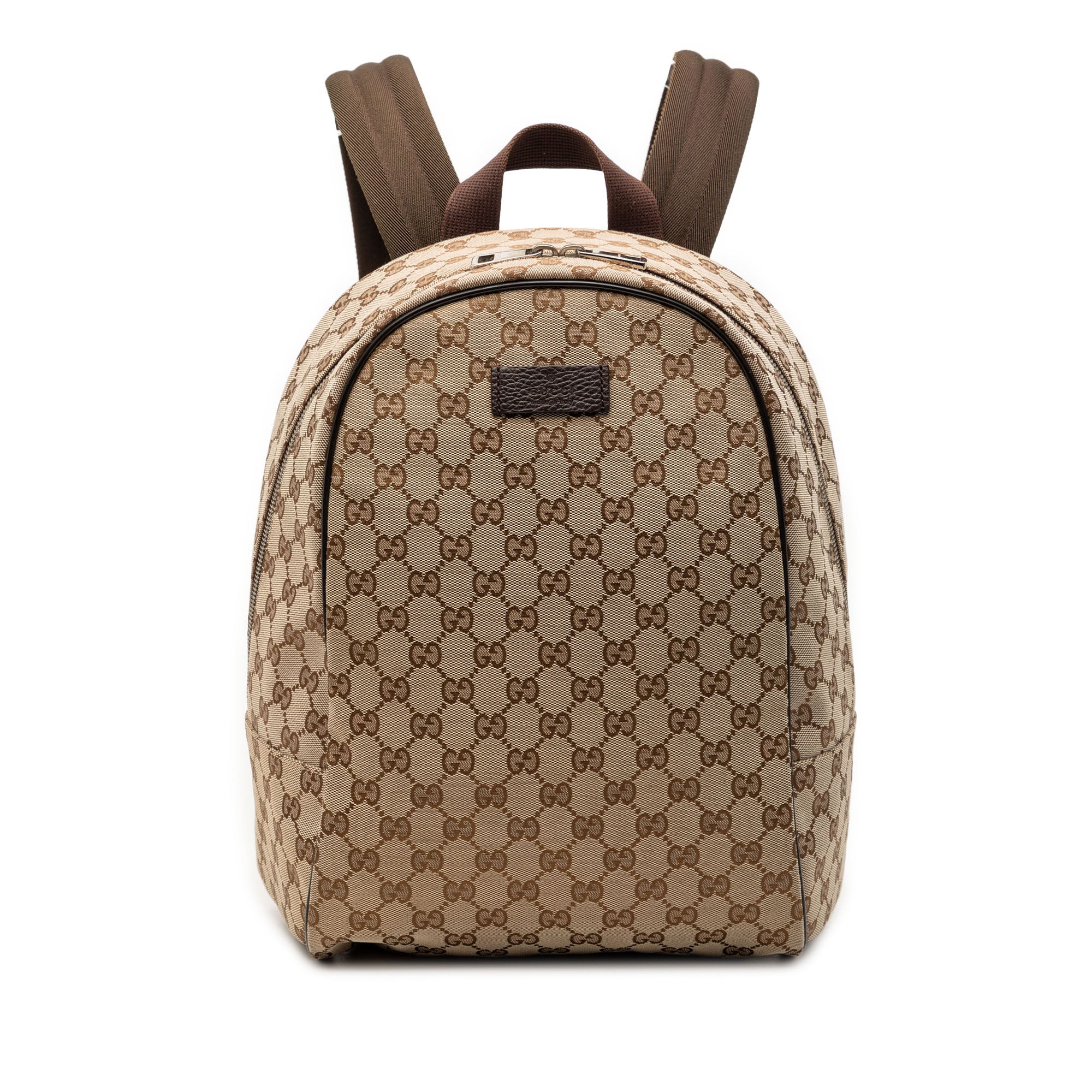 This backpack features a canvas body, a flat top handle, flat adjustable back straps, a two way top zip closure, and an interior zip pocket. Retail Price: 1560.00