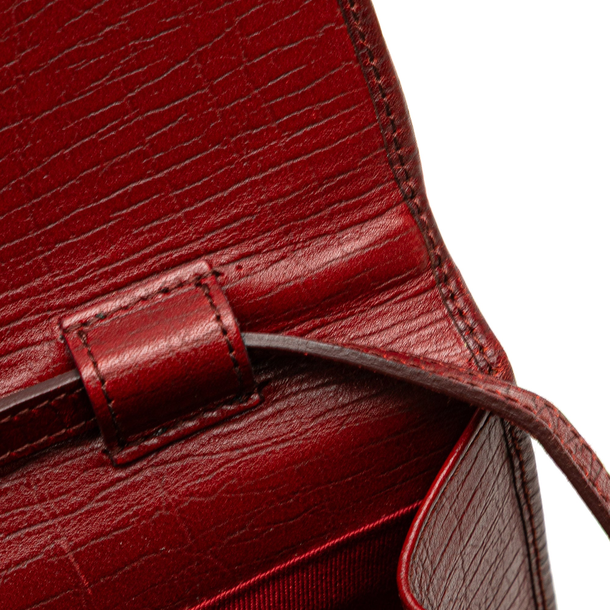 The Bamboo Bar crossbody features a canvas body with leather trim, a flat leather strap, a top flap with magnetic snap closure, and an interior slip pocket. Retail Price: 830.00