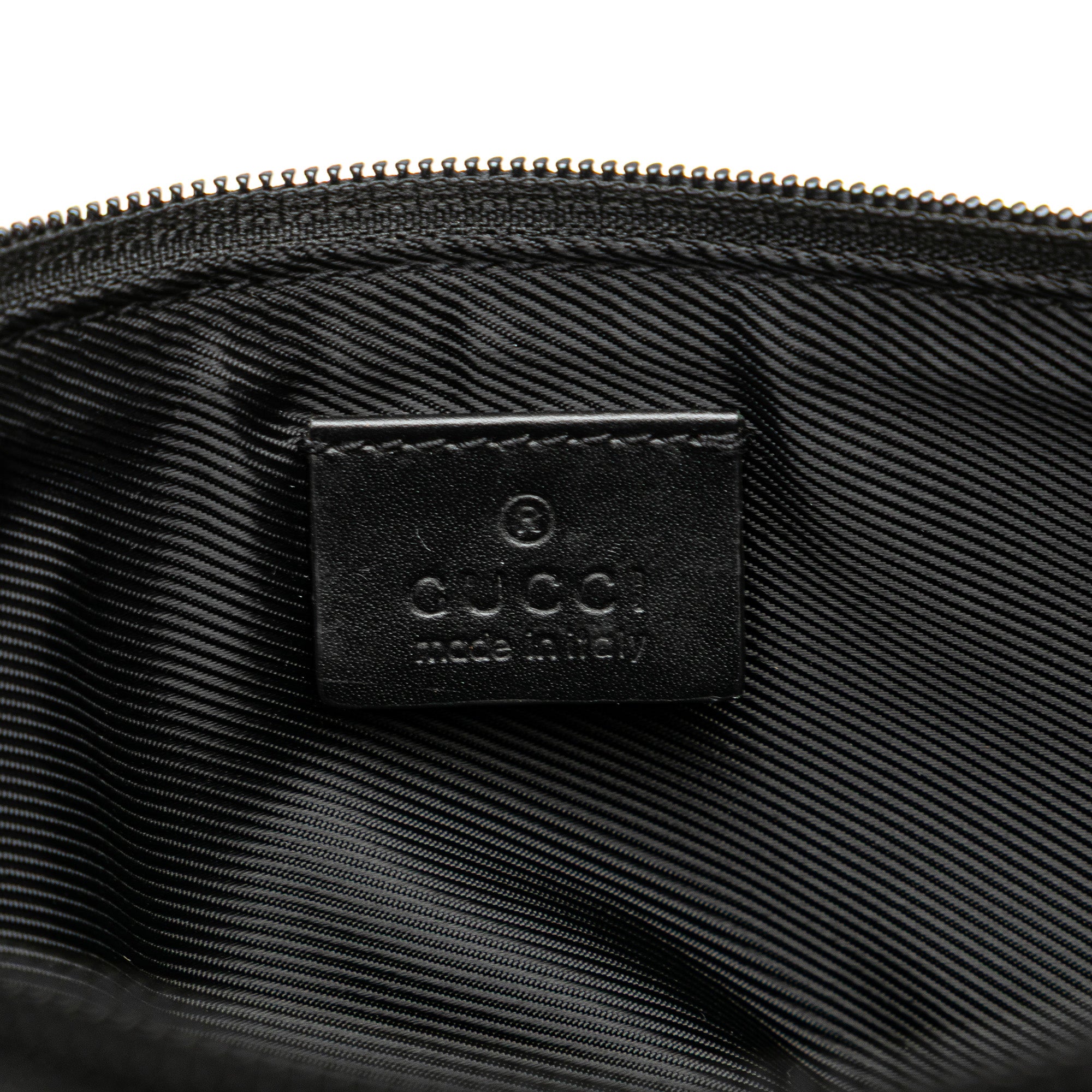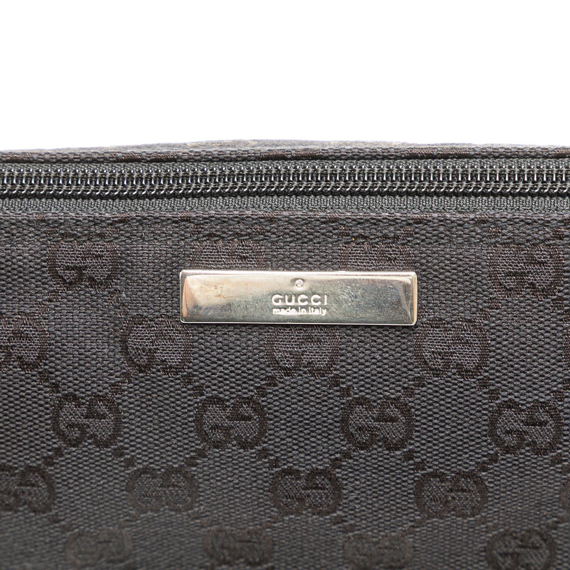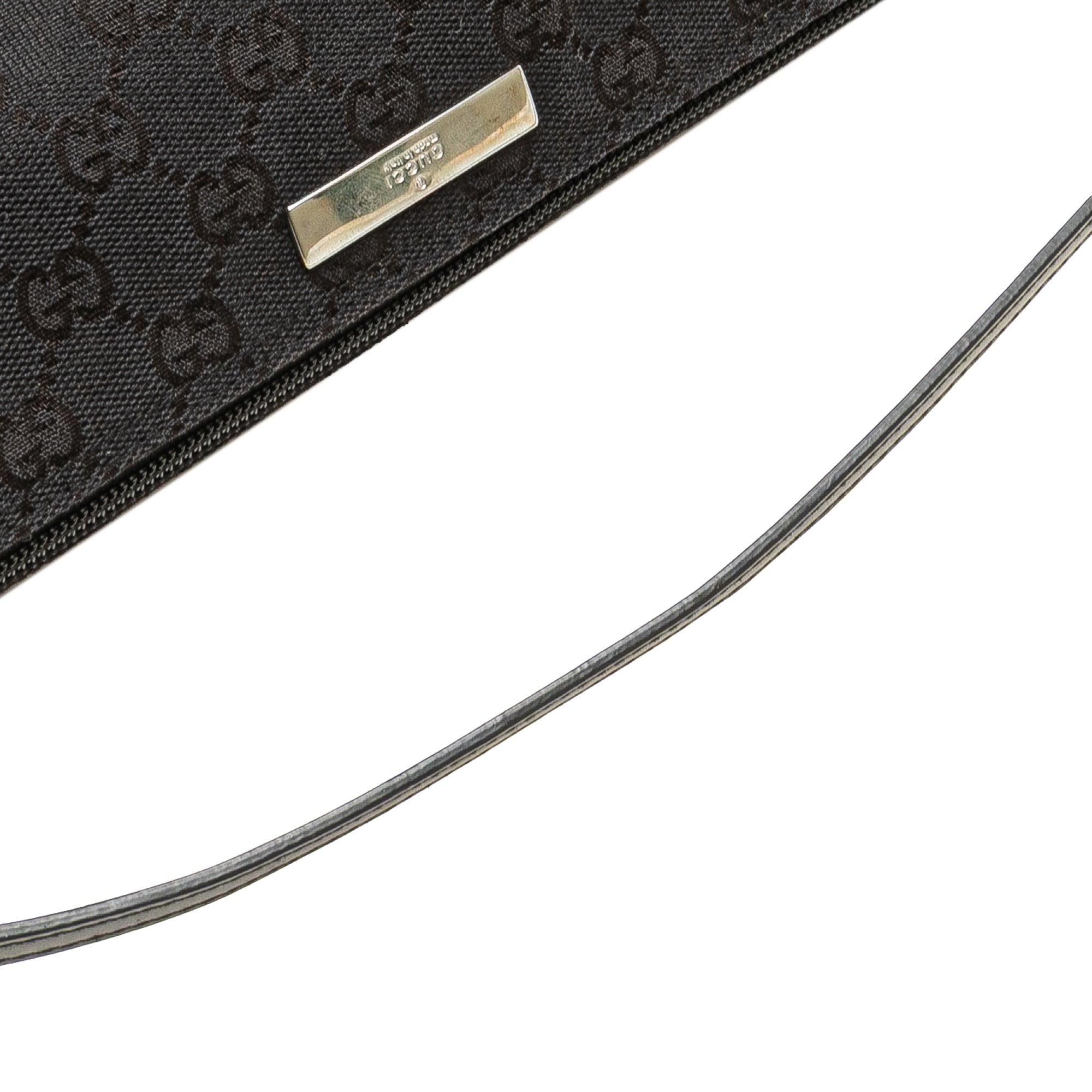 This shoulder bag features a canvas body with leather trim, a flat leather strap, and a top zip closure. Retail Price: 675.00