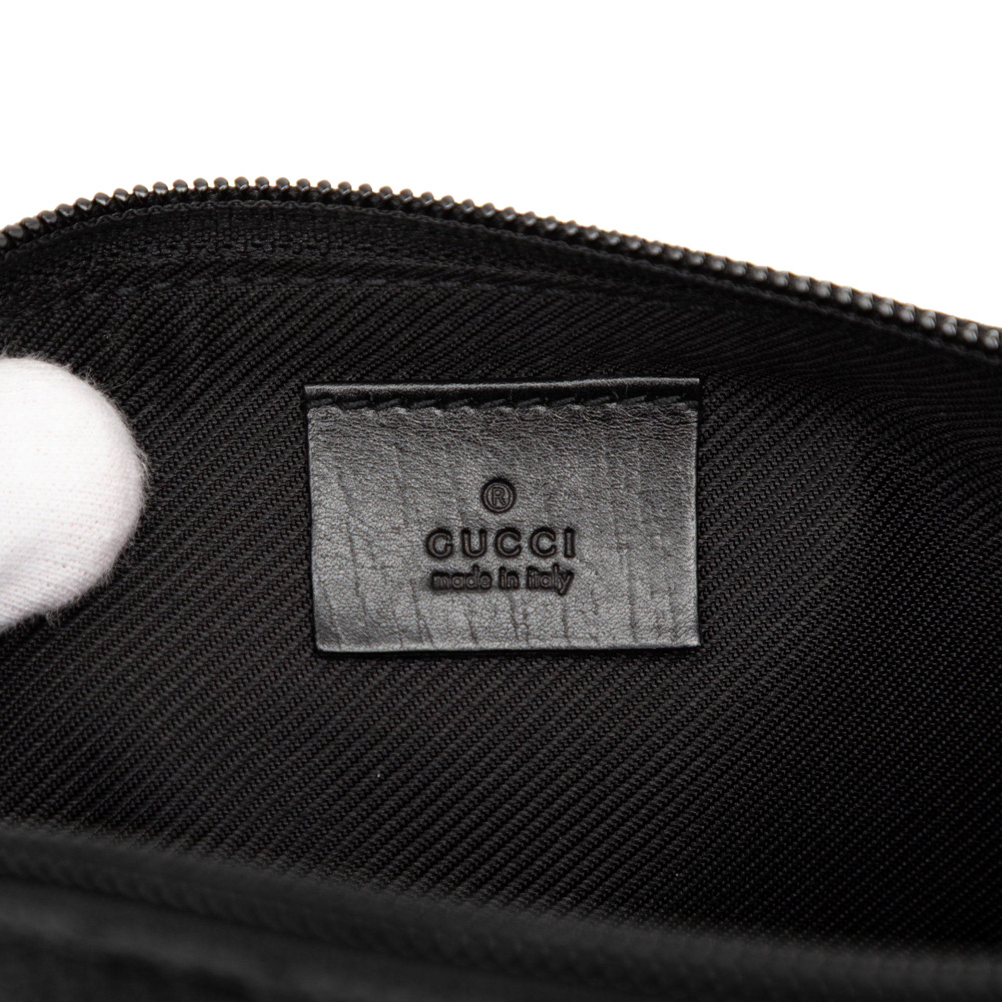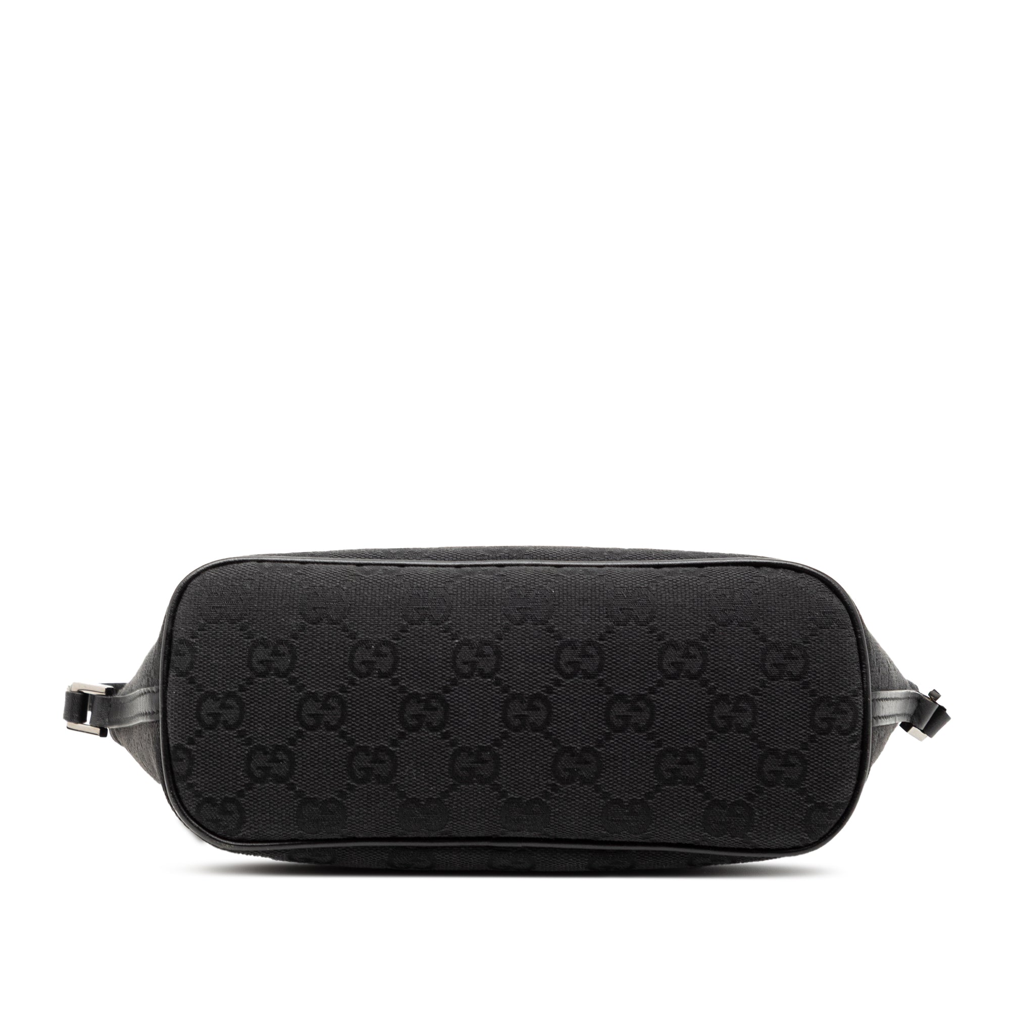 This shoulder bag features a canvas body with leather trim, a flat leather strap, and a top zip closure. Retail Price: 675.00