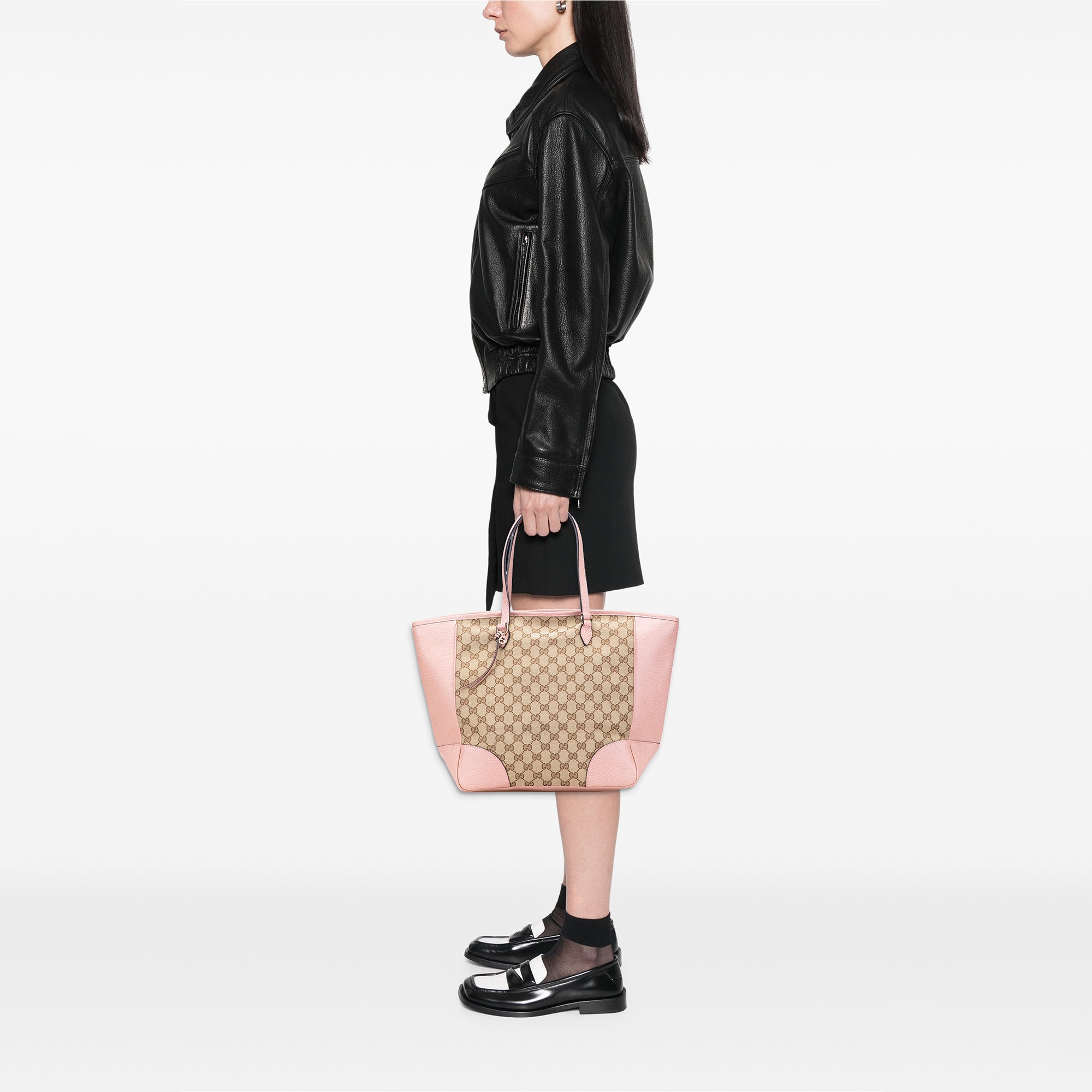 The Bree tote bag features a canvas body with leather trim, flat leather handles, a top zip closure, and interior zip and slip pockets. Retail Price: 1230.00