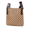 This crossbody bag features a canvas body with leather trim, a front exterior slip pocket, a flat strap, a top zip closure, and an interior slip pocket. Retail Price: 1150.00