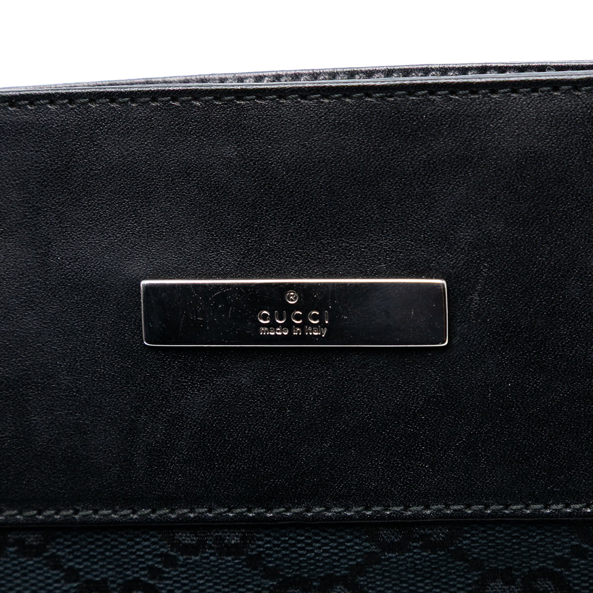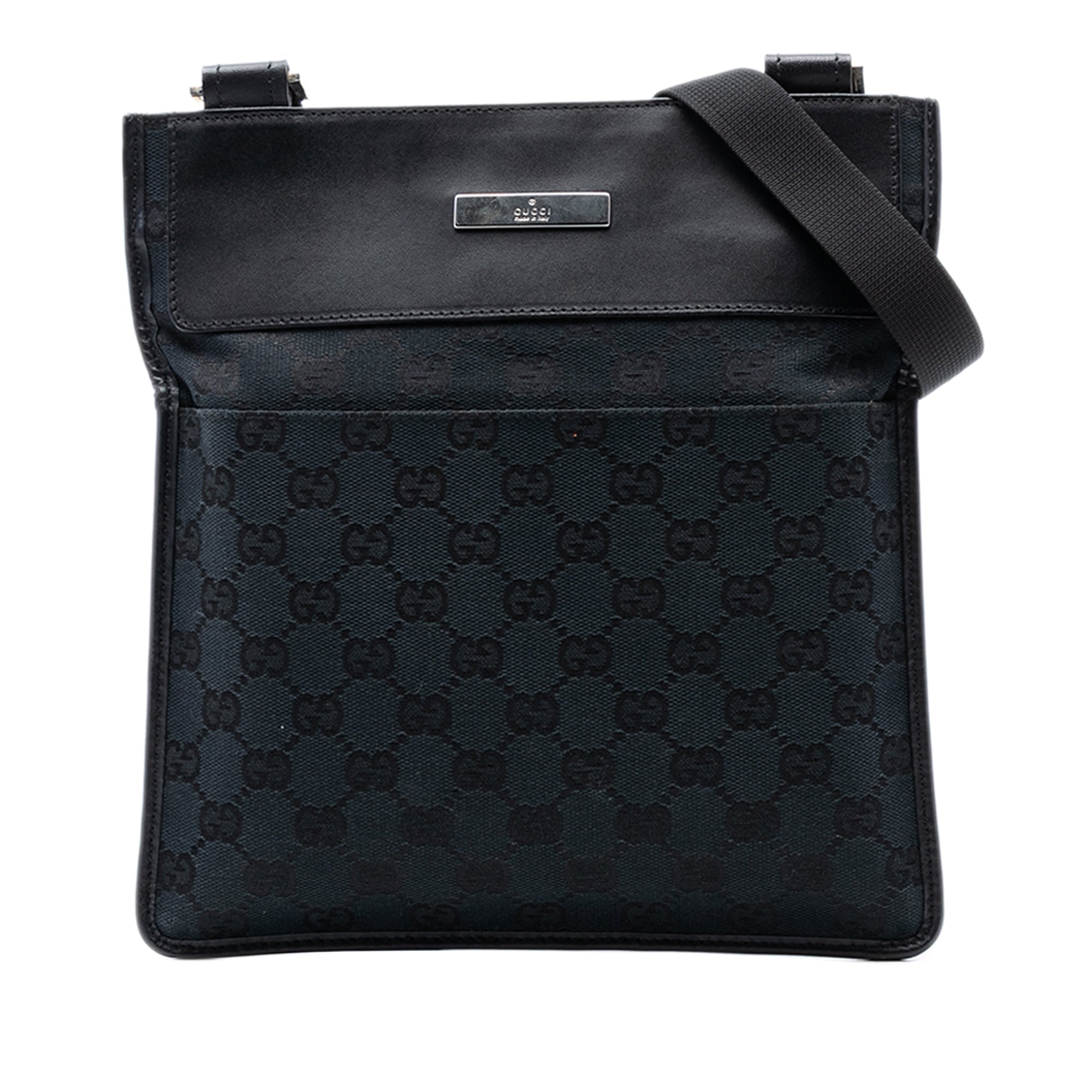 This crossbody bag features a canvas body with leather trim, an adjustable flat shoulder strap, an open top with velcro closure, exterior slip pockets, and an interior zip pocket. Retail Price: 1100.00