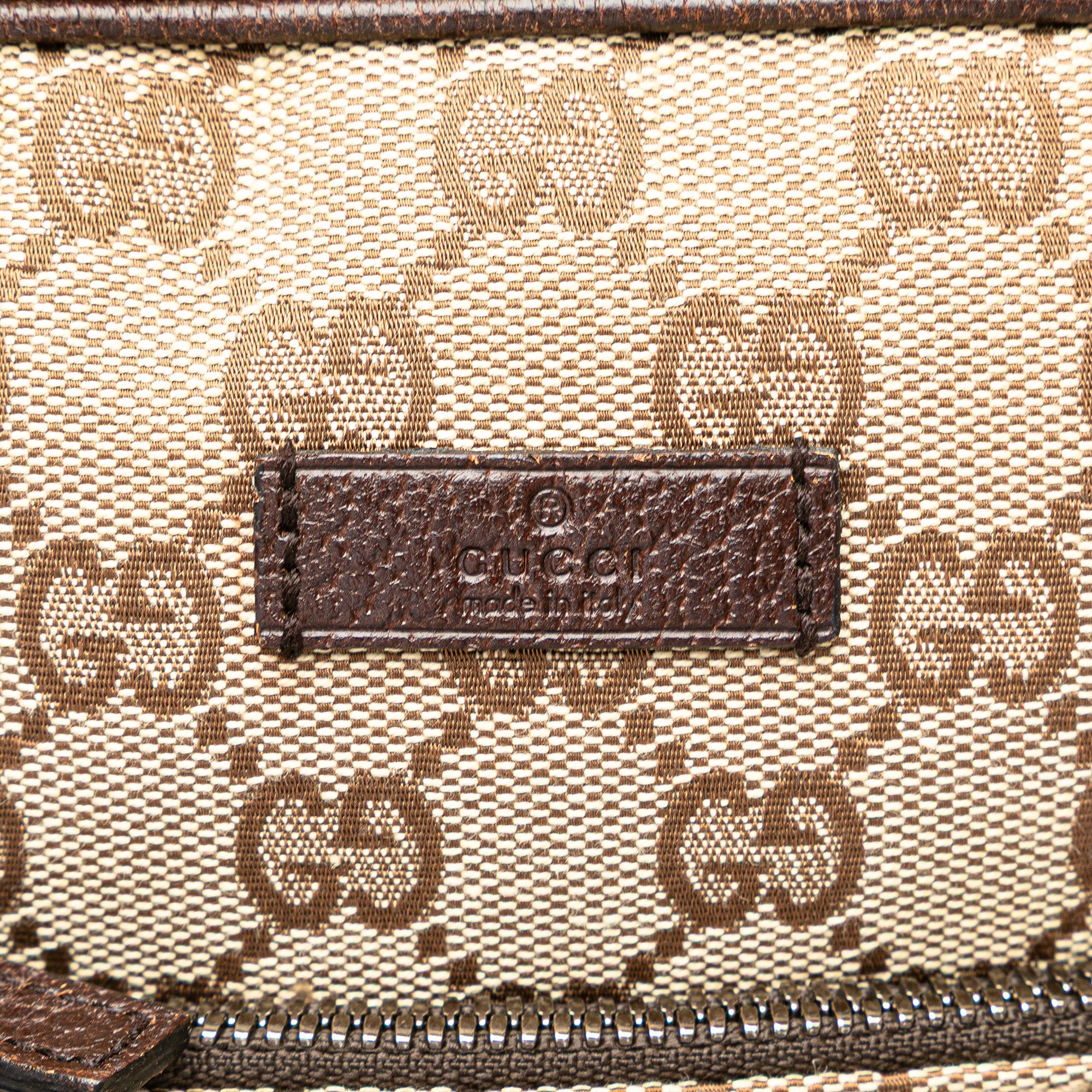 This crossbody bag features a canvas body with leather trim, a flat leather strap, a top zip closure, an exterior front zip pocket, and an interior zip pocket. Retail Price: 800.00
