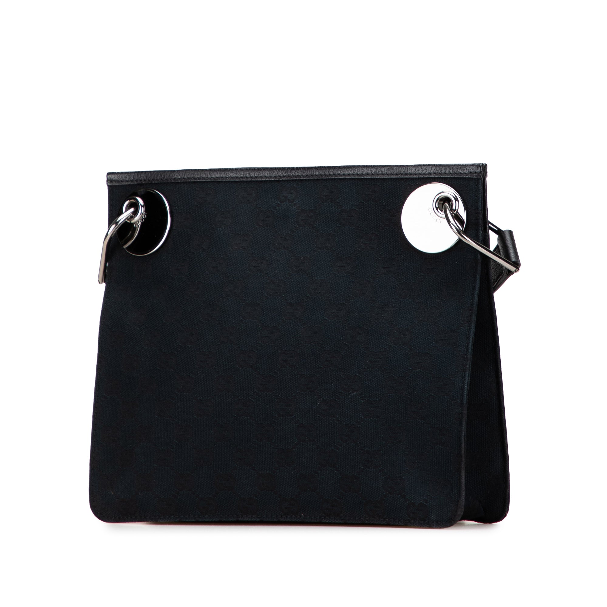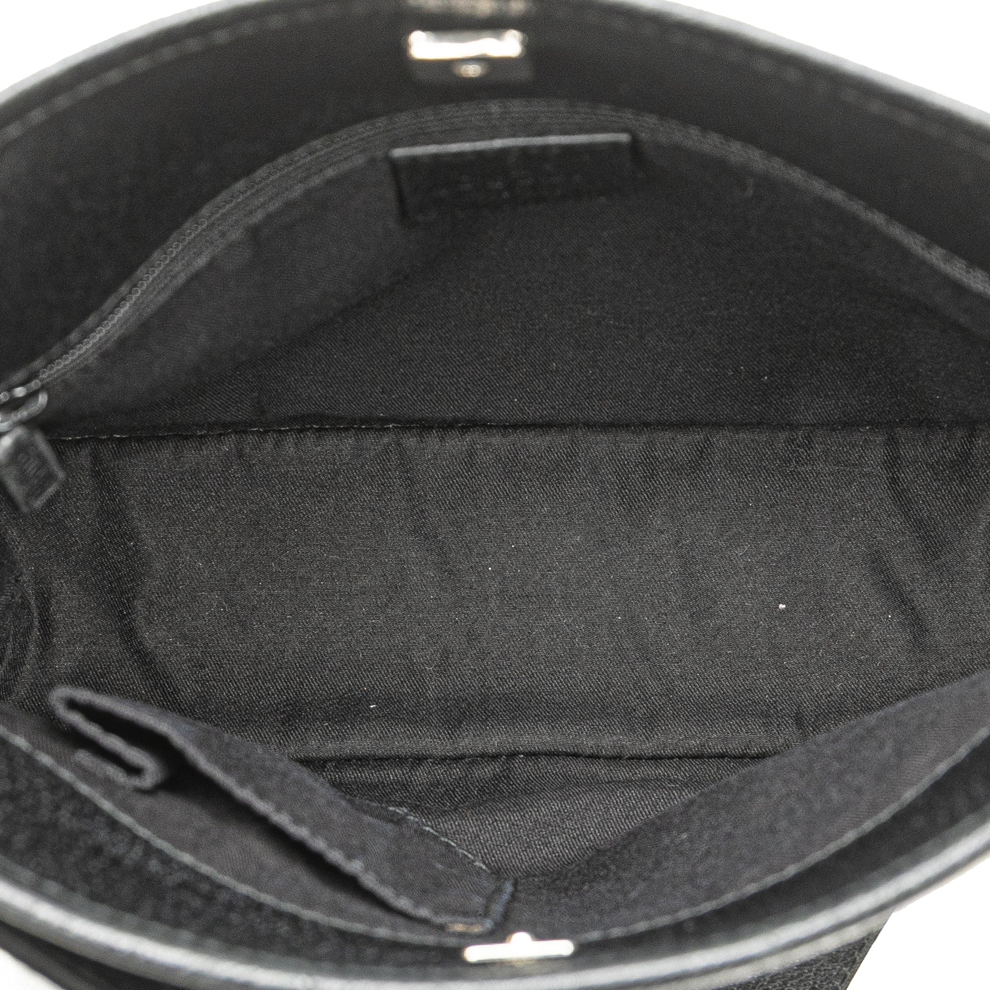 This Eclipse crossbody bag features a canvas body with leather trim, an adjustable flat leather strap, a top magnetic closure, and interior zip and slip pockets. Inclusion: Dust bag. Retail Price: 890.00