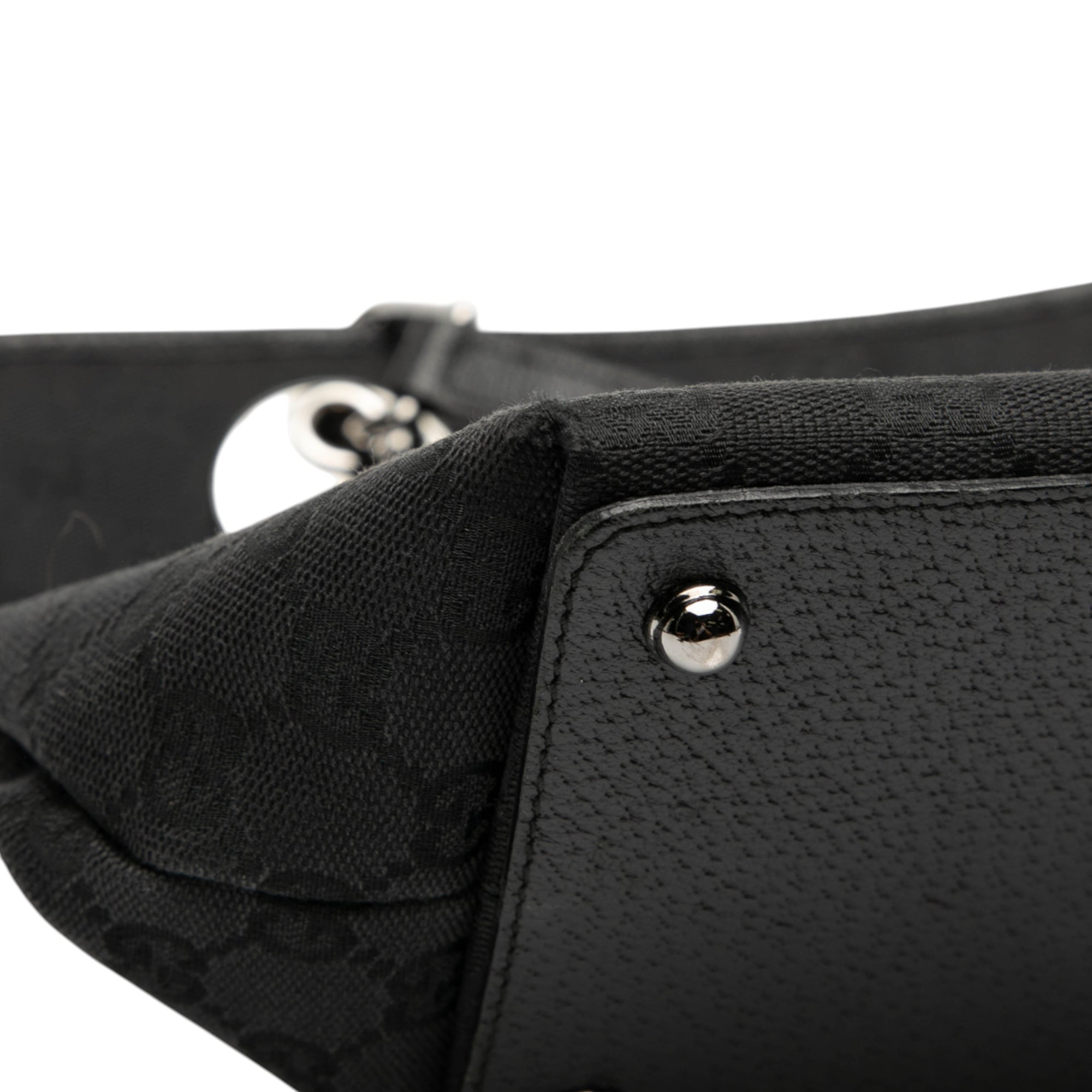 The Eclipse tote bag features a canvas body with leather trim, flat leather straps, an open top, and interior zip and slip pockets. Retail Price: 900.00