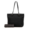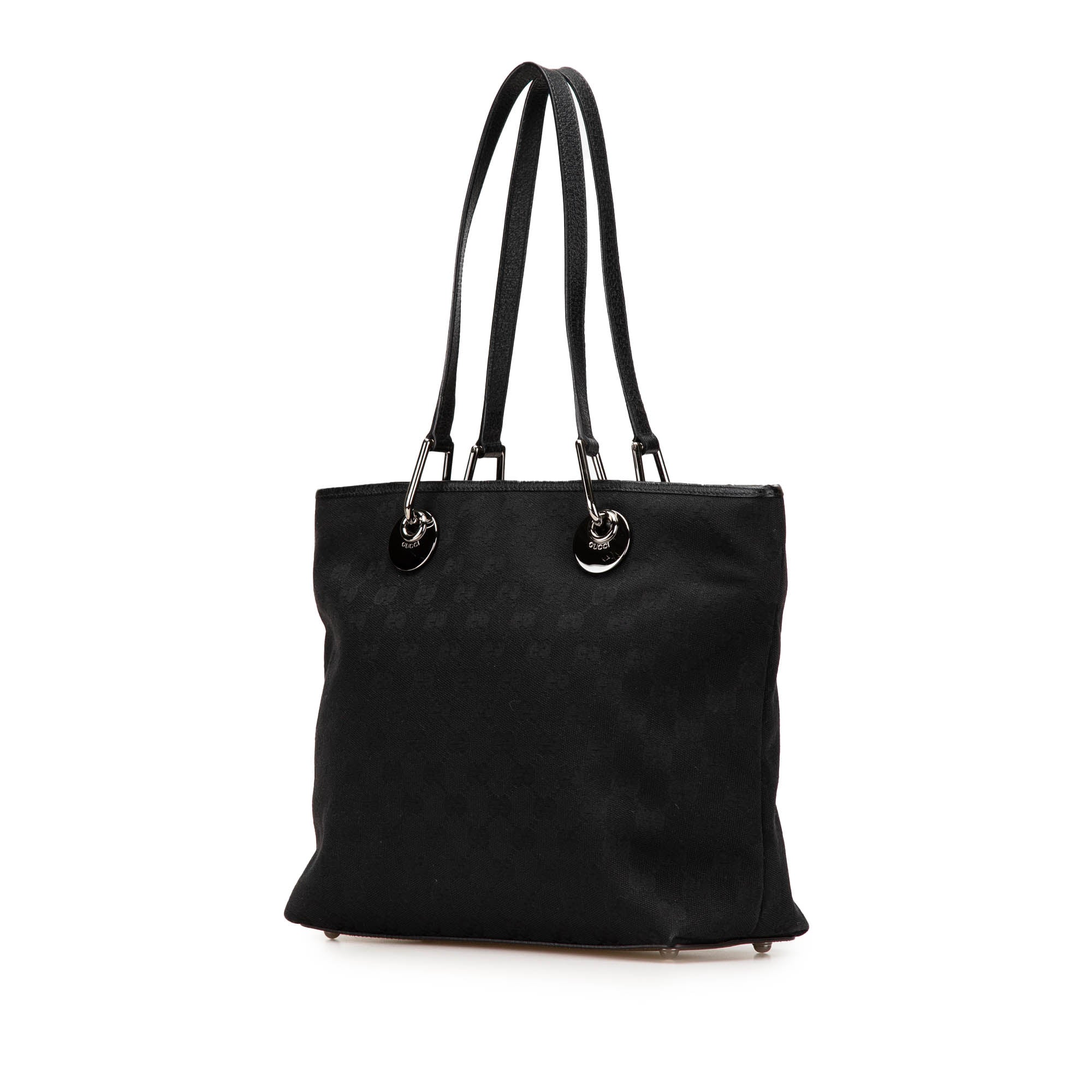The Eclipse tote bag features a canvas body with leather trim, flat leather straps, an open top, an interior zip compartment, and interior zip and slip pockets. Inclusion: Dust bag. Retail Price: 475.00