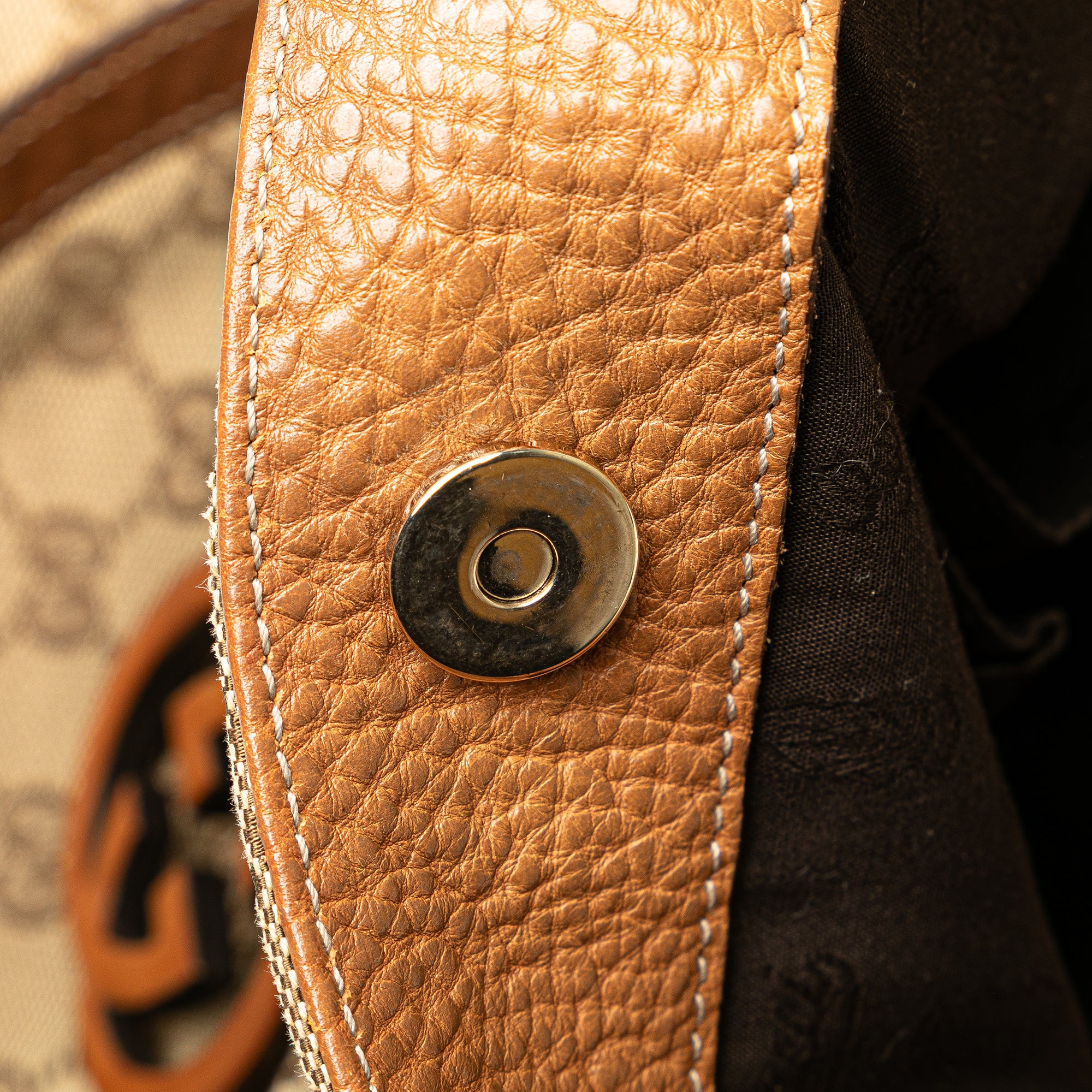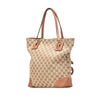 This tote bag features a canvas body with leather trim and a GG charm, flat leather handles, an open top with a magnetic snap closure, and interior zip and slip pockets. Inclusion: Dust bag. Retail Price: 1630.00