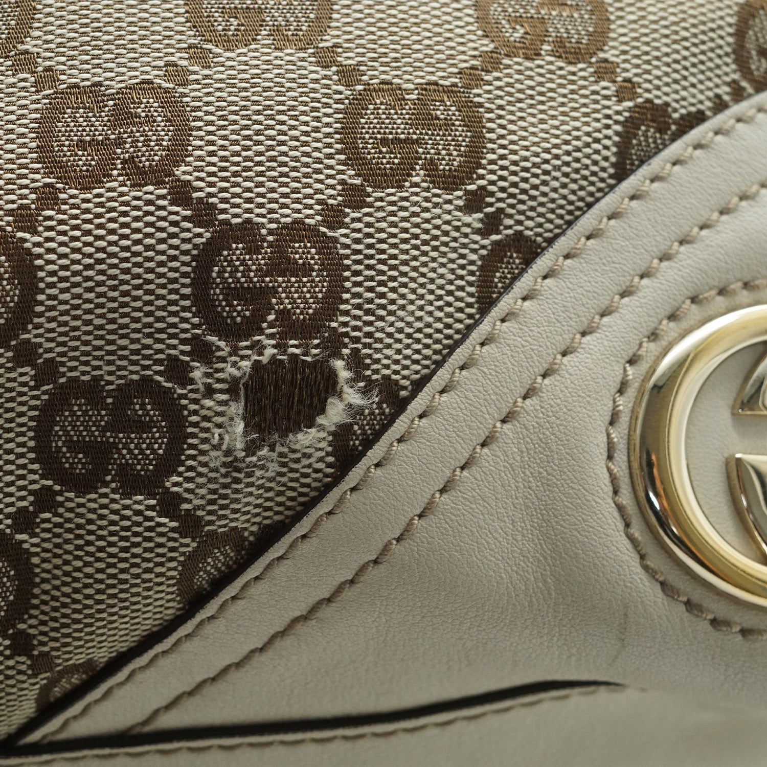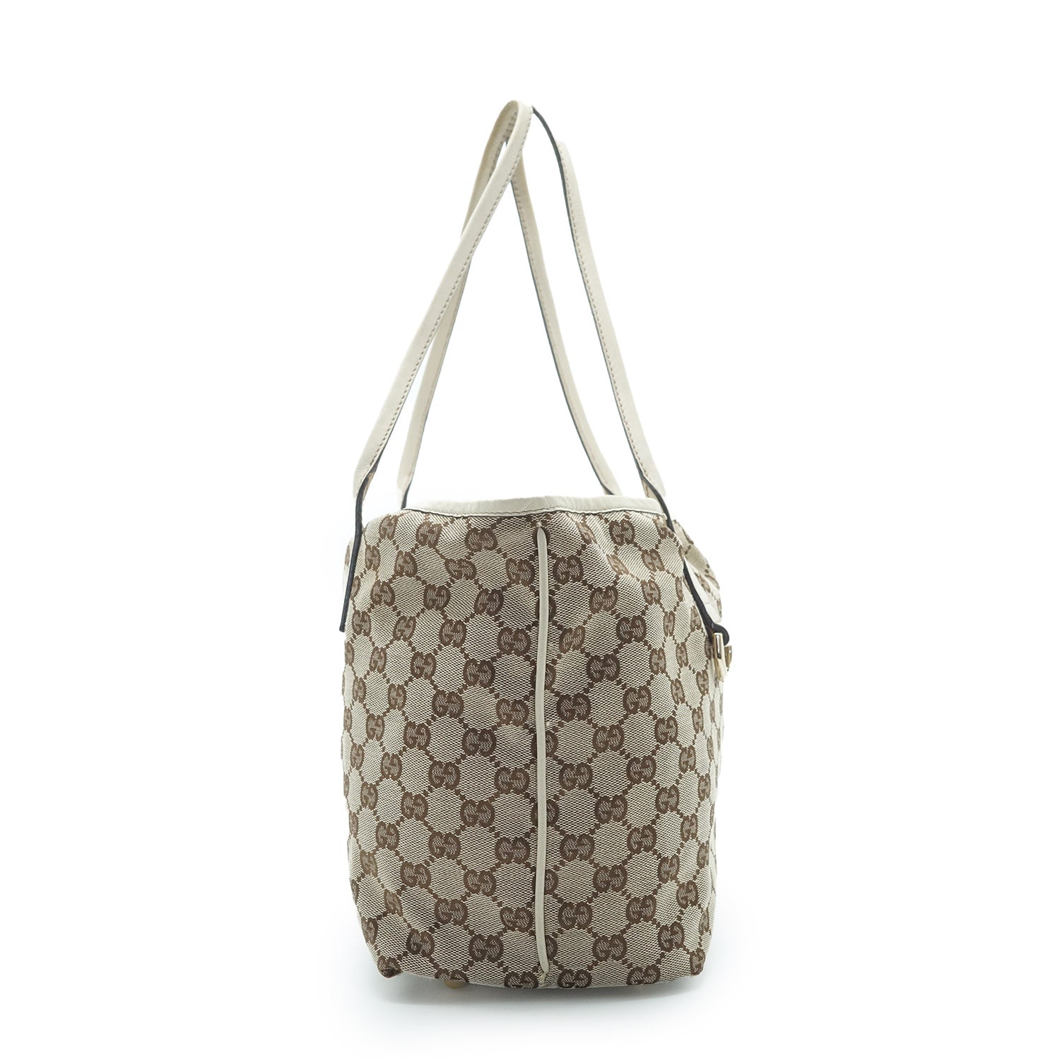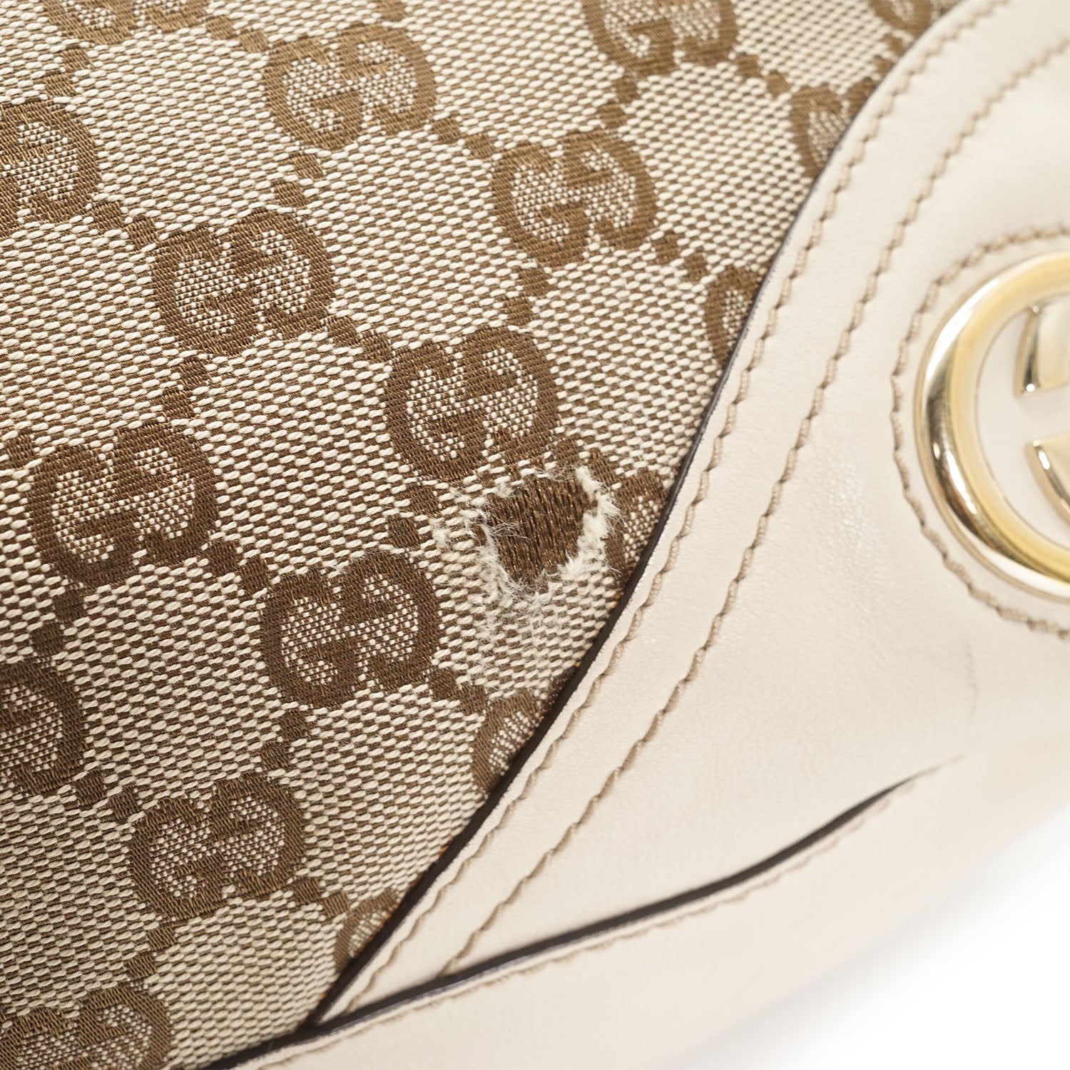 GG Canvas Interlocking GG Tote White Canvas, LeatherDepth: 13cmHeight: 22.5cmWidth: 27.5cmWidth at Top: 39.5cmHand Drop: 24cmCOutside Rank: BCInside Rank: ABStain: Minor black stains/marks on the bottom leather partsScratch: Visible corner rub, some indentation marks on the bottom (leather part)Peeling: Some leather cracking along the top handlesTear: Some scratches/small tears on the canvasSerial code: 169946 493075