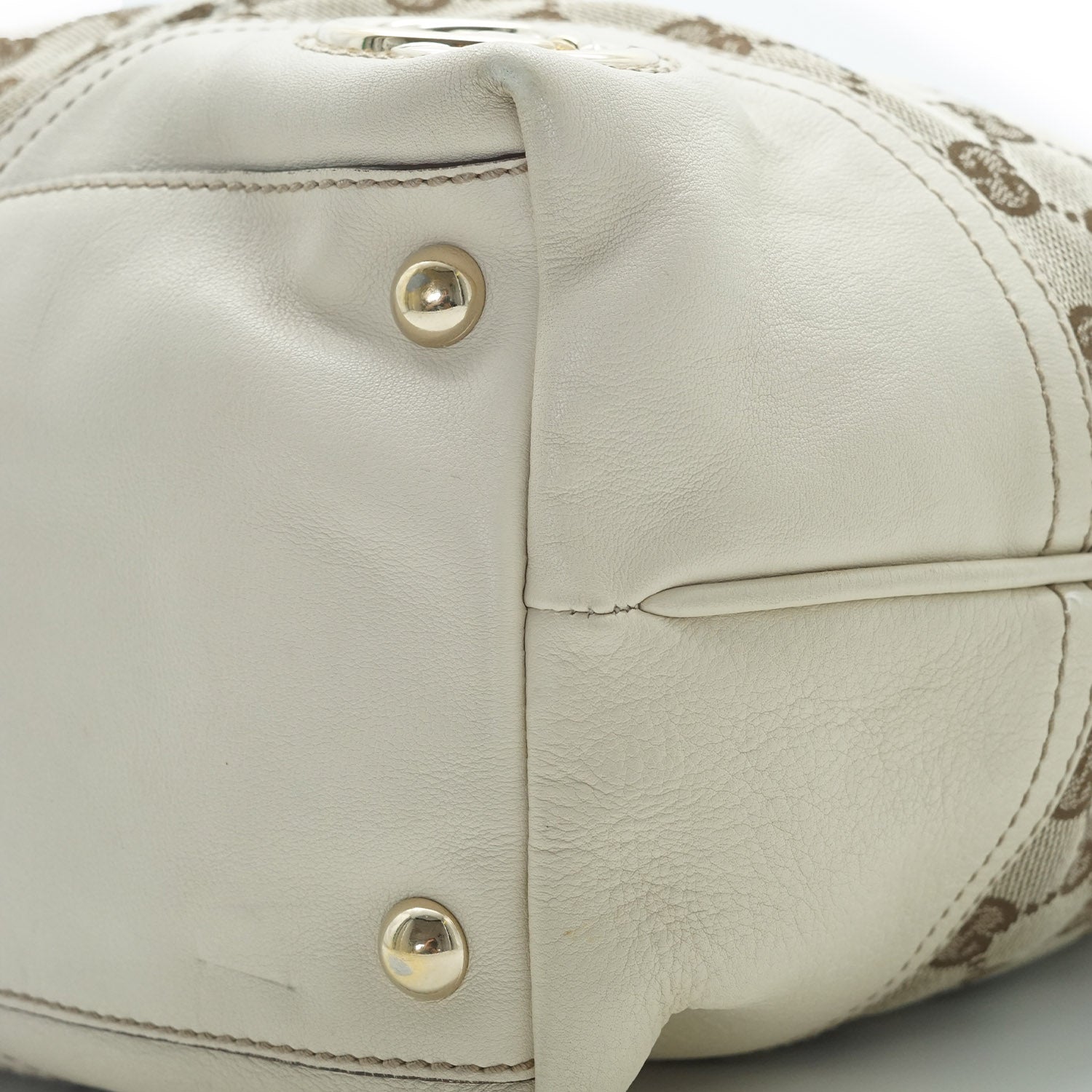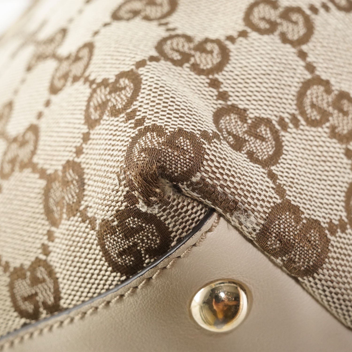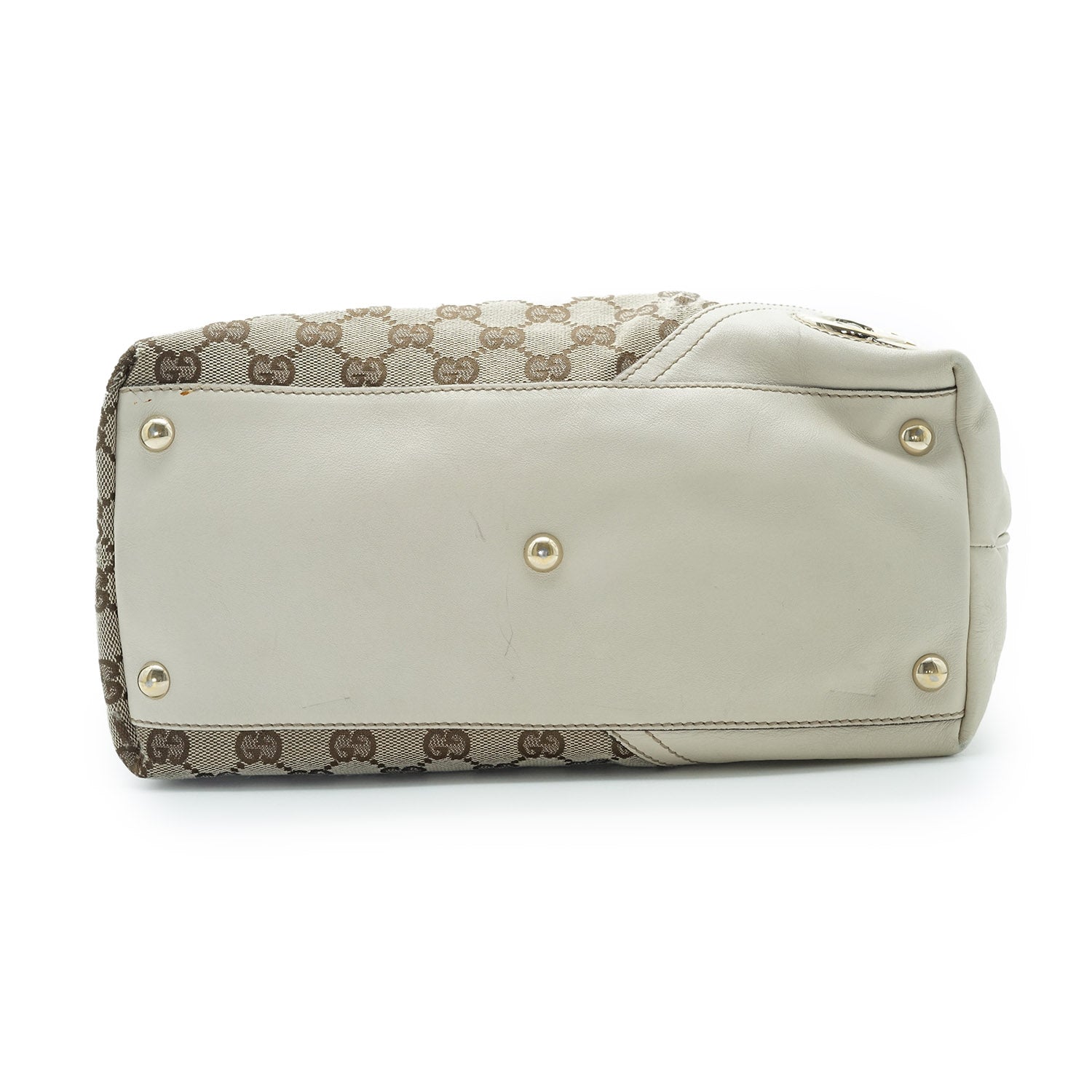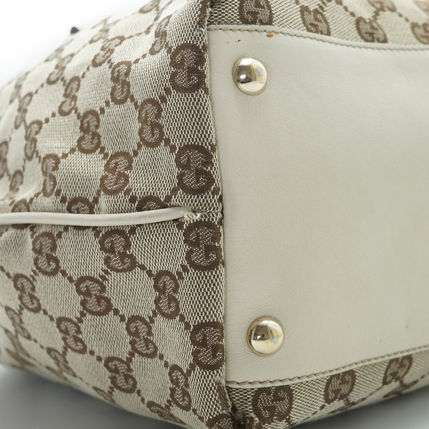 GG Canvas Interlocking GG Tote White Canvas, LeatherDepth: 13cmHeight: 22.5cmWidth: 27.5cmWidth at Top: 39.5cmHand Drop: 24cmCOutside Rank: BCInside Rank: ABStain: Minor black stains/marks on the bottom leather partsScratch: Visible corner rub, some indentation marks on the bottom (leather part)Peeling: Some leather cracking along the top handlesTear: Some scratches/small tears on the canvasSerial code: 169946 493075