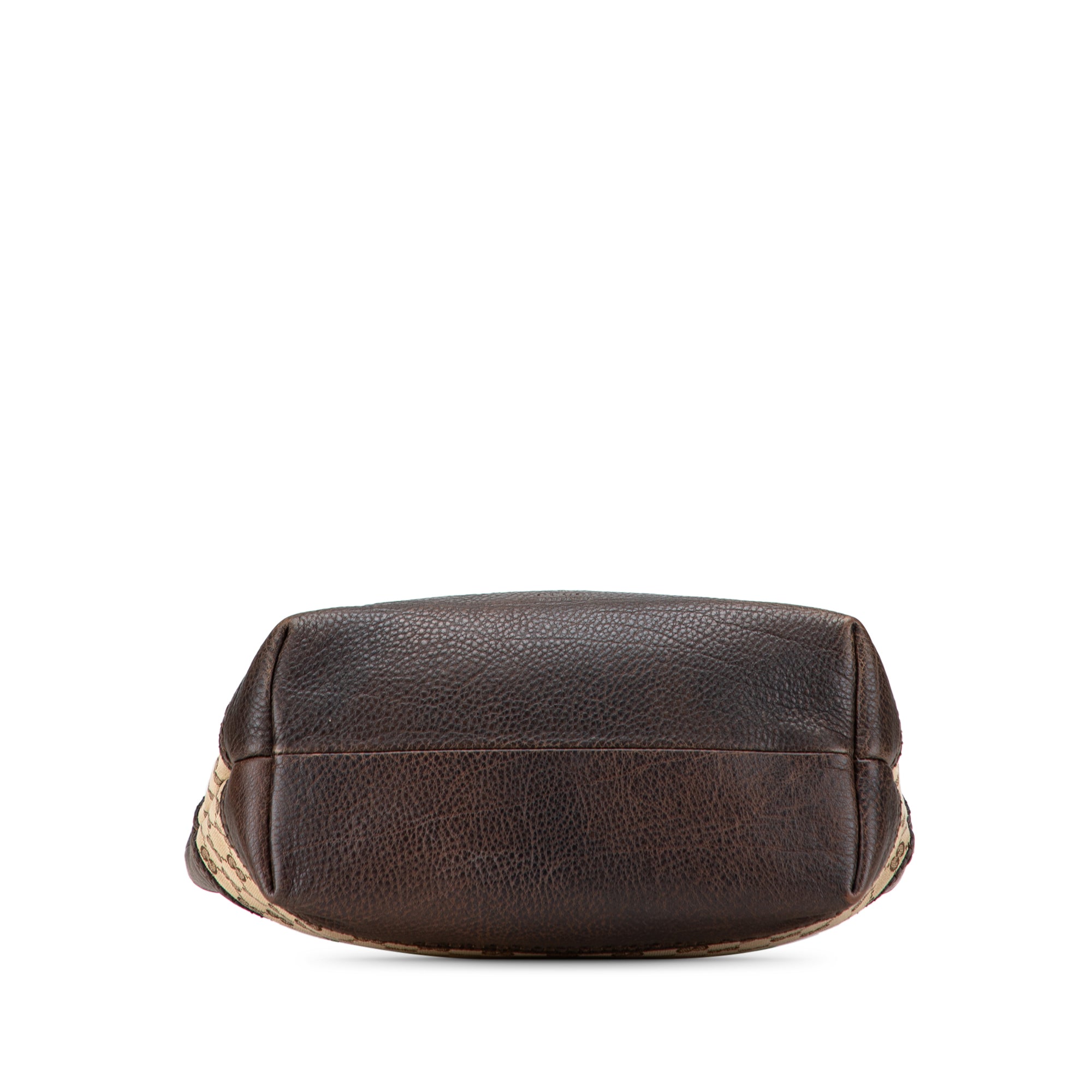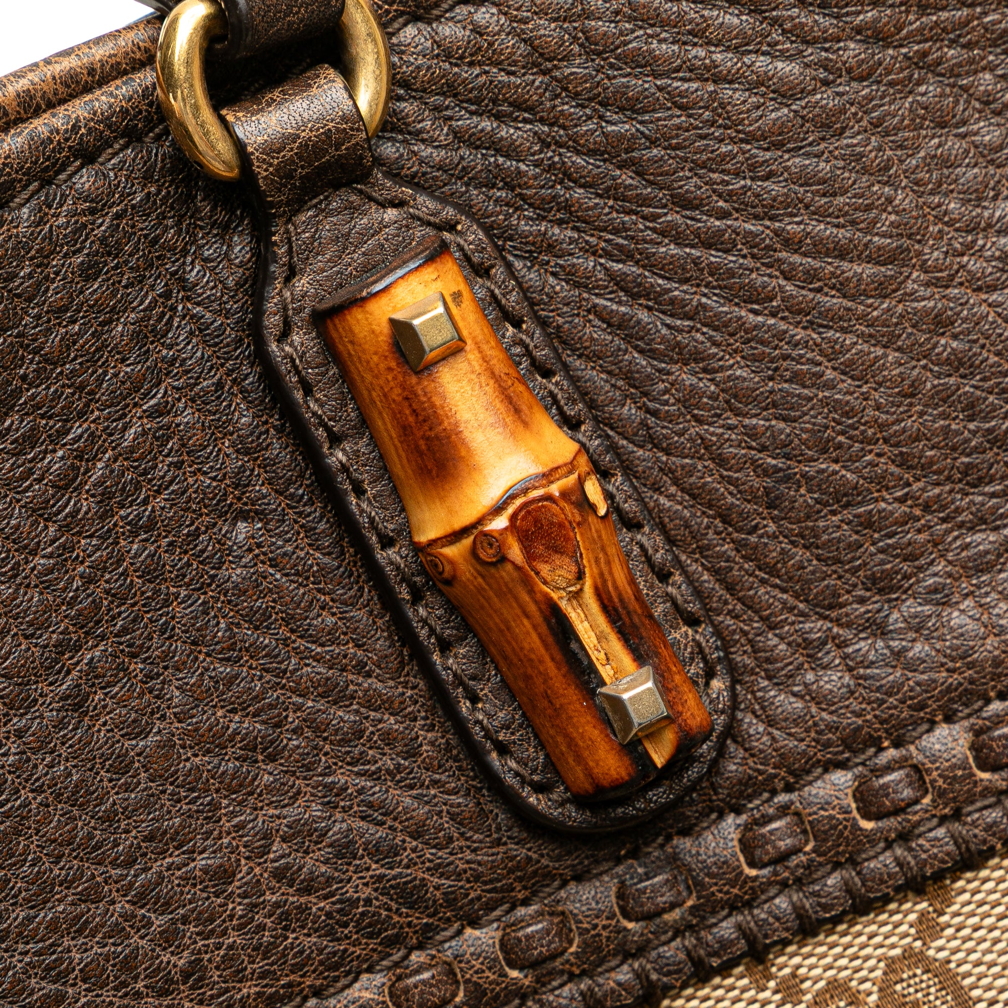 The Crafty tote bag features a canvas body with leather trim, flat leather straps, an open top with magnetic snap button closure, and interior zip and slip pockets. Retail Price: 495.00