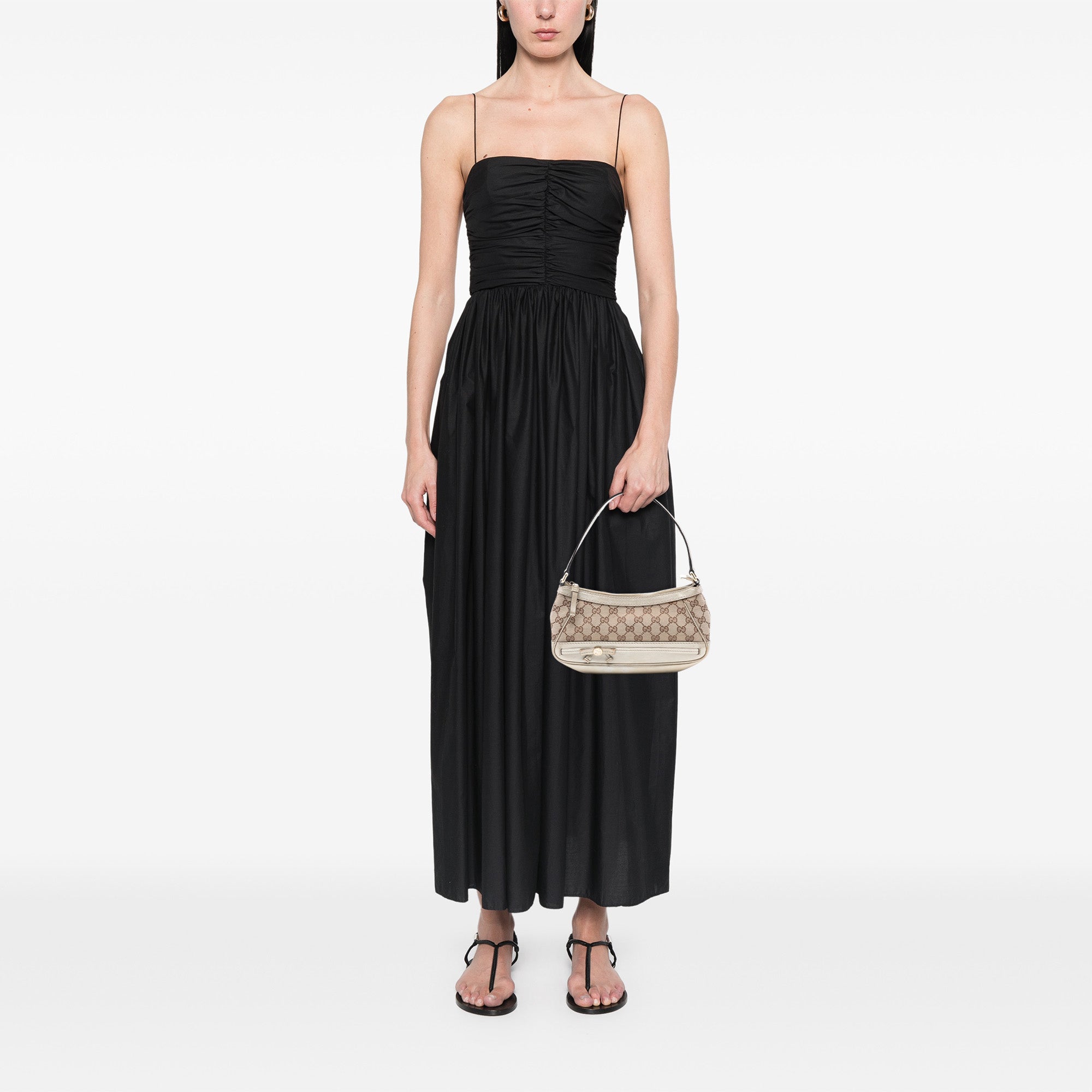 This Mayfair features a canvas body with leather trim, a flat leather strap, a top zip closure, and an interior slip pocket. Retail Price: 953.00