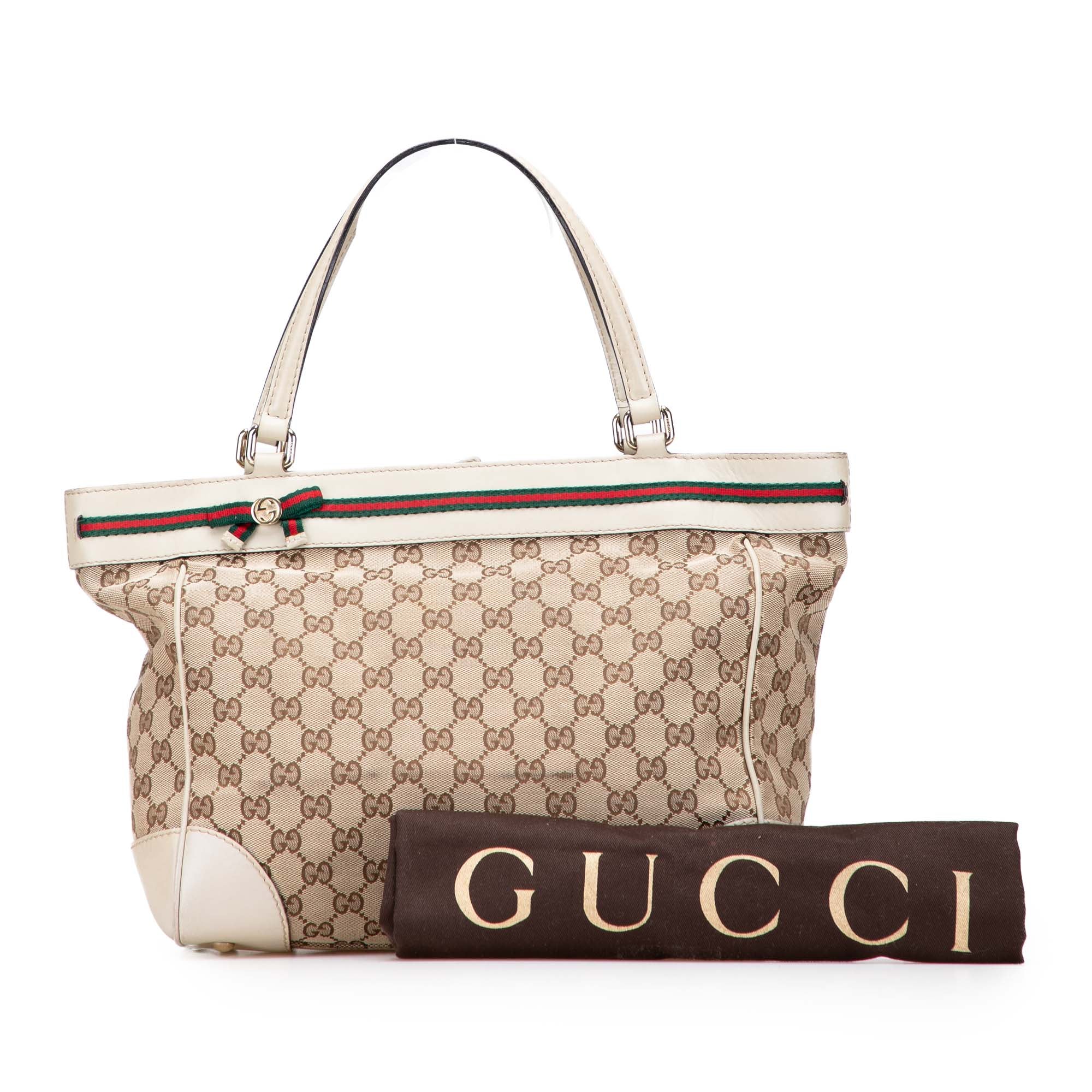 The Mayfair tote bag features a canvas body with leather trim, flat leather straps, an open top with magnetic snap button closure, and interior zip and slip pockets. Inclusion: Dust bag. Retail Price: 840.00