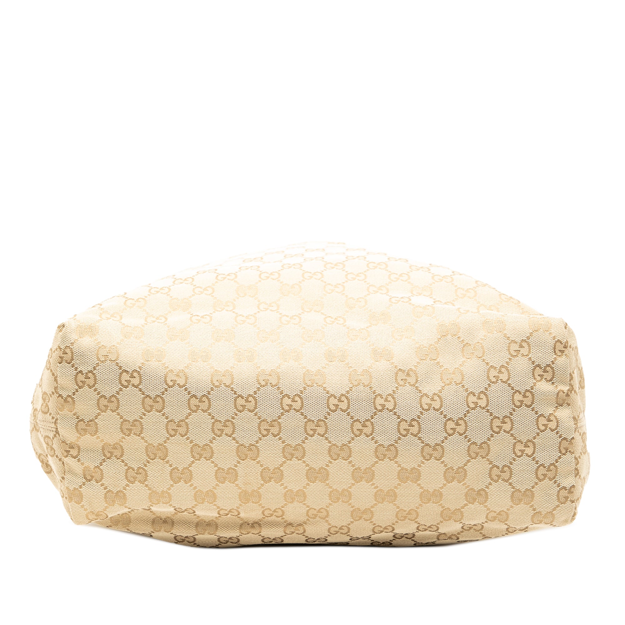 This tote bag features a canvas body, flat leather handles, an adjustable flat leather strap, an open top, and a drawstring pouch inclusion. Retail Price: 967.00
