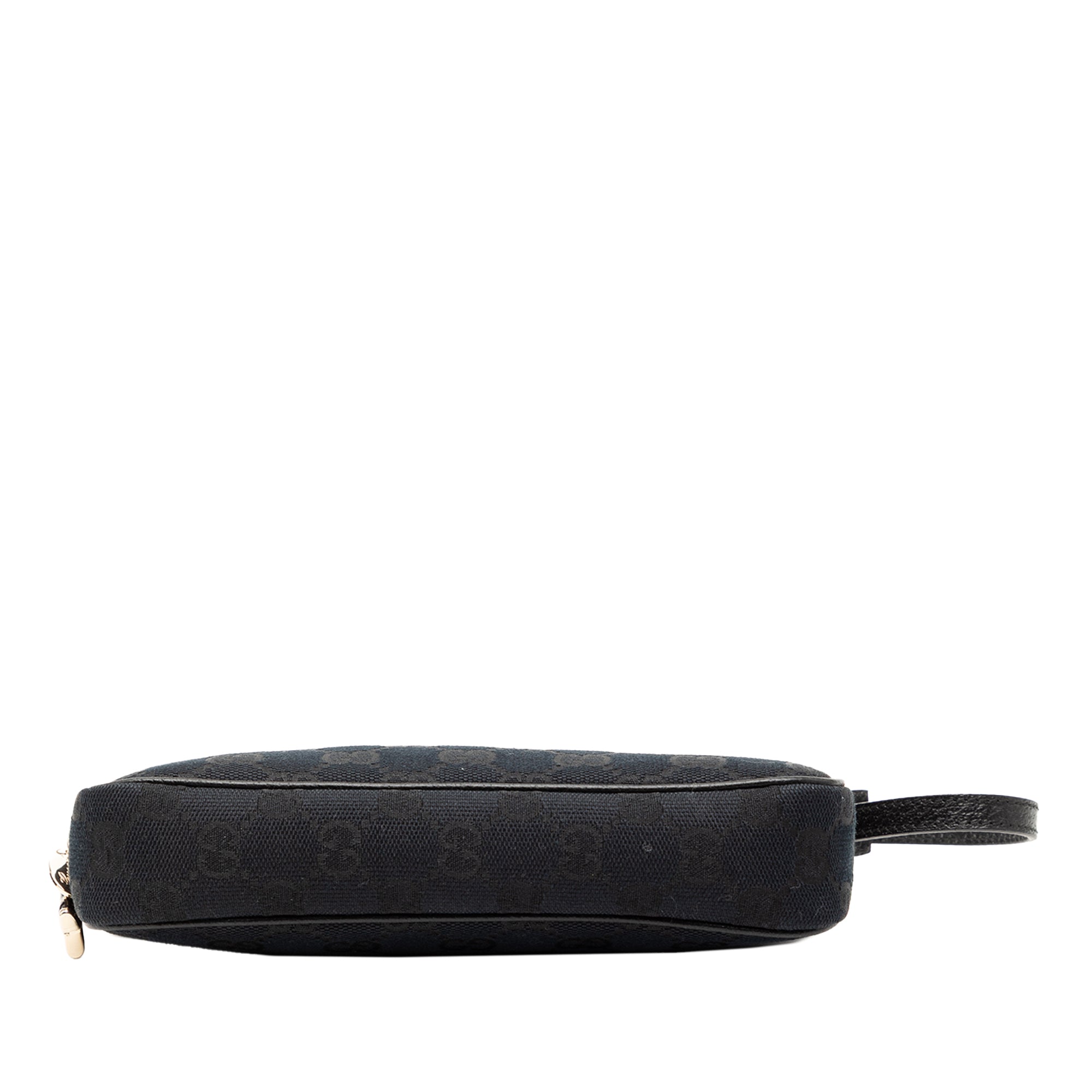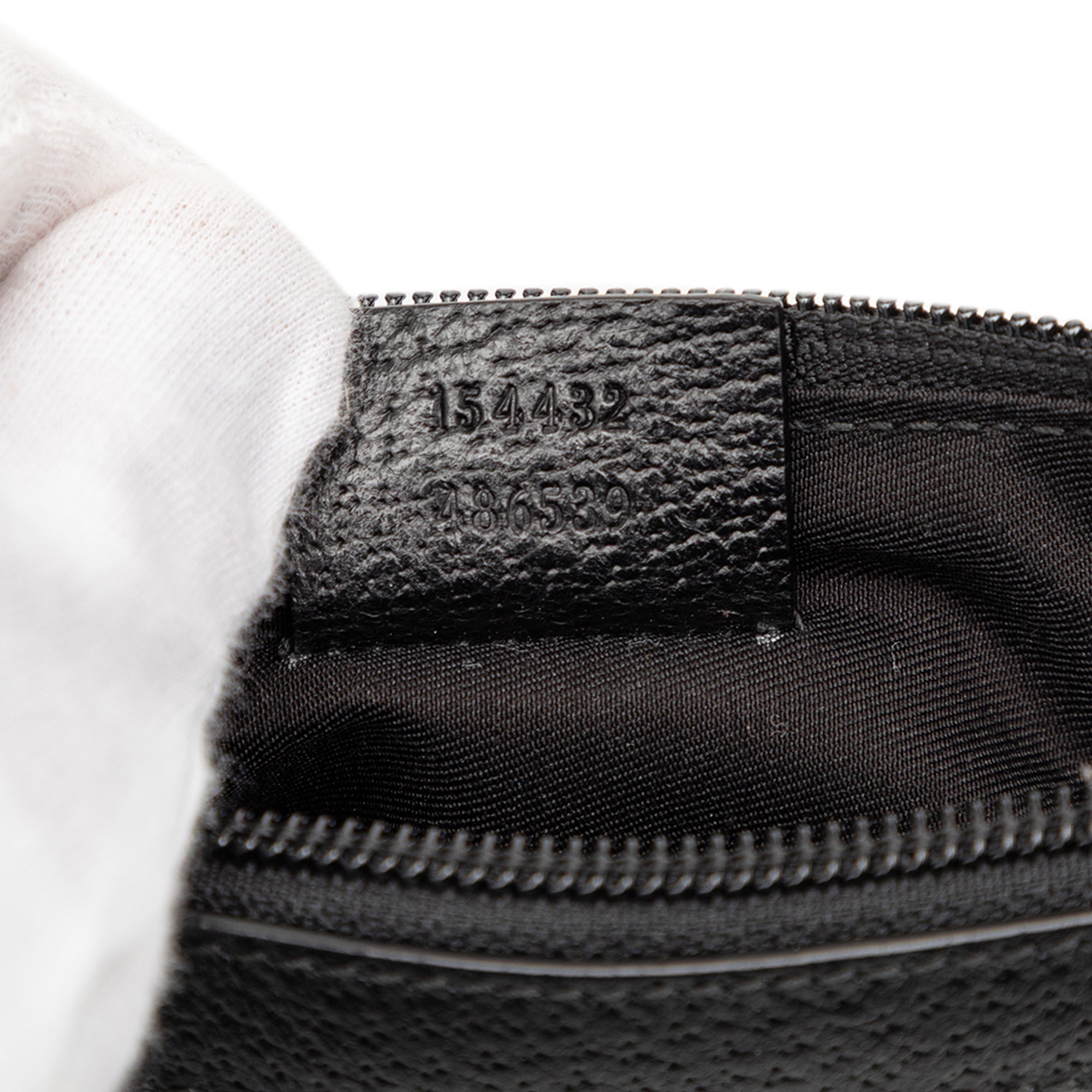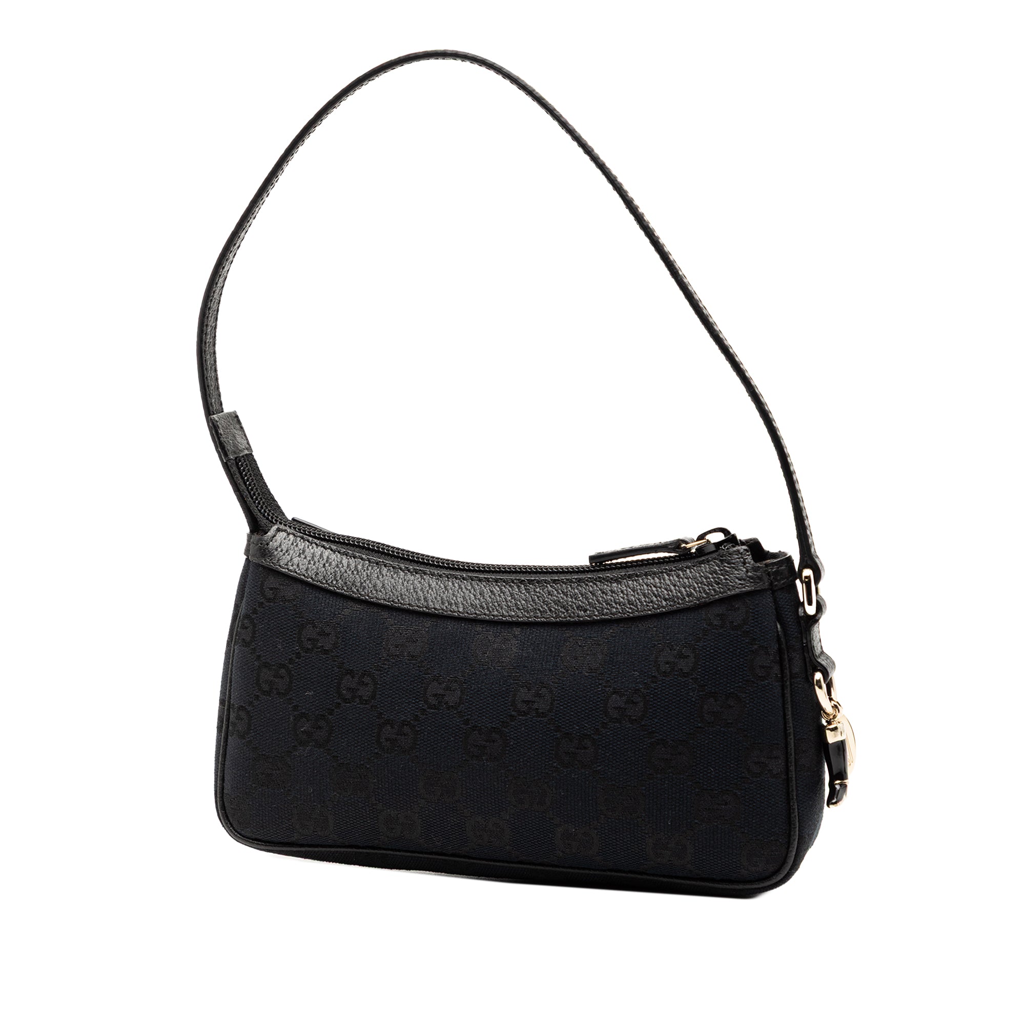 This baguette features a canvas body with leather trim, a flat leather strap, and a top zip closure. Inclusion: Dust bag. Retail Price: 795.00