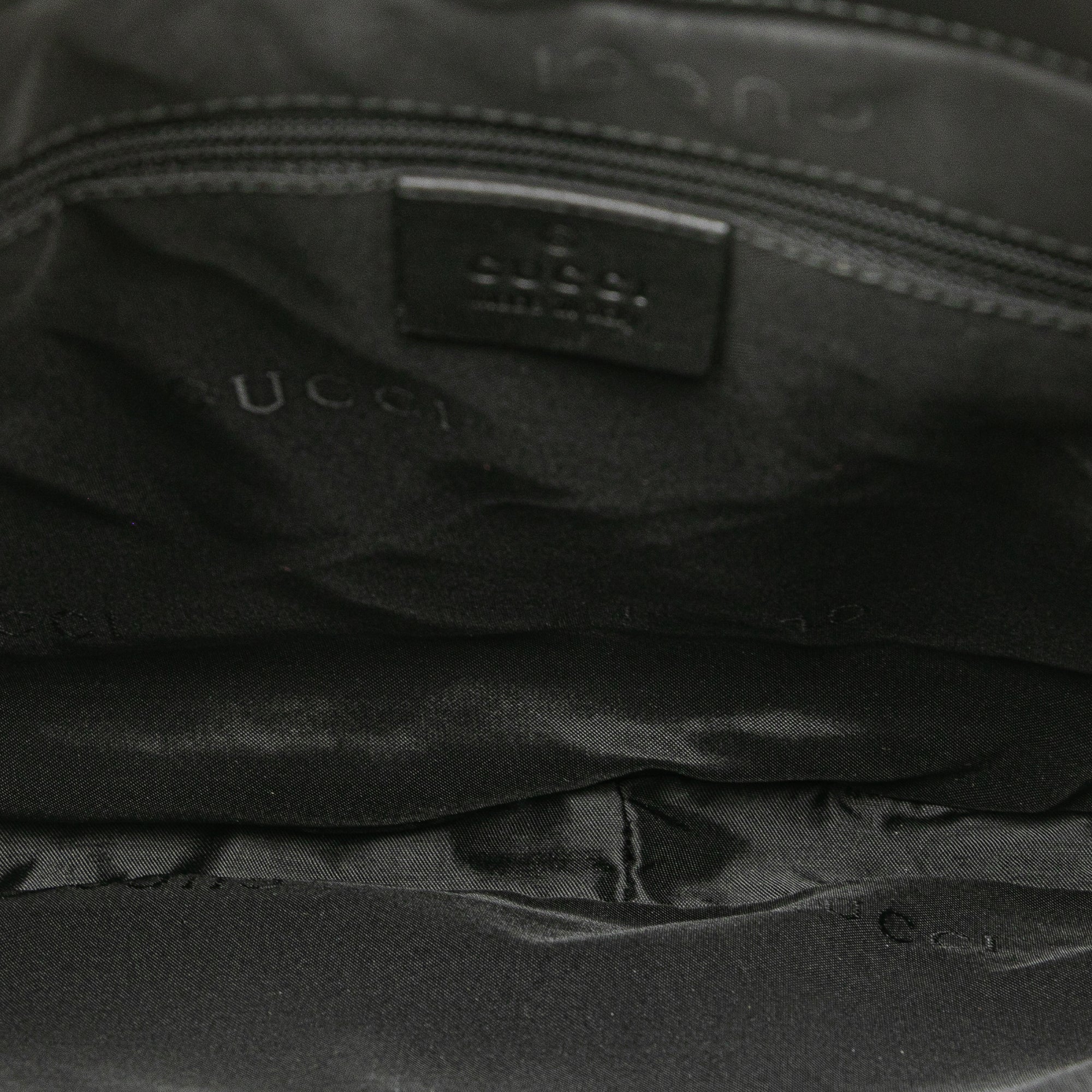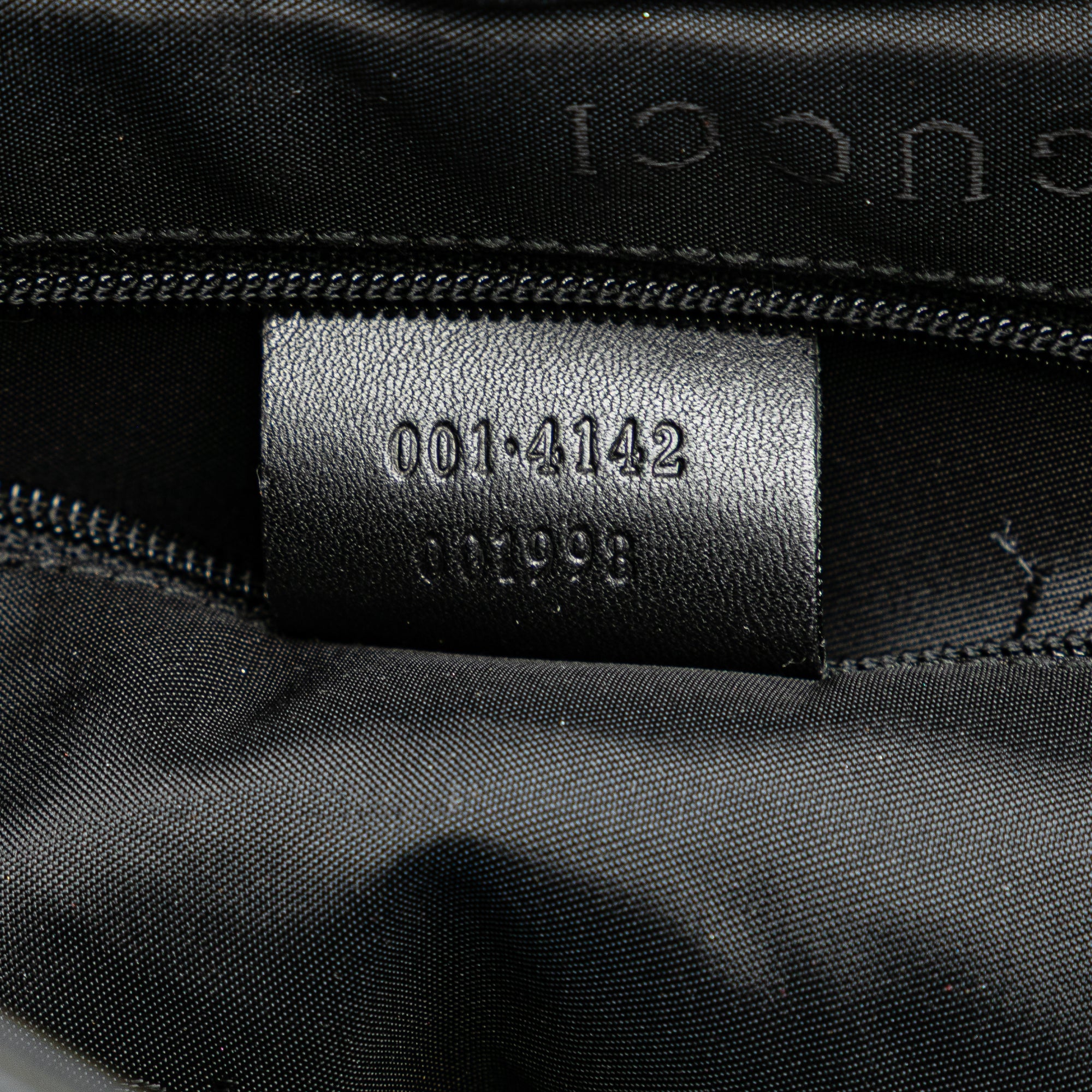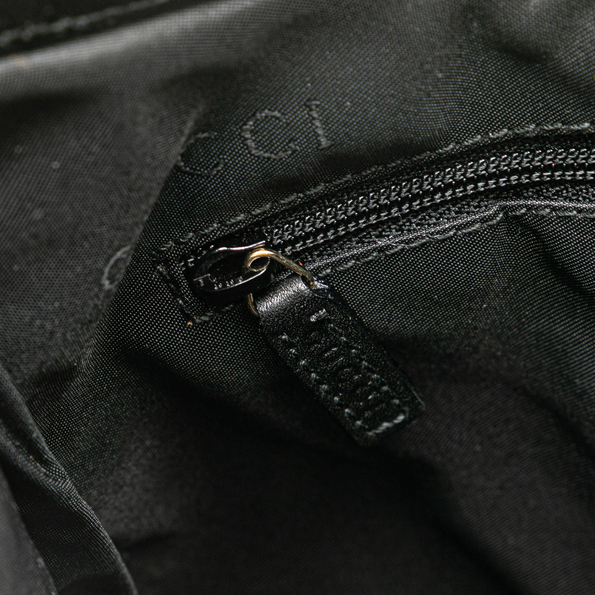 This shoulder bag features a canvas body with leather trim, a flat leather strap, an open top, a flat leather strap with a gold-tone hardware, and an interior zip pocket. Retail Price: 835.00