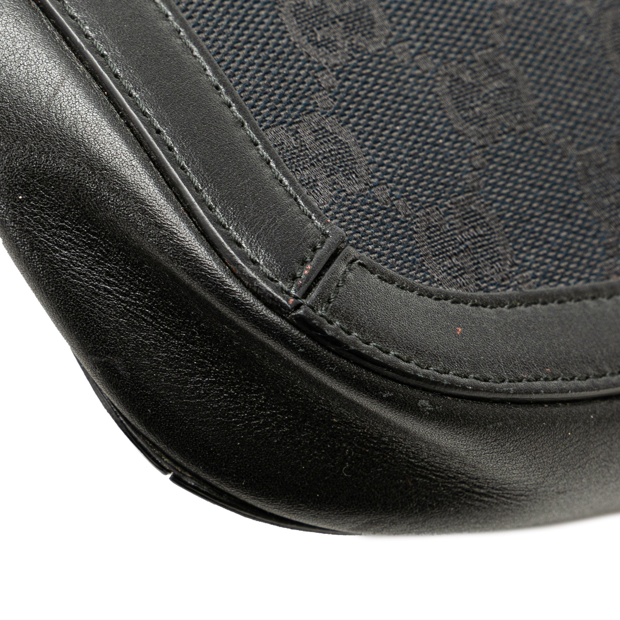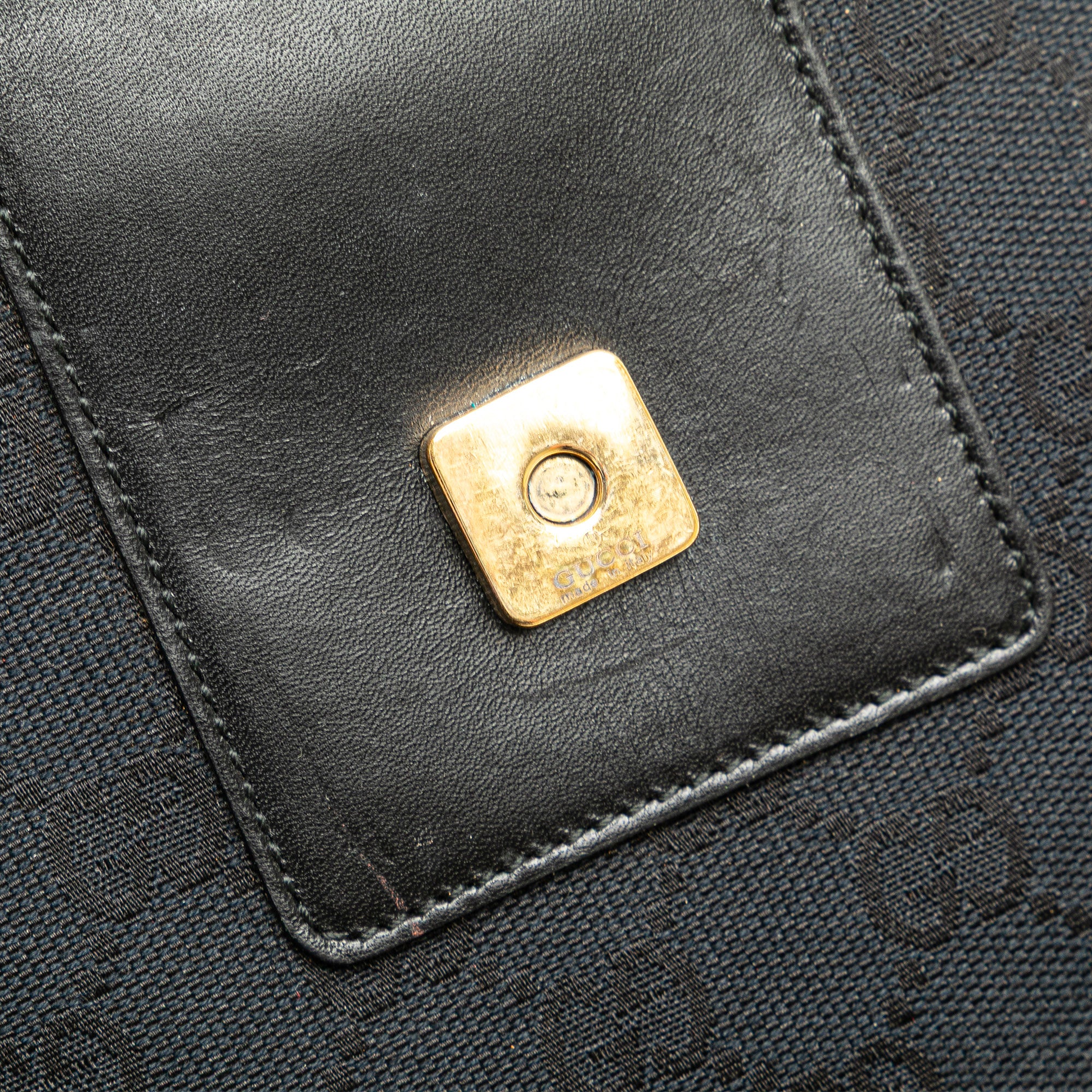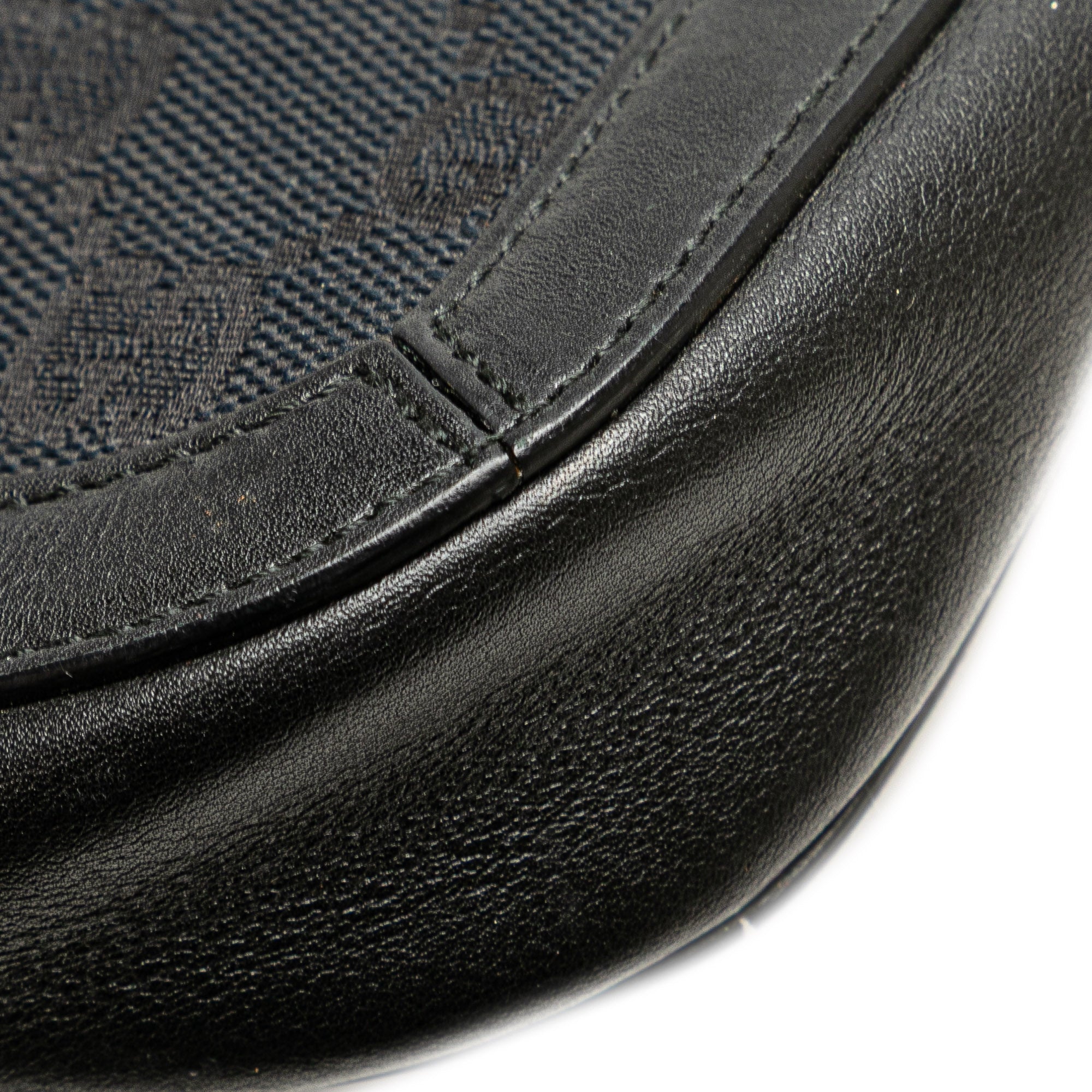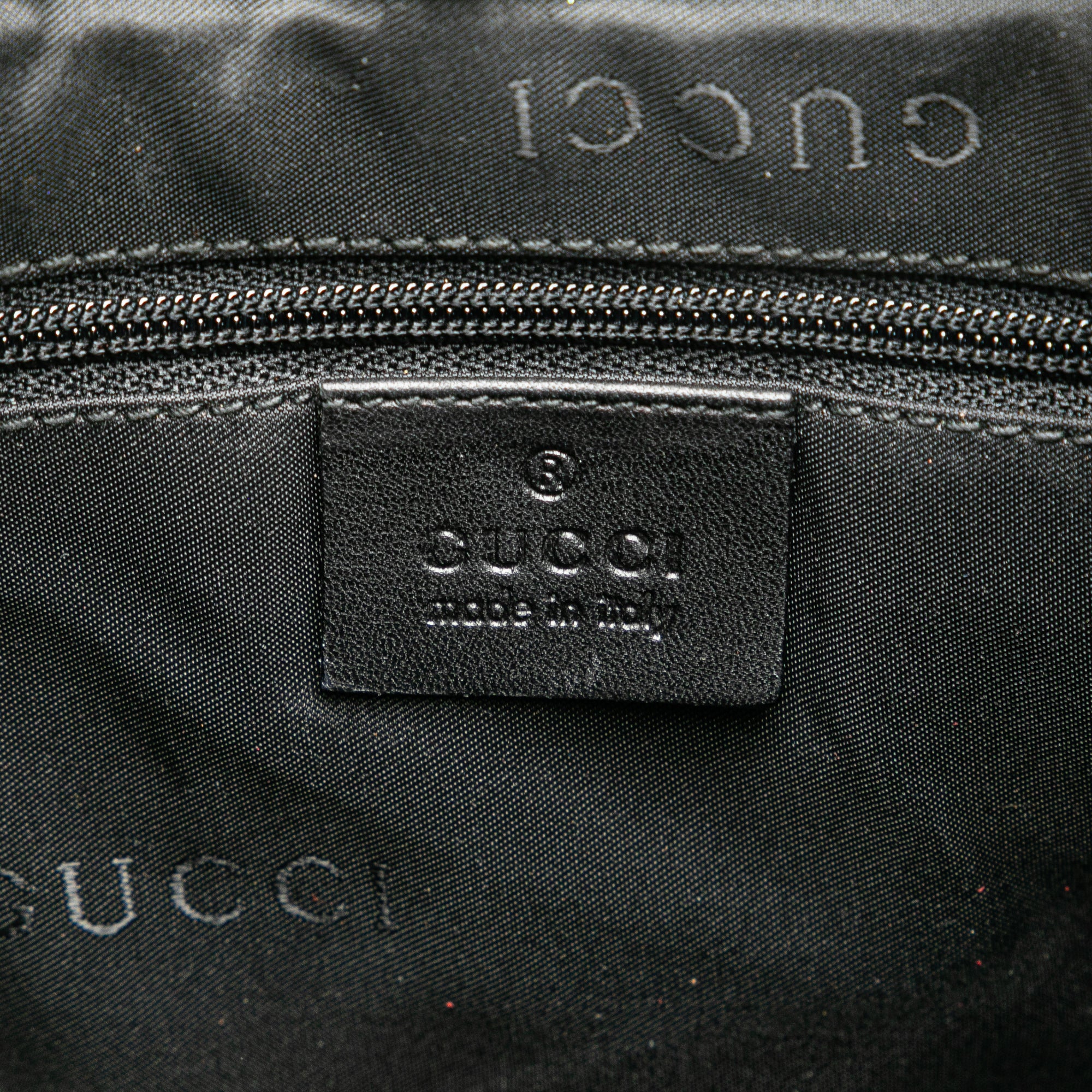 This shoulder bag features a canvas body with leather trim, a flat leather strap, an open top, a flat leather strap with a gold-tone hardware, and an interior zip pocket. Retail Price: 835.00