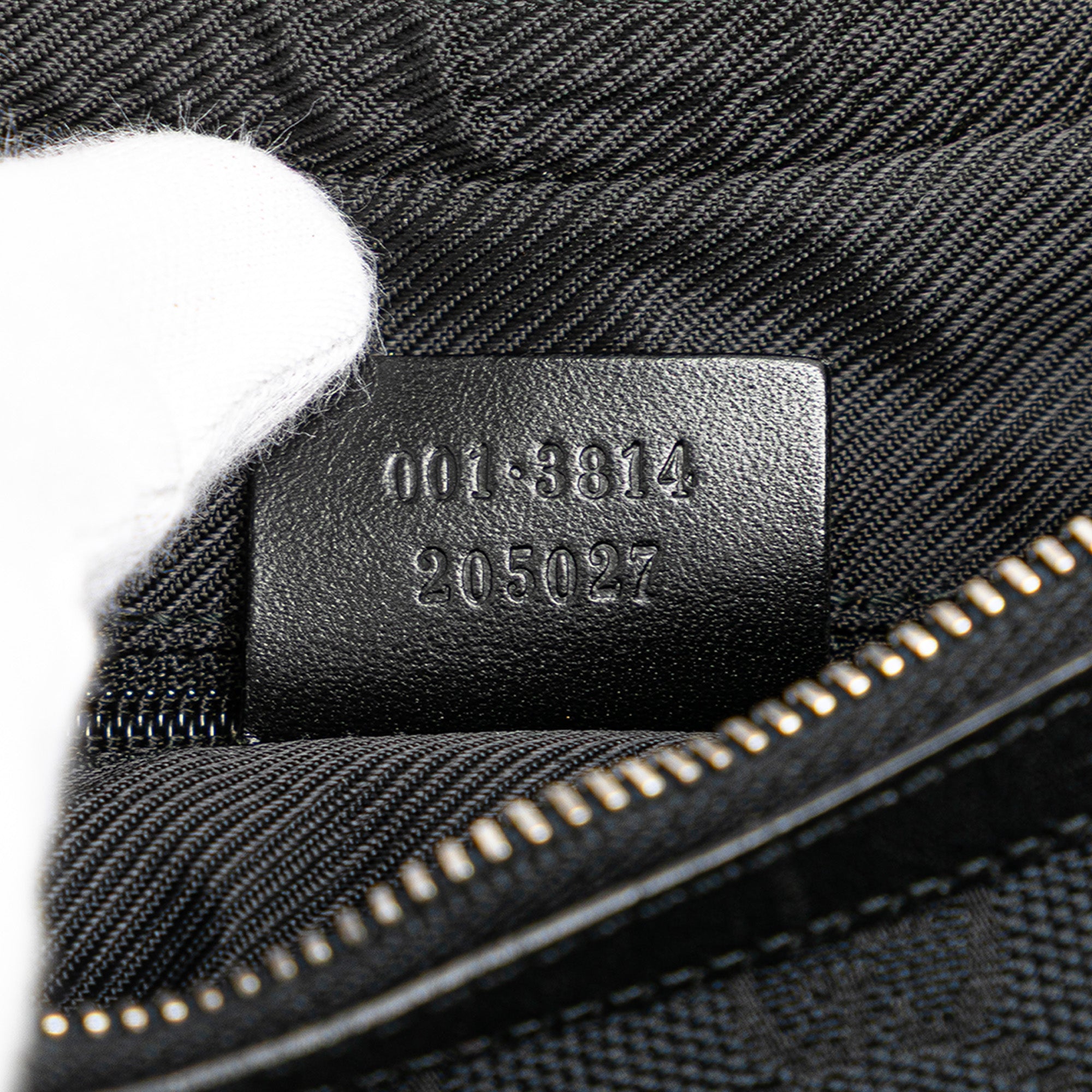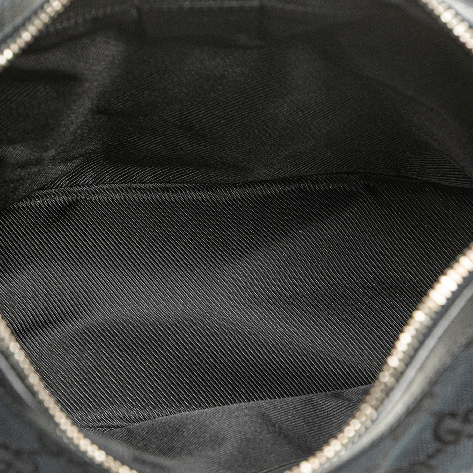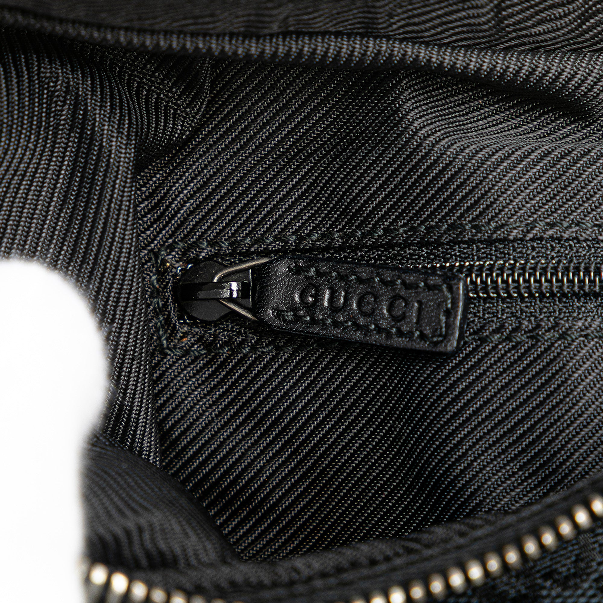This shoulder bag features a canvas body with leather trim, a flat leather strap, a top zip closure, and an interior zip pocket. Retail Price: 1000.00
