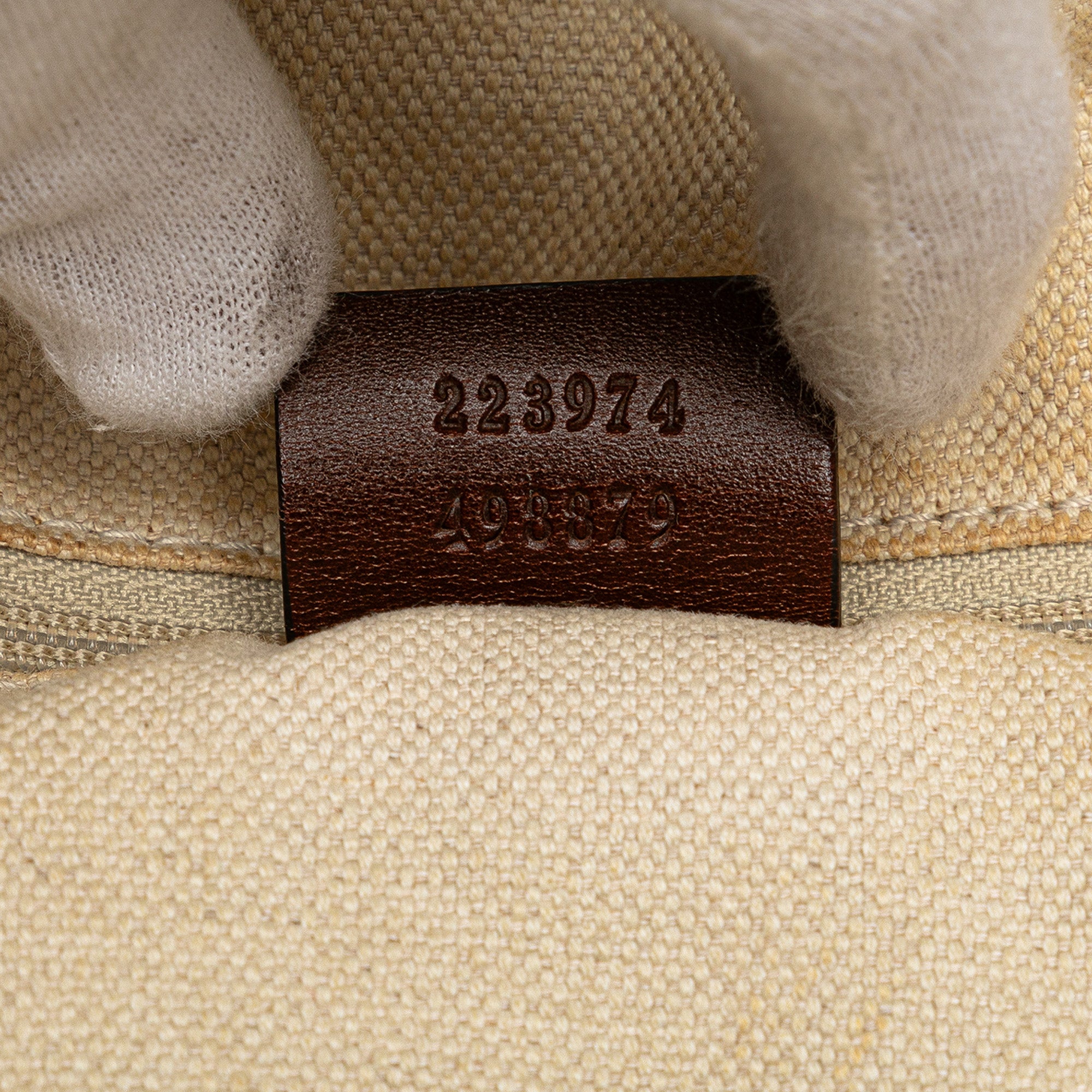 The Sukey satchel features a canvas body with leather trim, rolled leather handles, a detachable flat leather shoulder strap, a top zip closure, and an interior zip pocket. Retail Price: 600.00