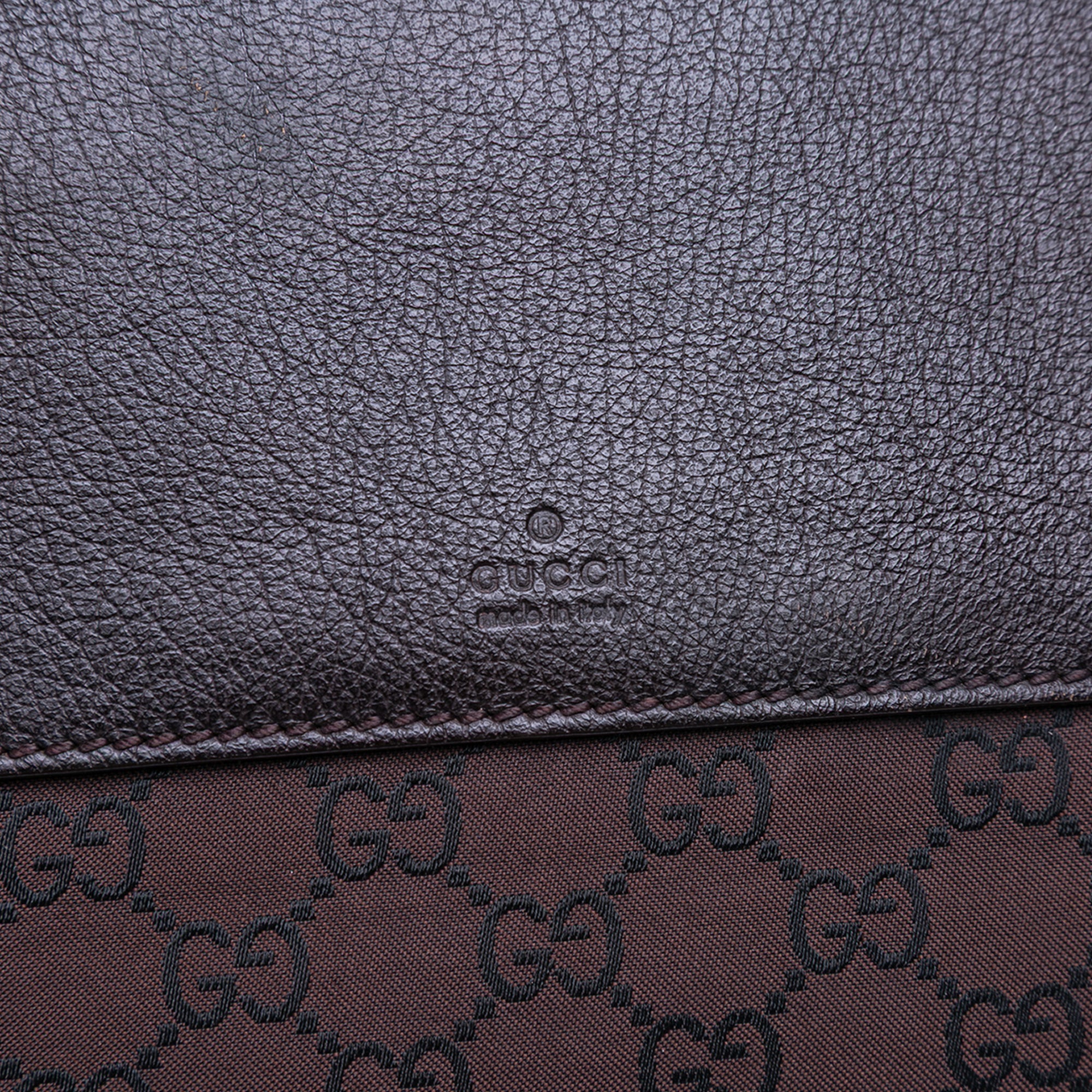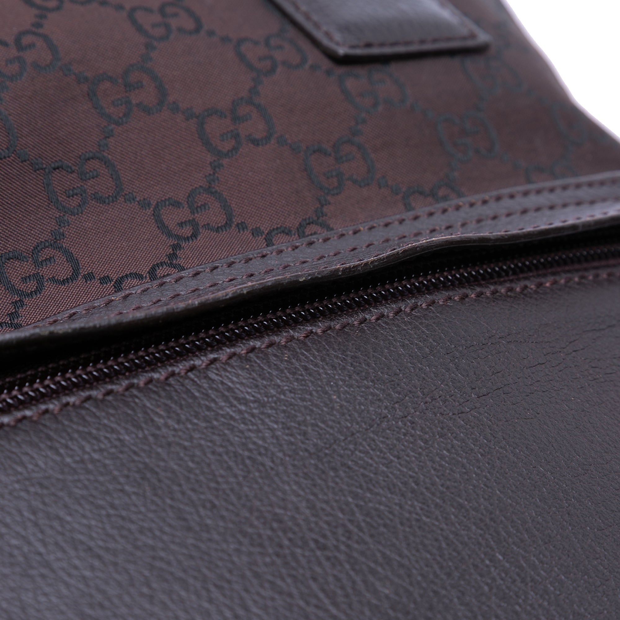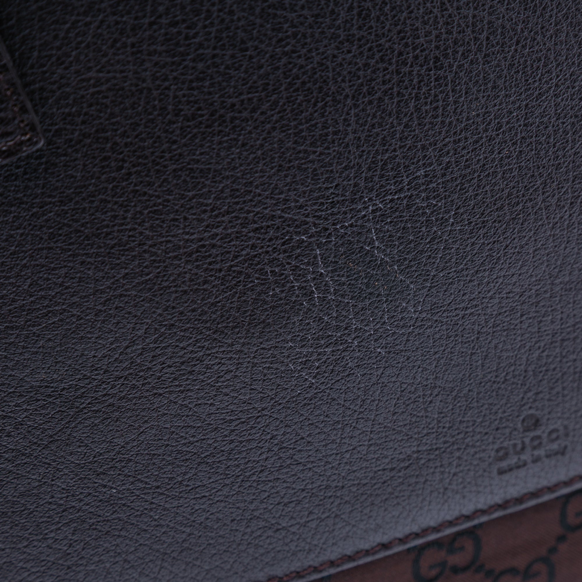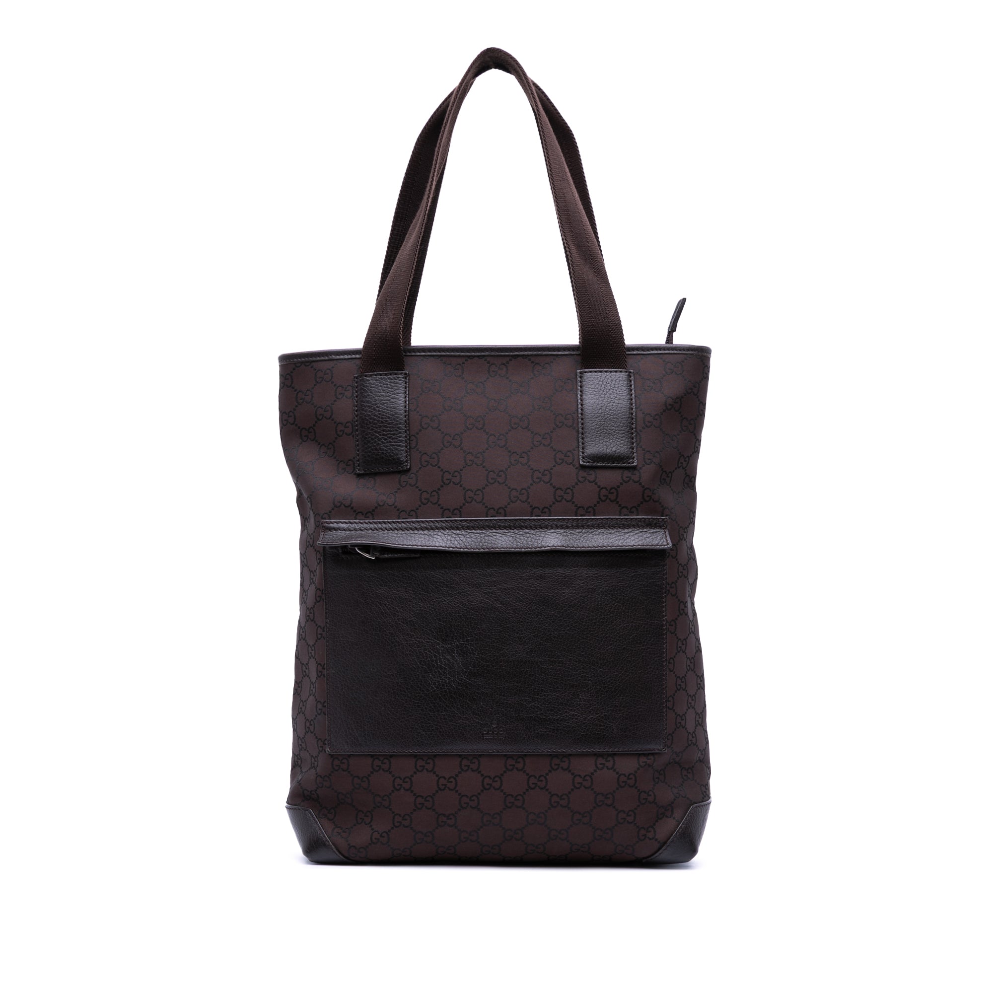 This tote bag features a canvas body with leather trim, flat leather handles, top zip closure, exterior zip pocket and interior zip pocket. Retail Price: 995.00