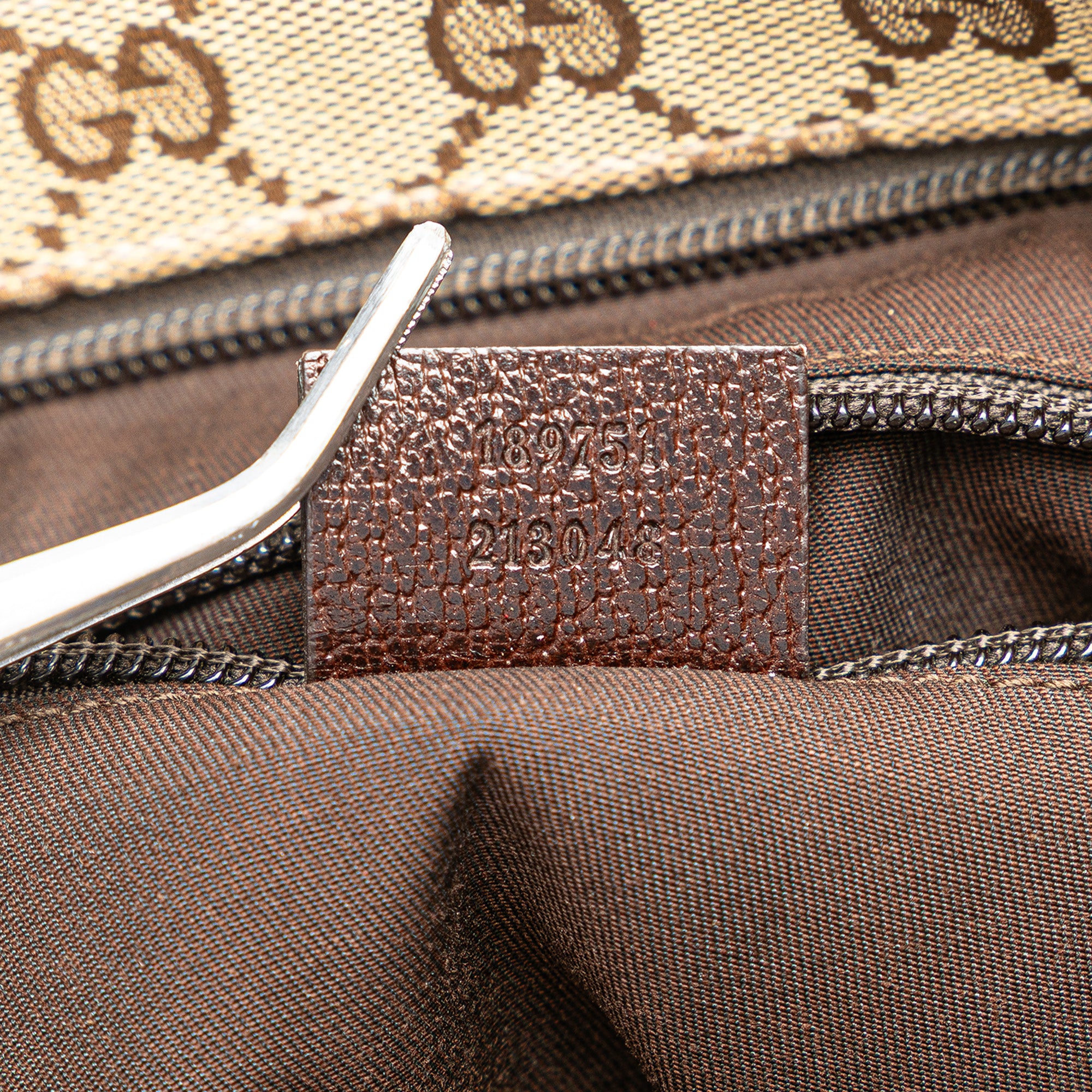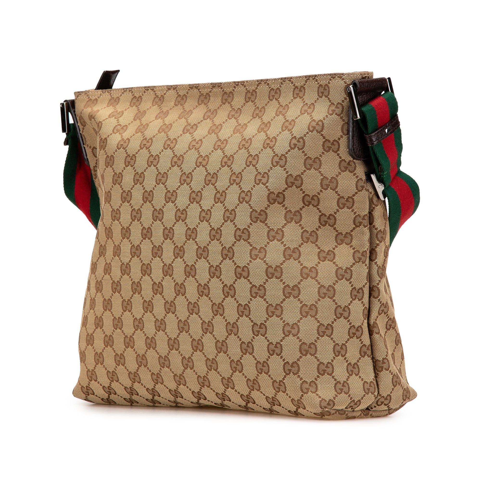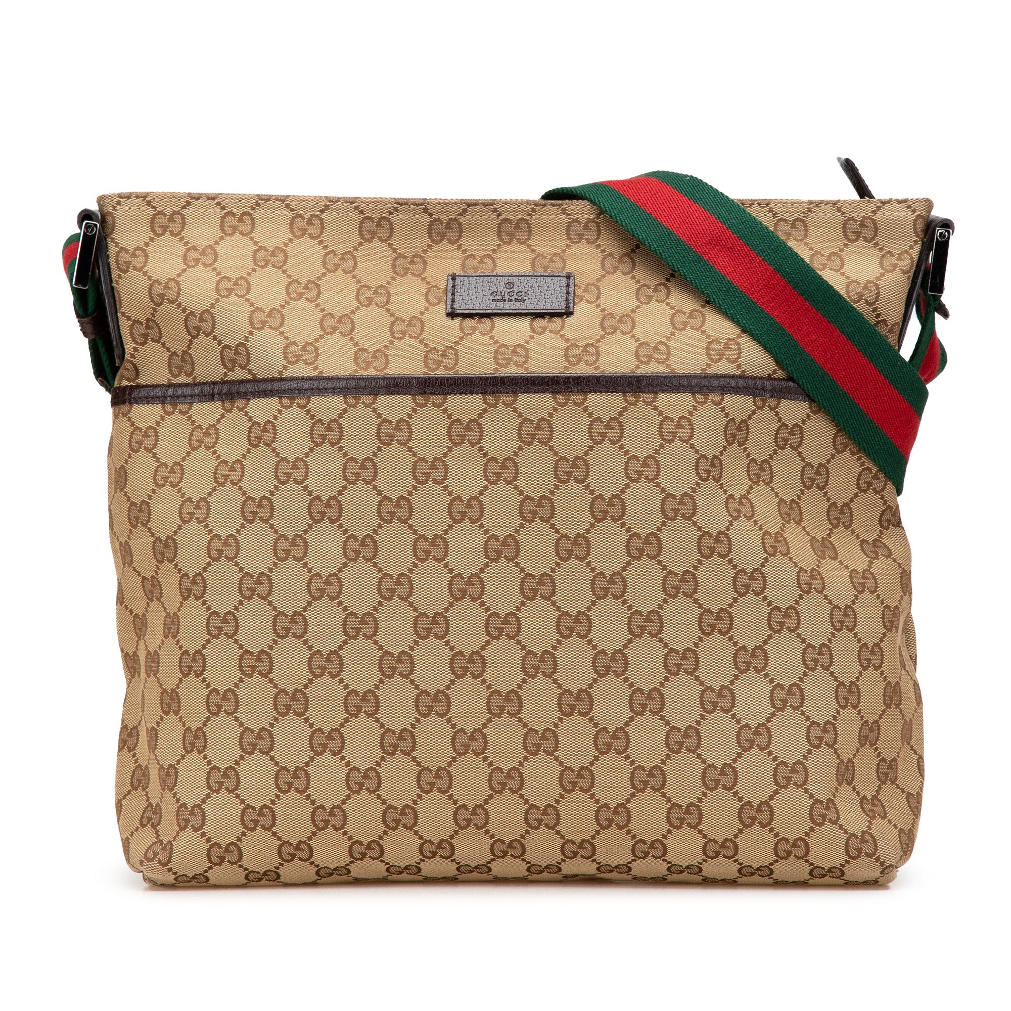 This crossbody bag features a canvas body with leather trim, an adjustable flat web strap, a top zip closure, an exterior slip pocket, and an interior zip pocket. Retail Price: 845.00
