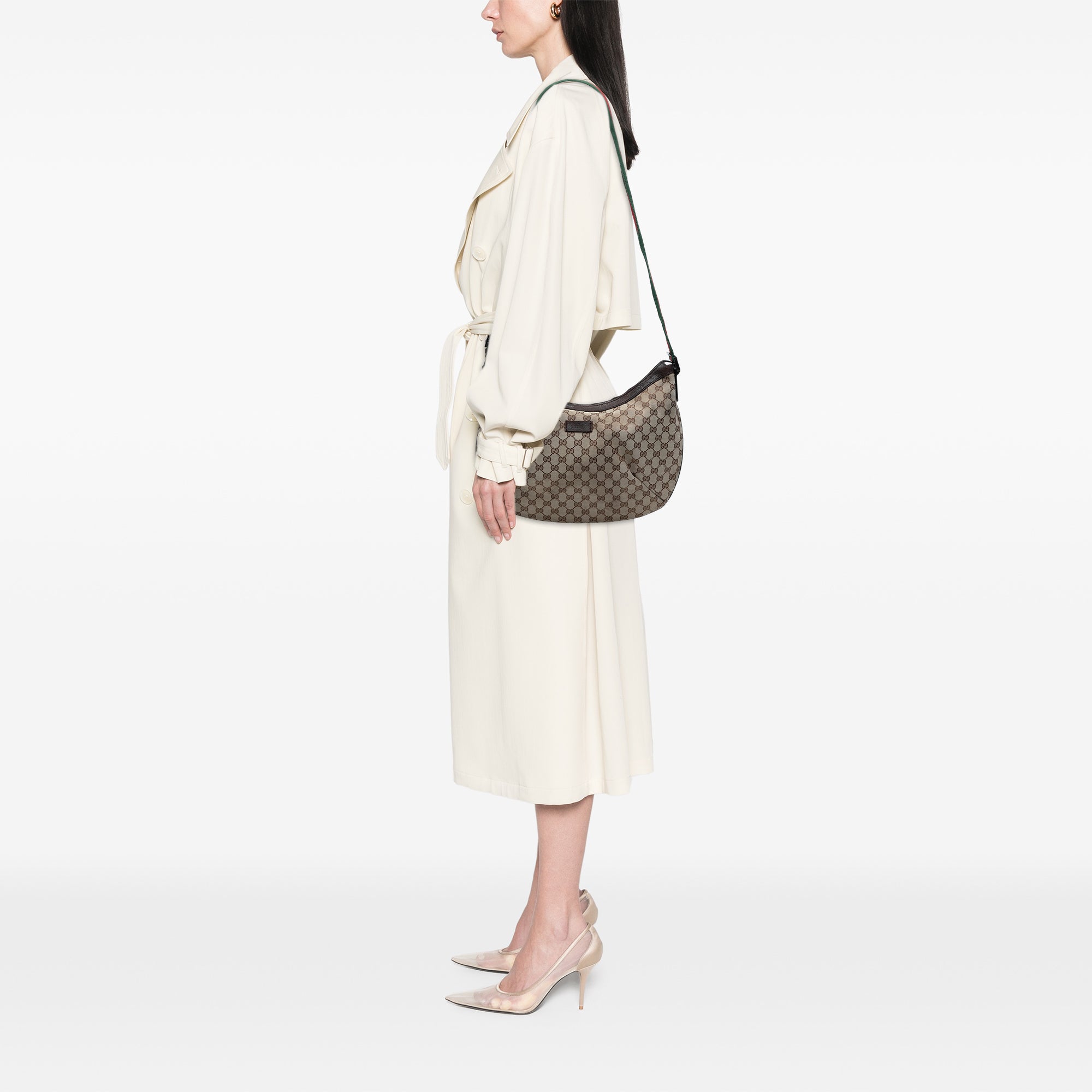 Gucci GG Canvas Web Half Moon Crossbody