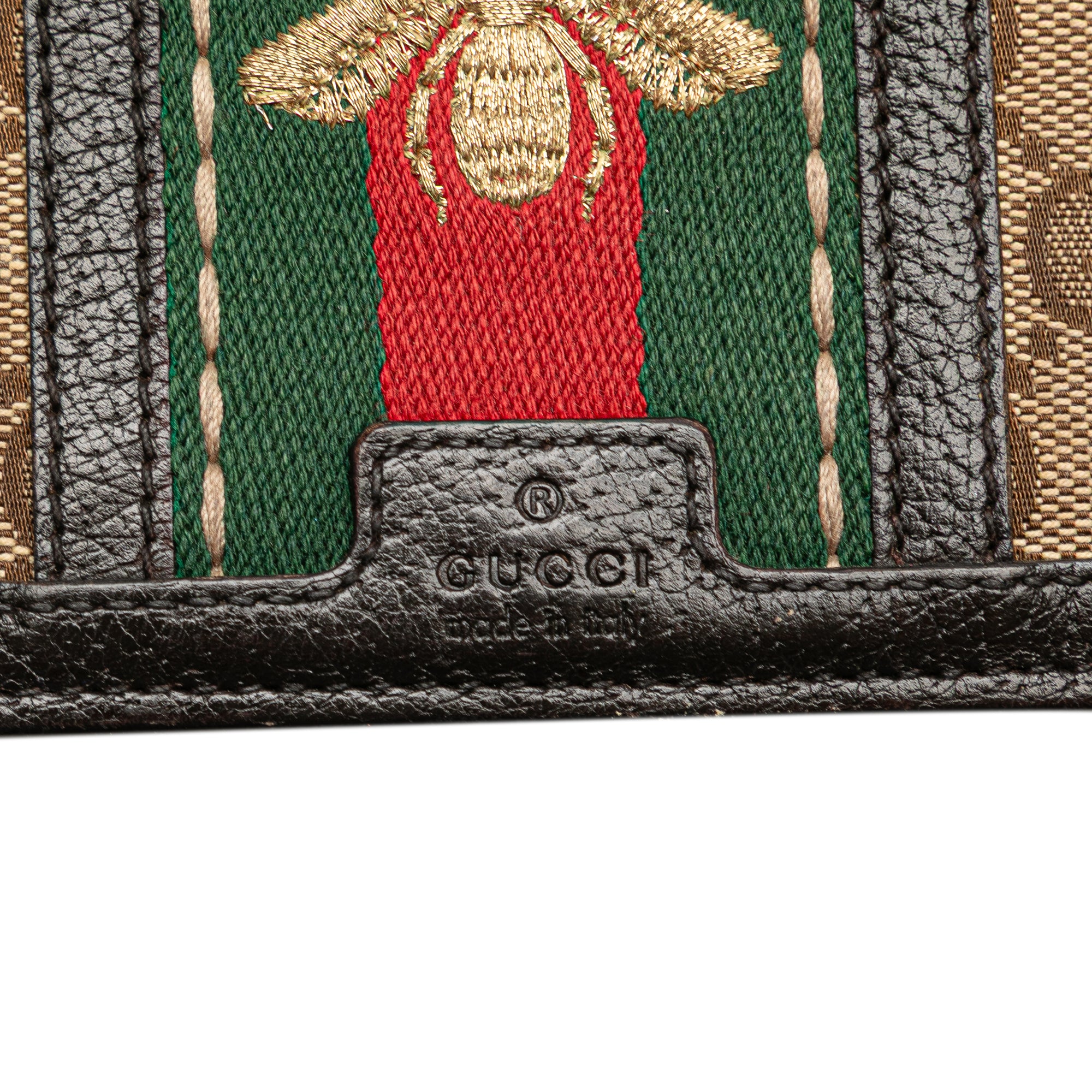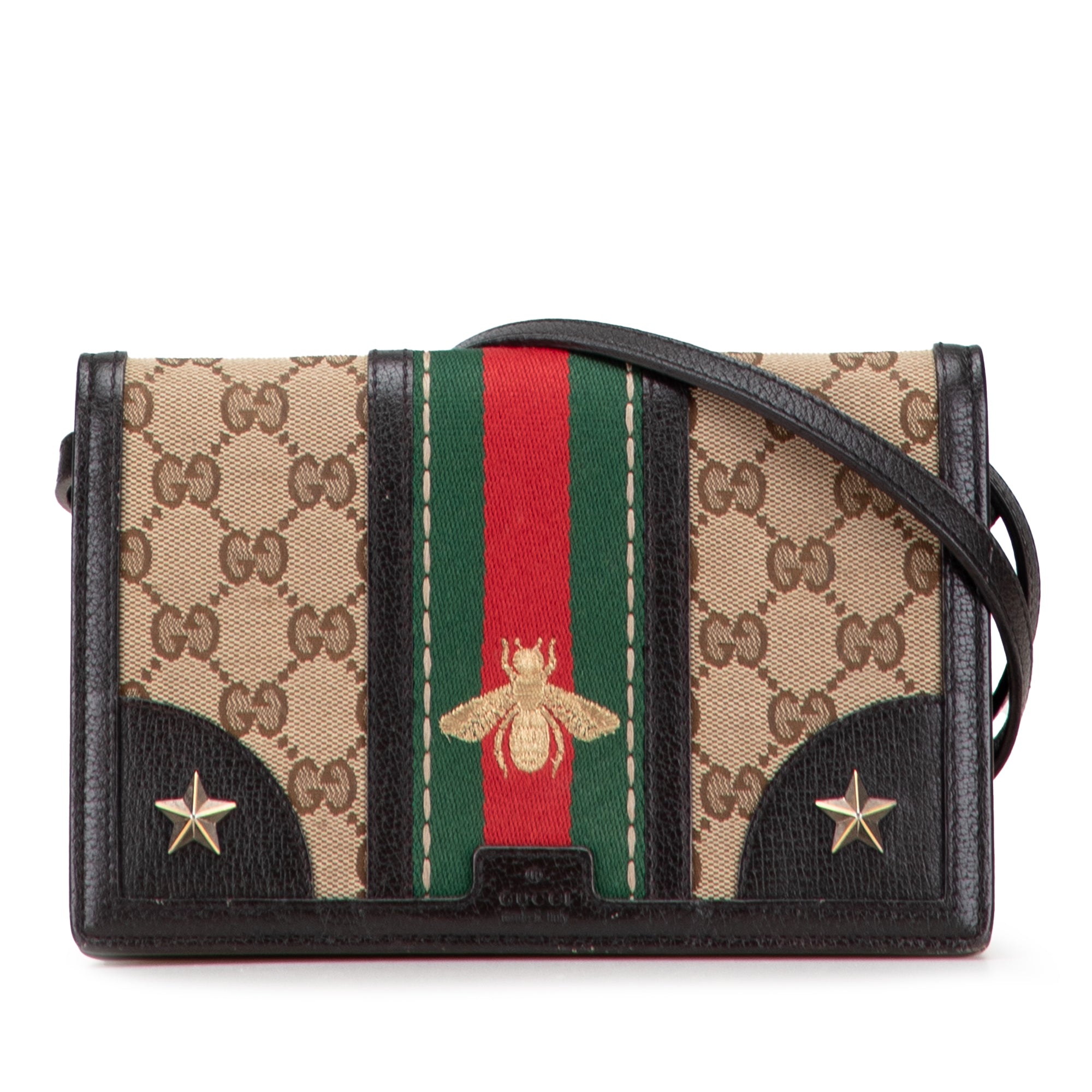 Gucci GG Canvas Webby Bee Wallet on Strap