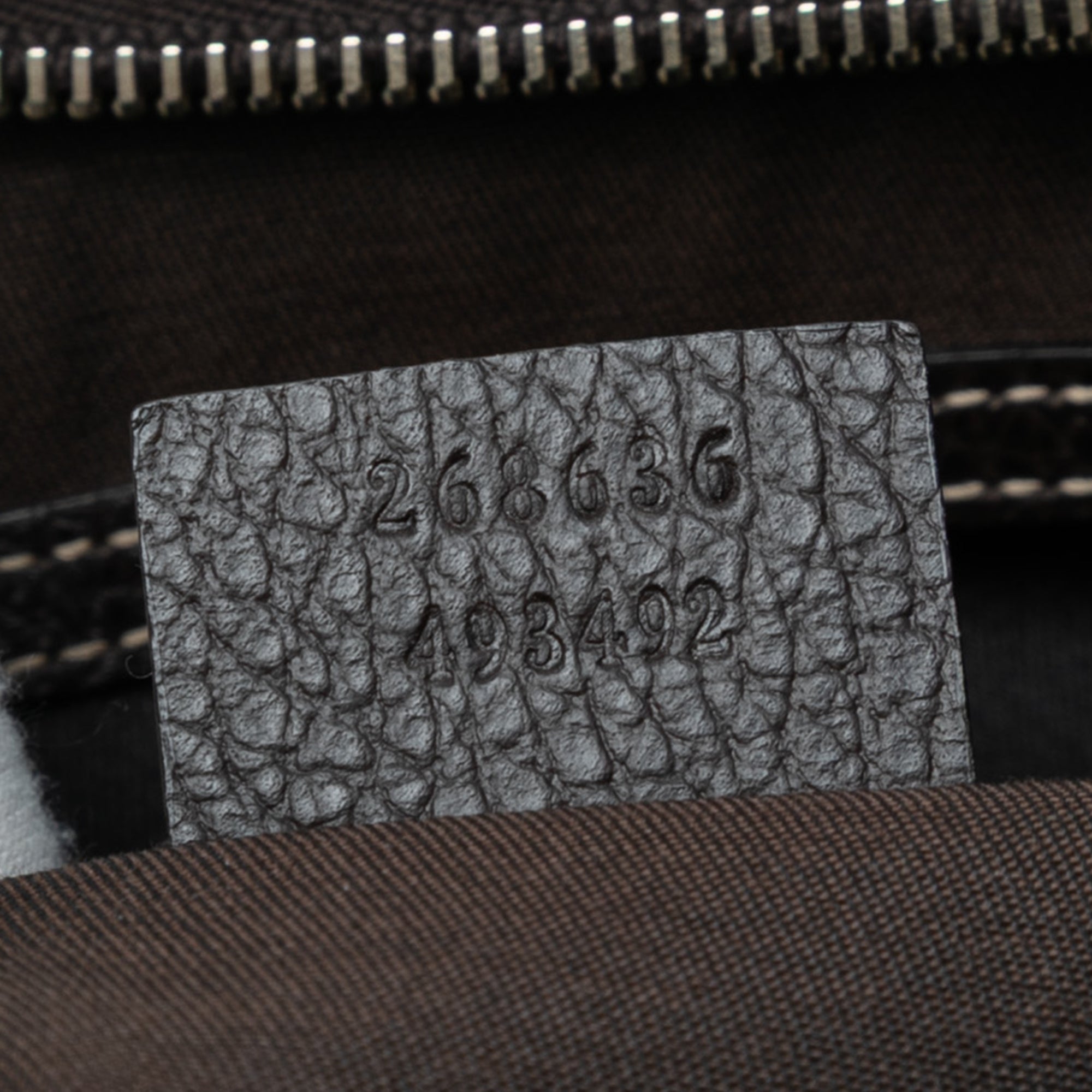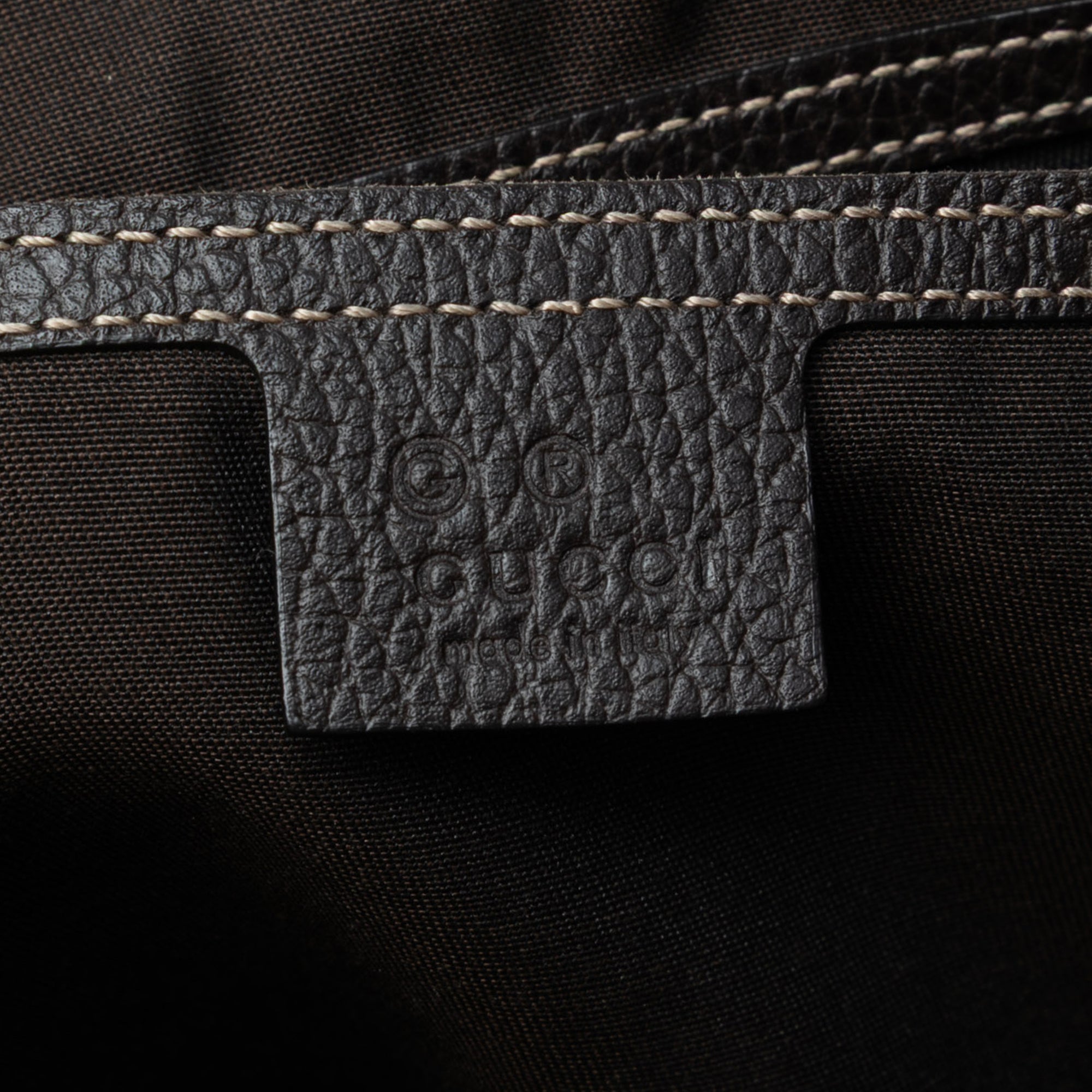 This Abbey D-Ring features a coated canvas body, a rolled leather handle, a top zip closure, and an interior slip pocket. Inclusion: Dust bag. Retail Price: 1100.00