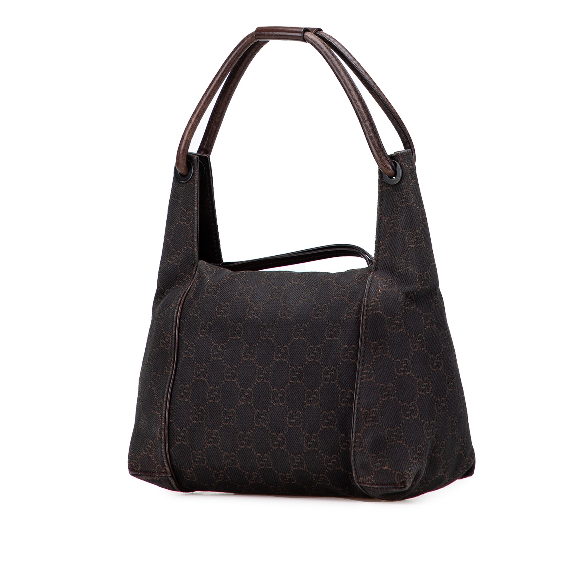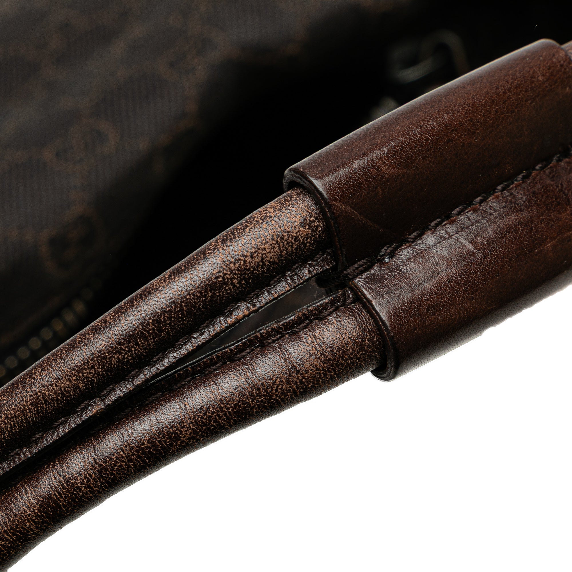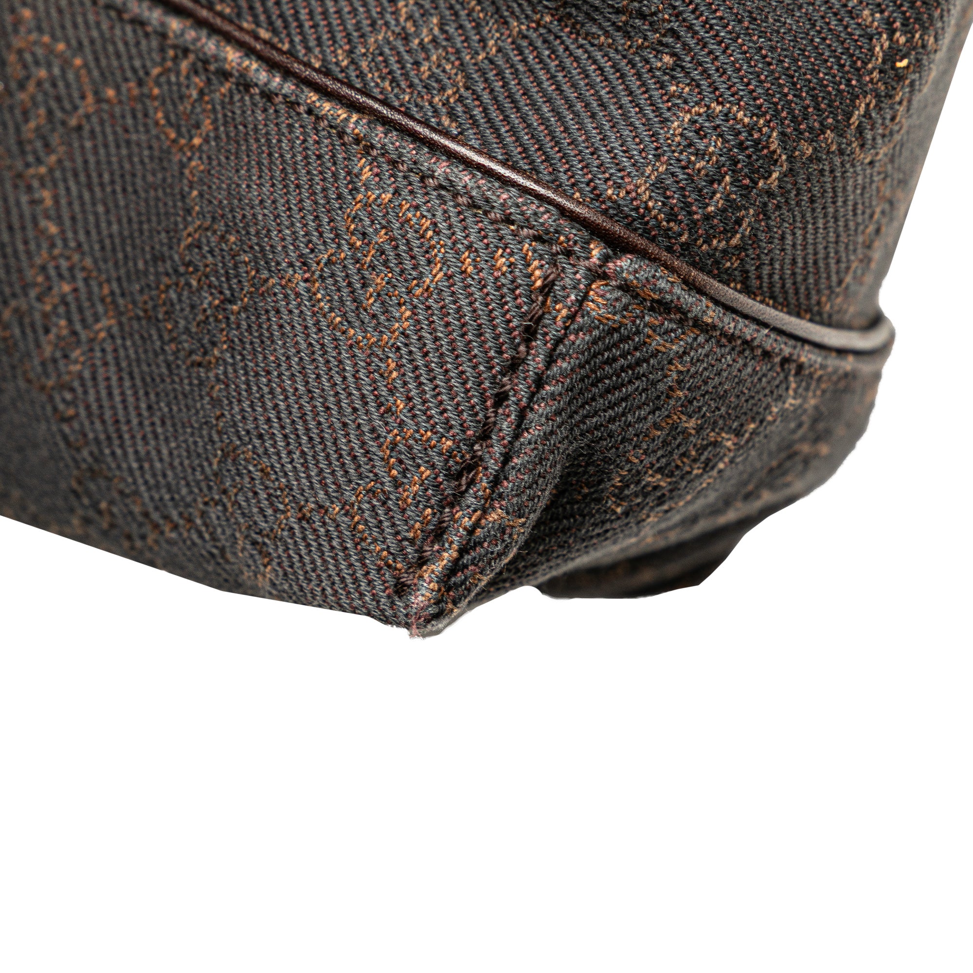 This handbag features a denim body with leather trim, rolled leather handles, a top zip closure, and an interior zip pocket. Retail Price: 800.00
