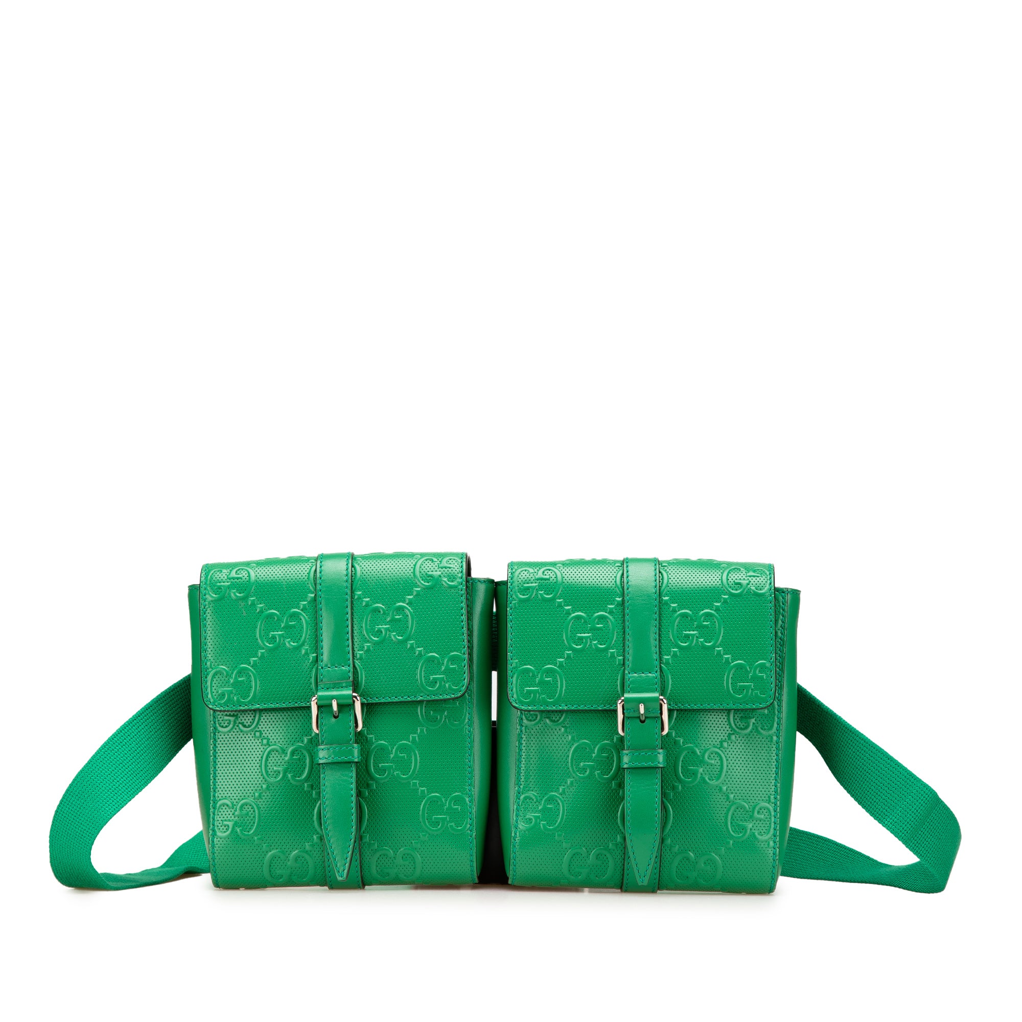 This belt bag features an embossed and perforated leather body, an adjustable flat waist strap, flaps with buckle details and magnetic snap button closures. Retail Price: 1295.00