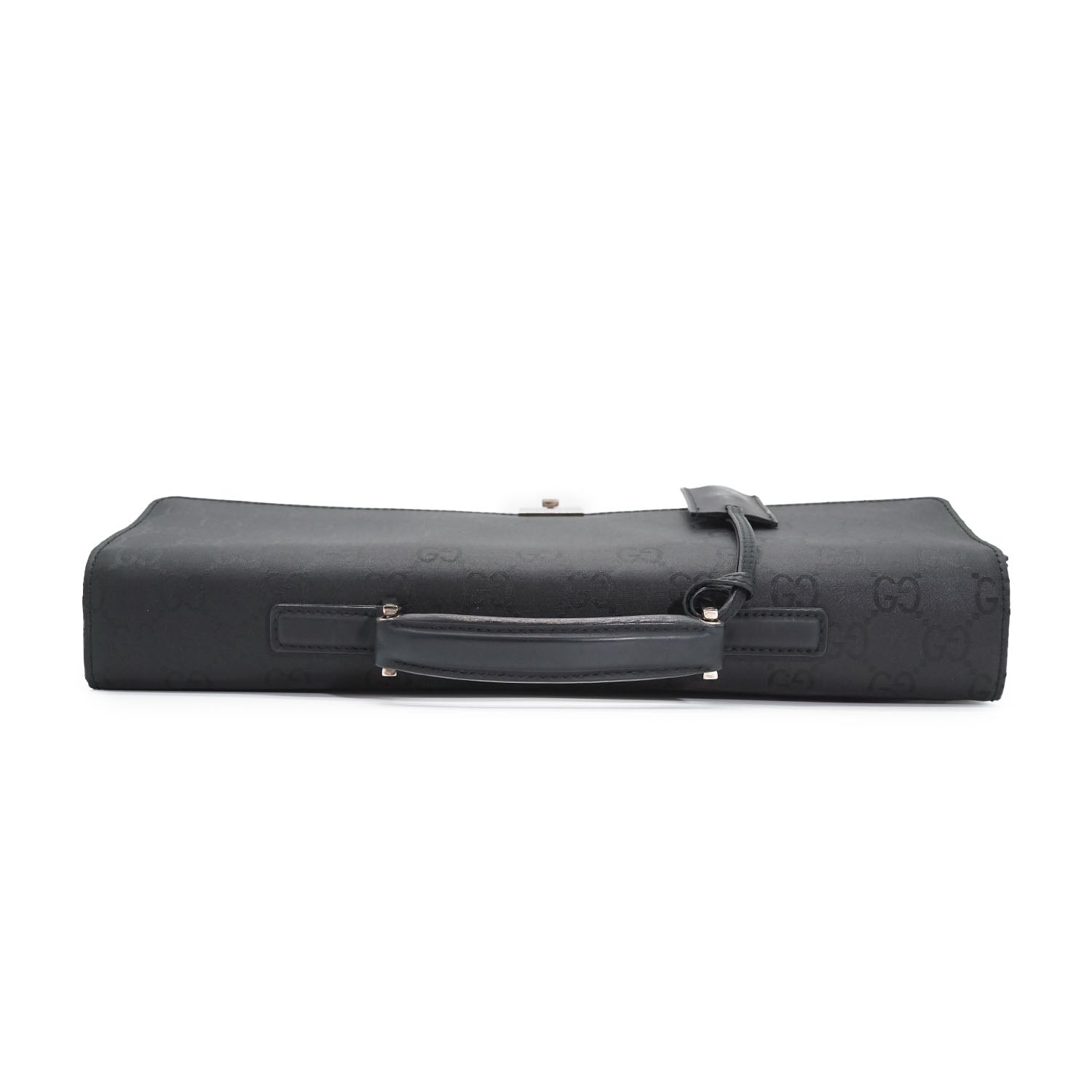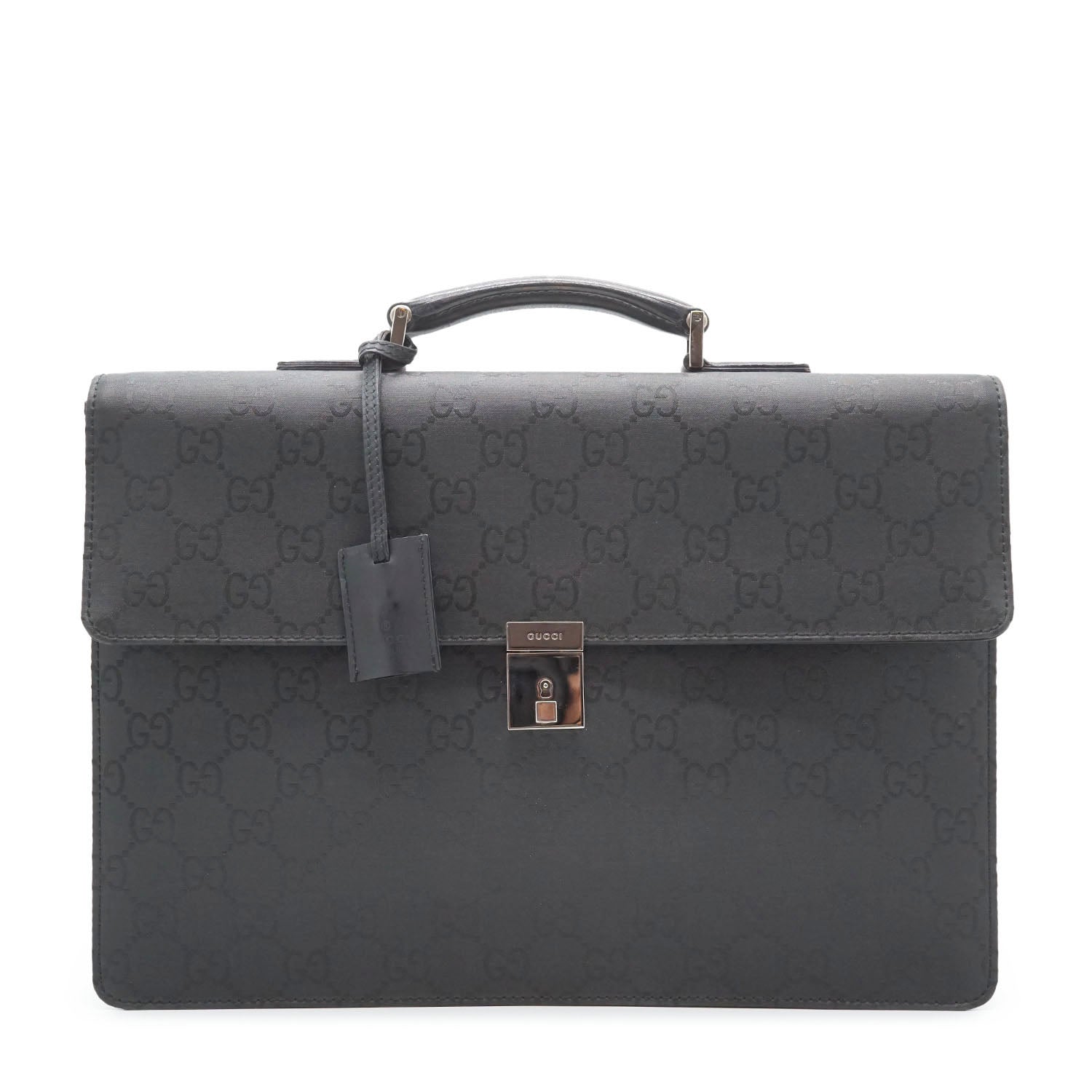 GG Lock Briefcase Black Canvas, LeatherDepth: 5.5cmHeight: 28cmWidth: 39cmHand Drop: 4cmOutside Rank: BInside Rank: BDiscoloration: Some hardware tarnishScratch: Some scratches on the leather parts (top handle, sides, inside of the flap)Include: Leather clochette, keySerial code: 015.0235 002214