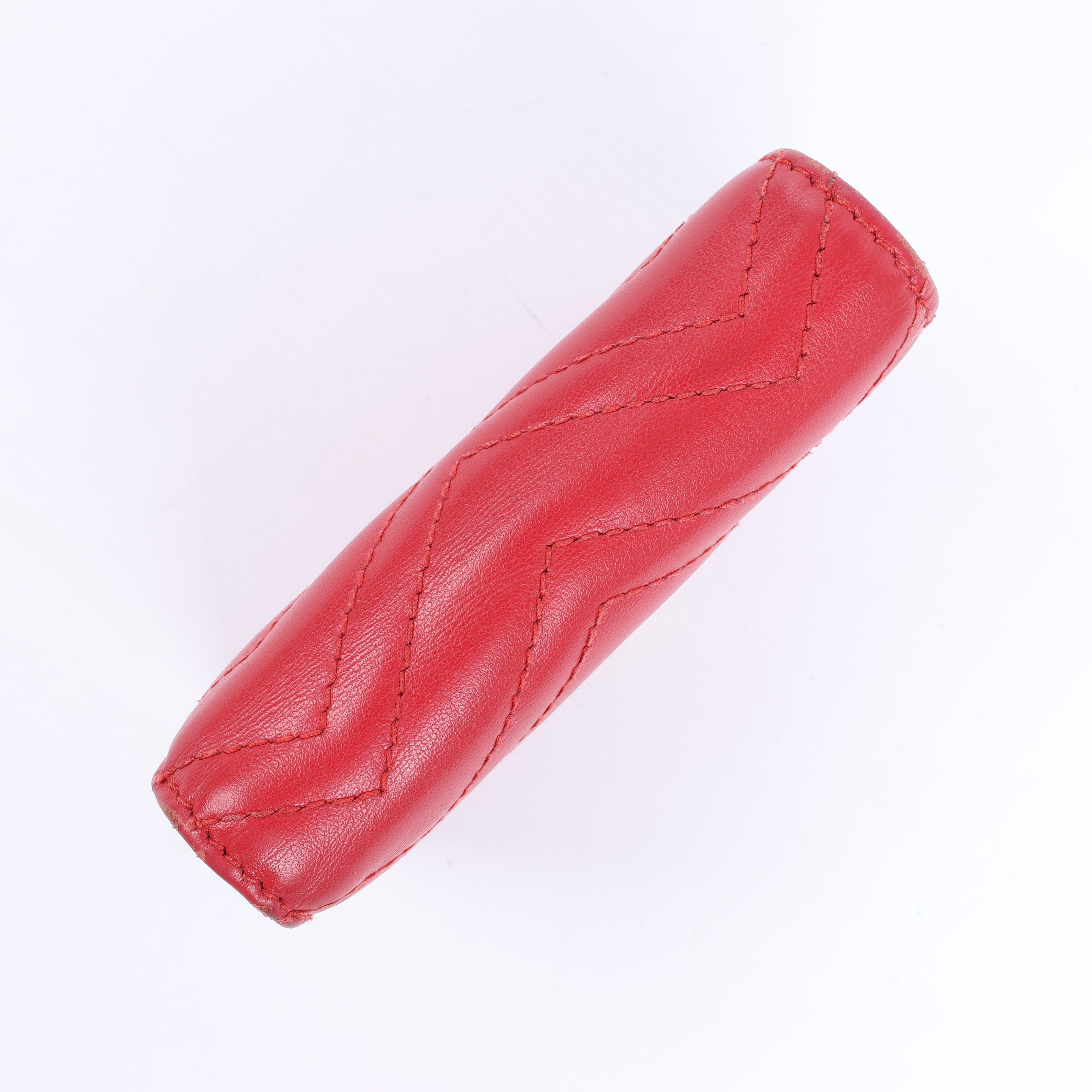 Chic and compact, this red Gucci GG Marmont wallet features soft quilted leather with chevron stitching and gold-tone GG logo hardware. A bold yet elegant accessory perfect for everyday luxury.
