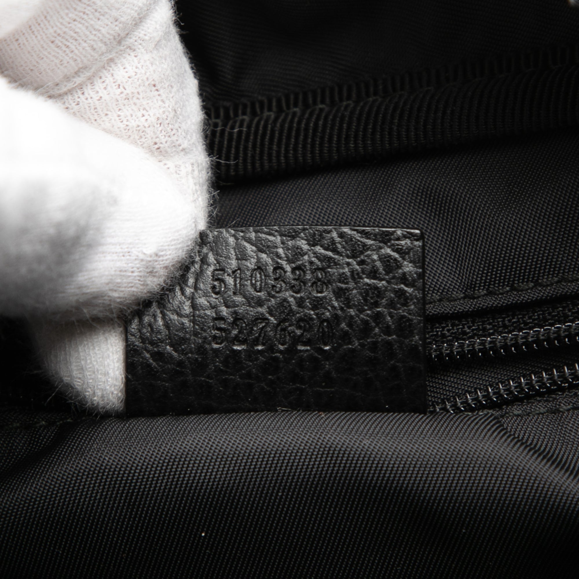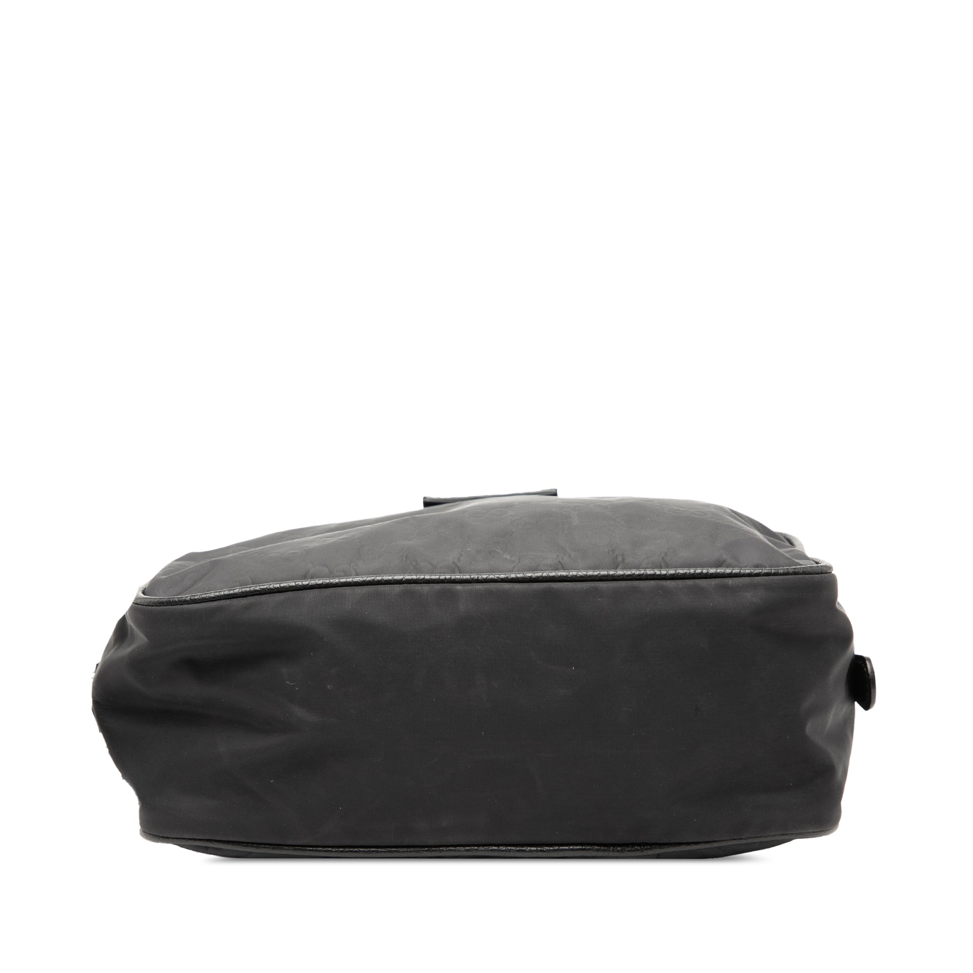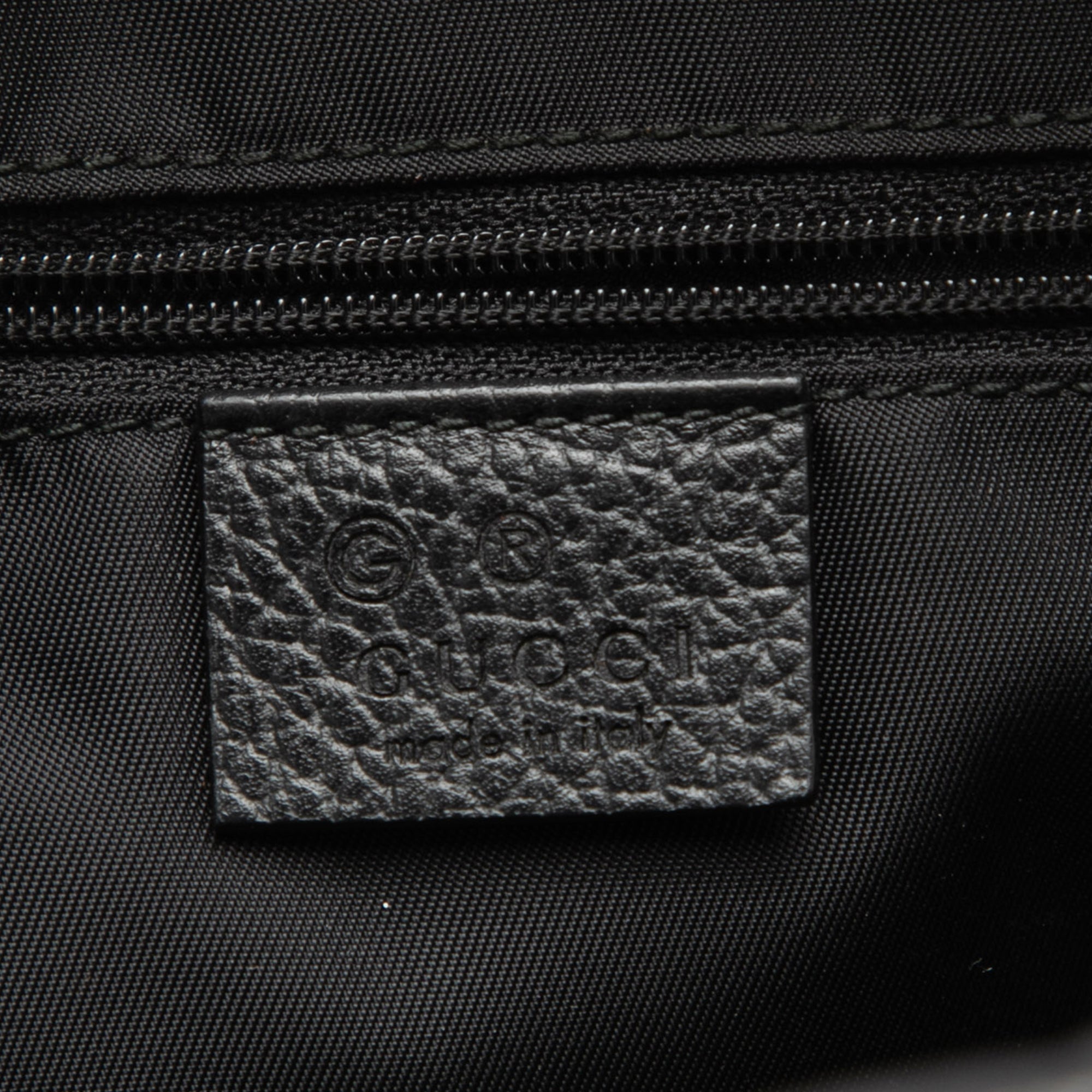 This pouch features a nylon body with leather trim, a flat leather side handle, a top zip closure, and an interior zip pocket. Retail Price: 515.00