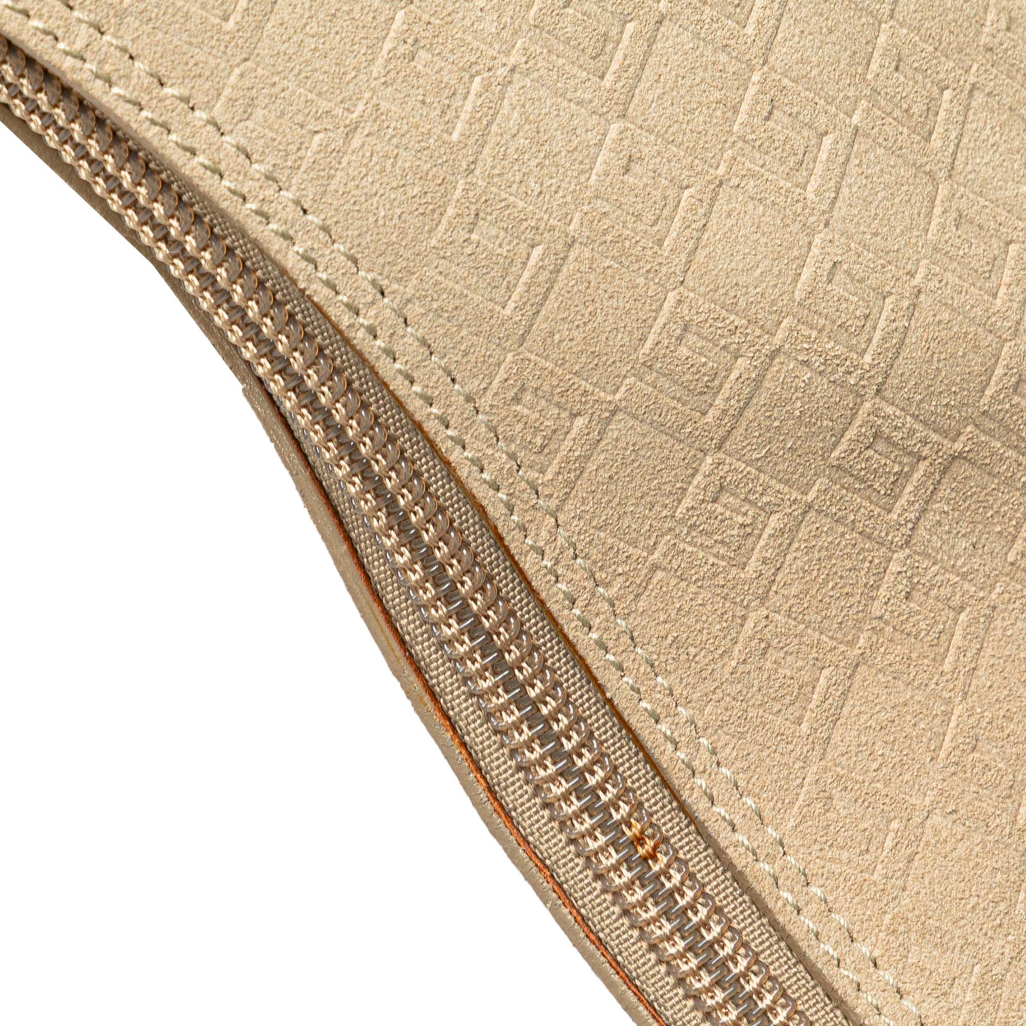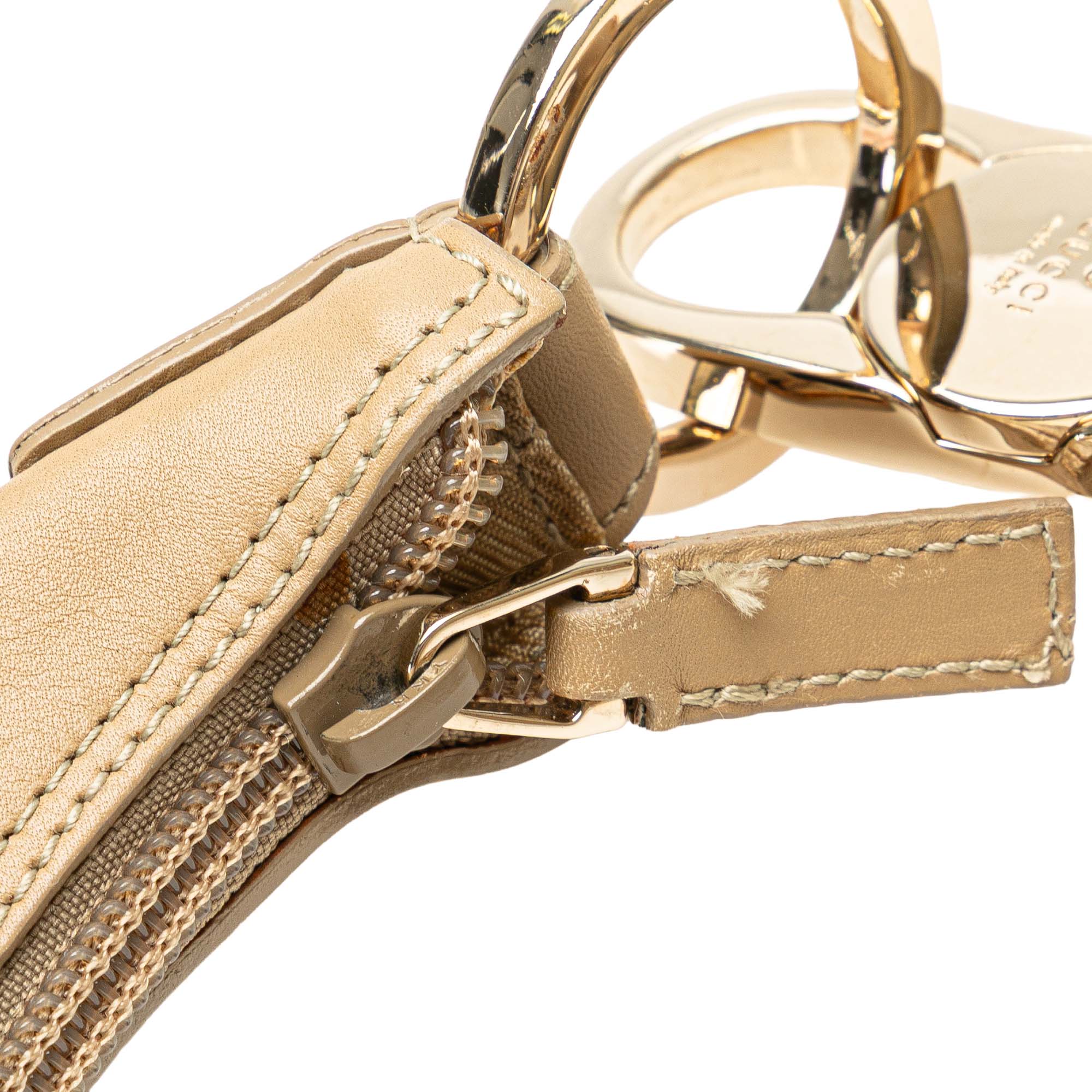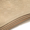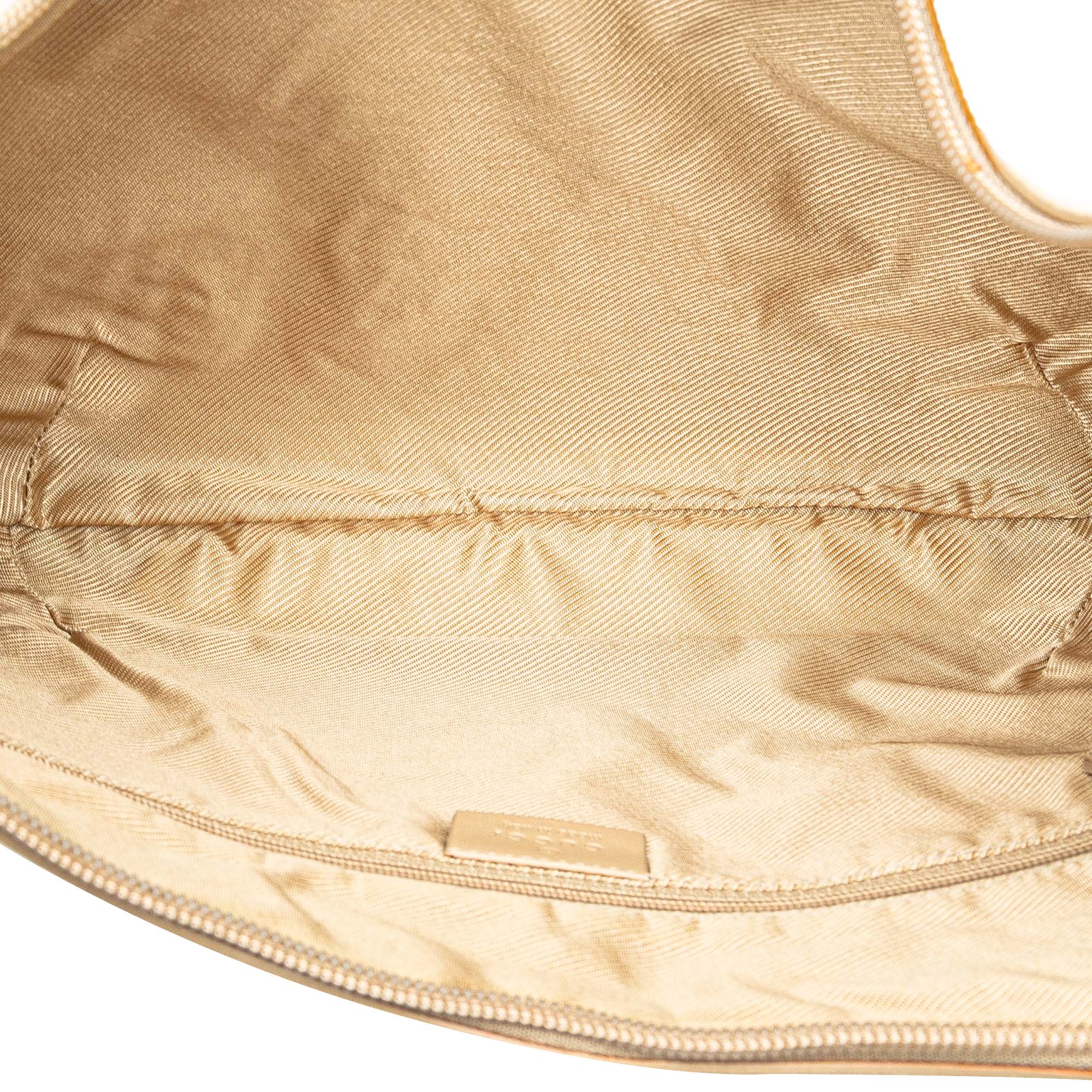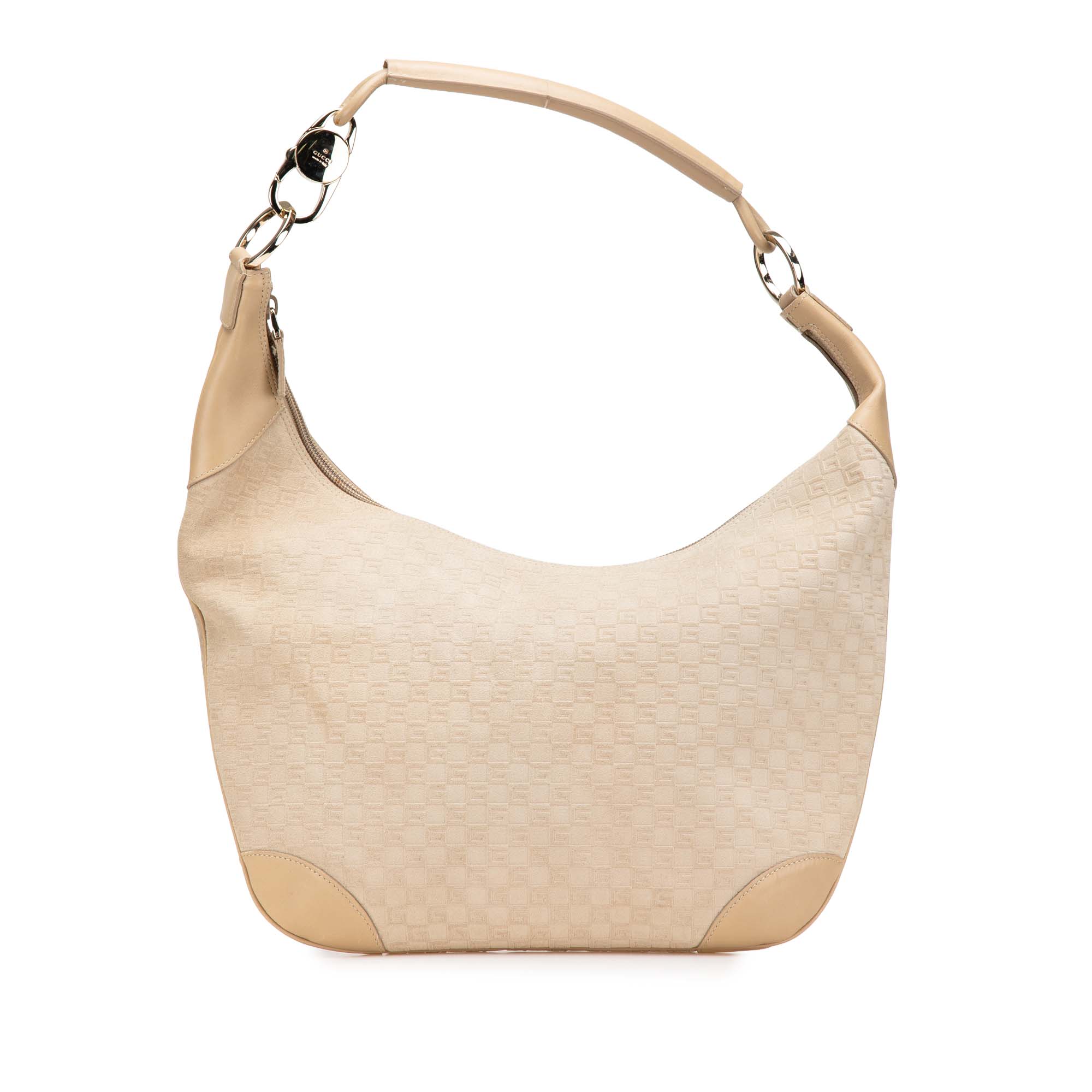 This shoulder bag features a canvas body with leather trim, a rolled leather handle, a top zip closure, and an interior zip pocket. Retail Price: 790.00