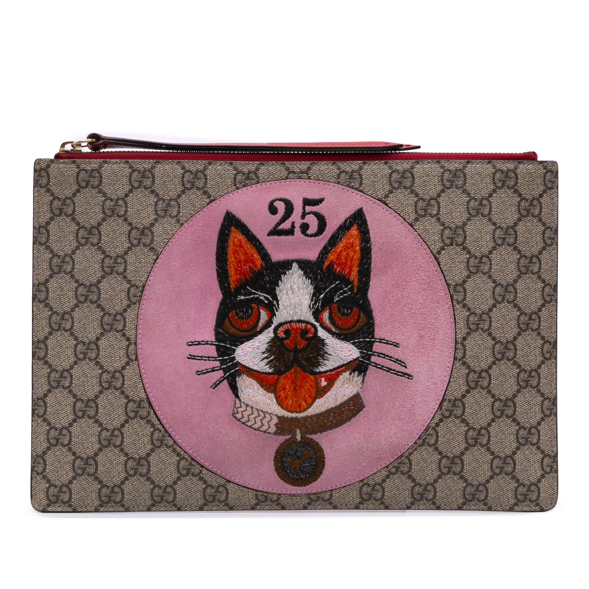 This clutch bag features a coated canvas and leather body, and a top zip closure. Retail Price: 700.00