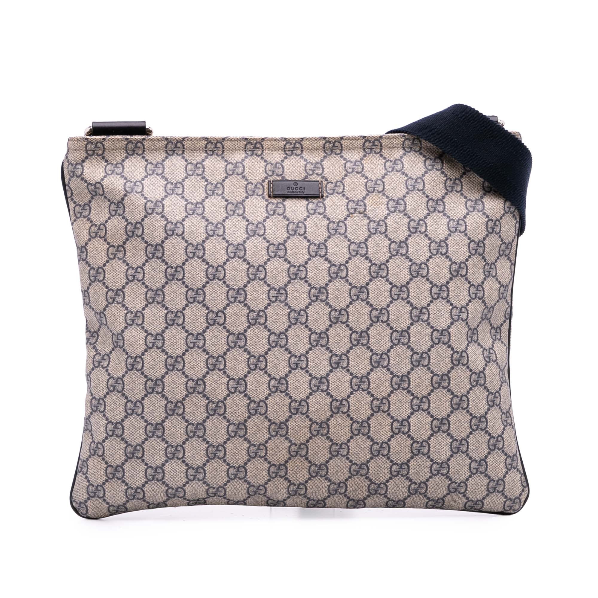 This crossbody bag features a coated canvas body with leather trim, an adjustable flat shoulder strap, a top zip closure, and an interior slip pocket. Inclusion: Dust bag. Retail Price: 990.00