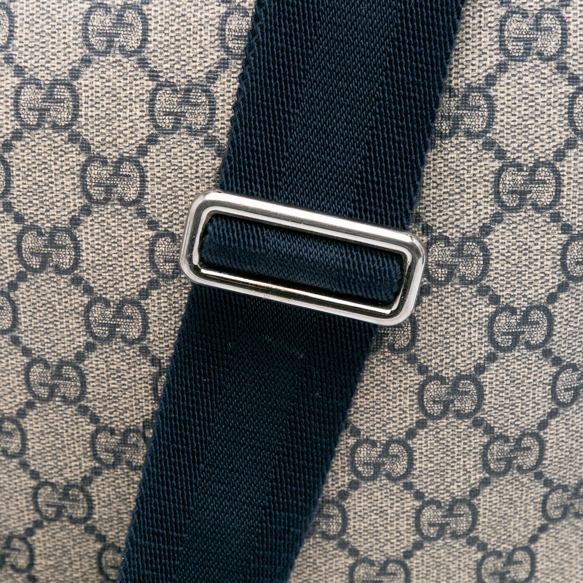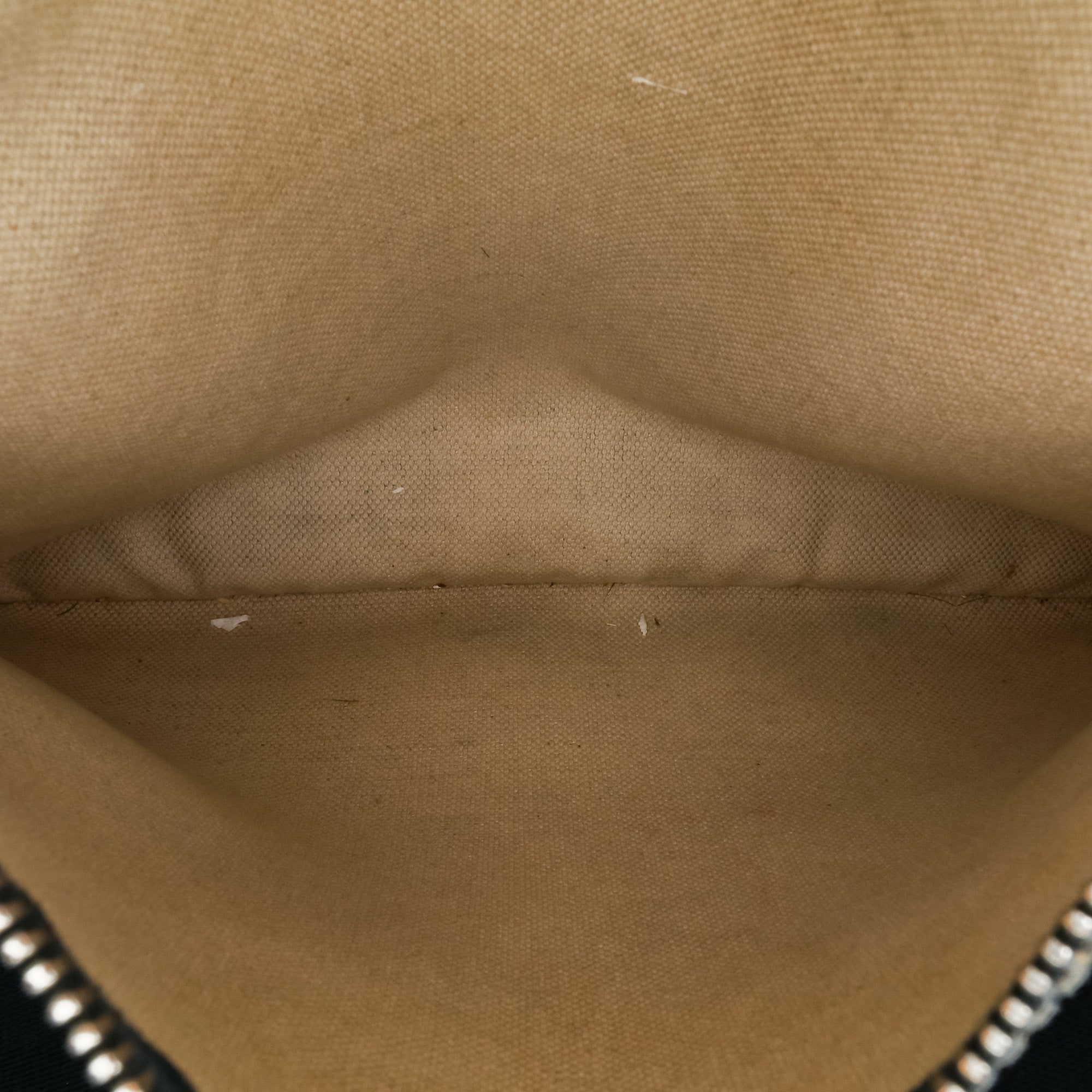 This crossbody bag features a coated canvas body with leather trim, a flat strap, a top zip closure, an exterior front zip pocket, and an interior slip pocket. Retail Price: 1350.00