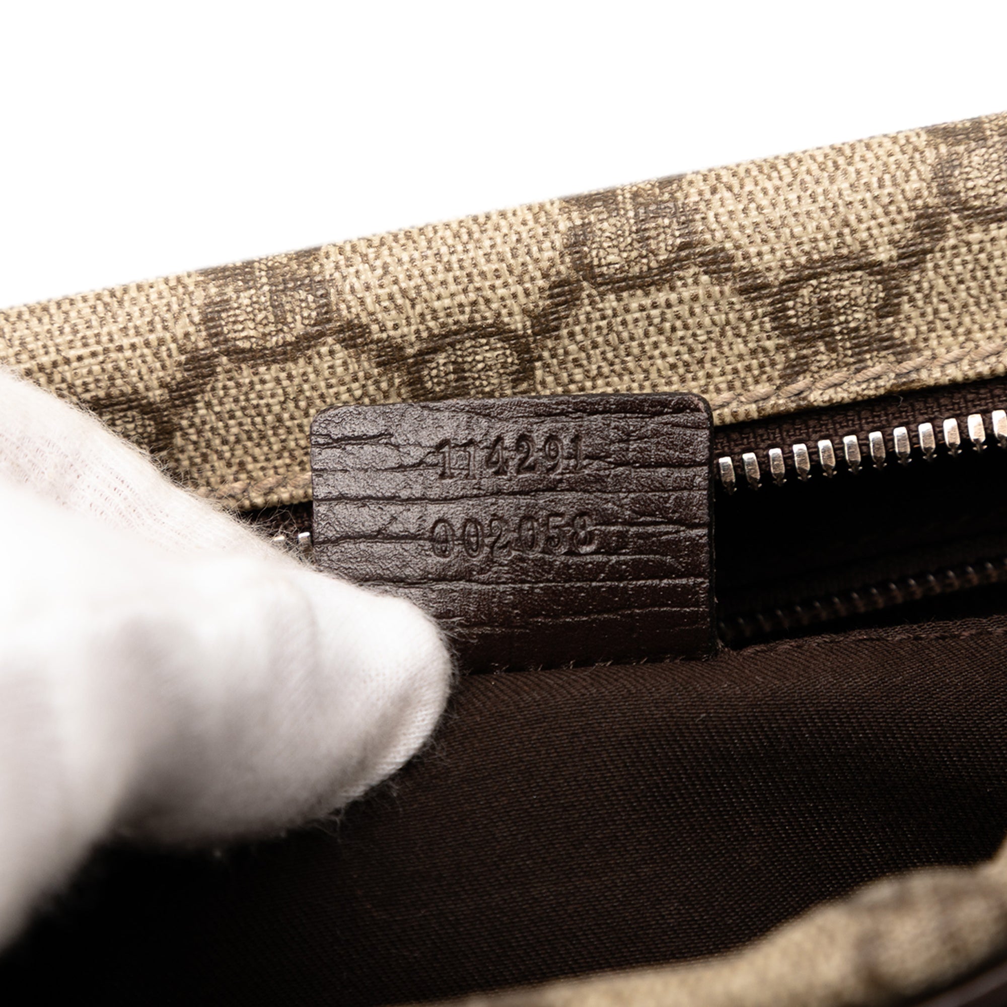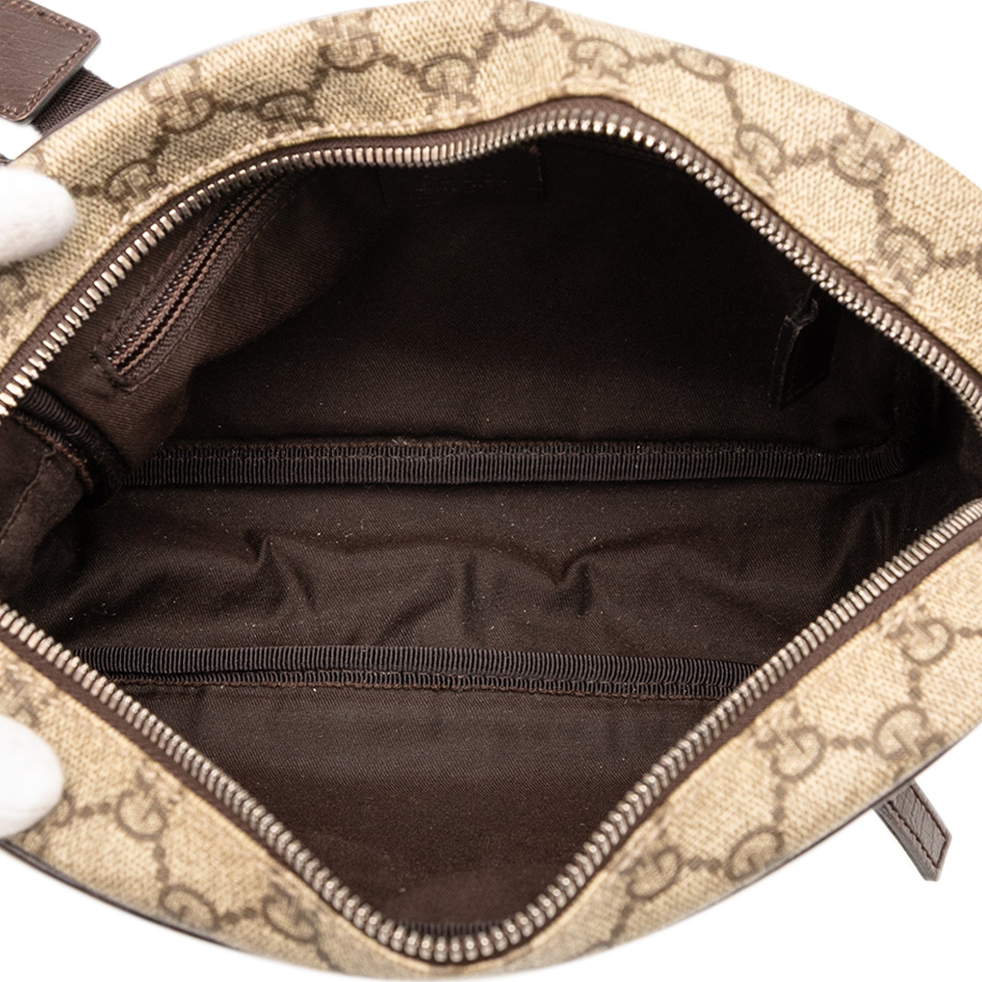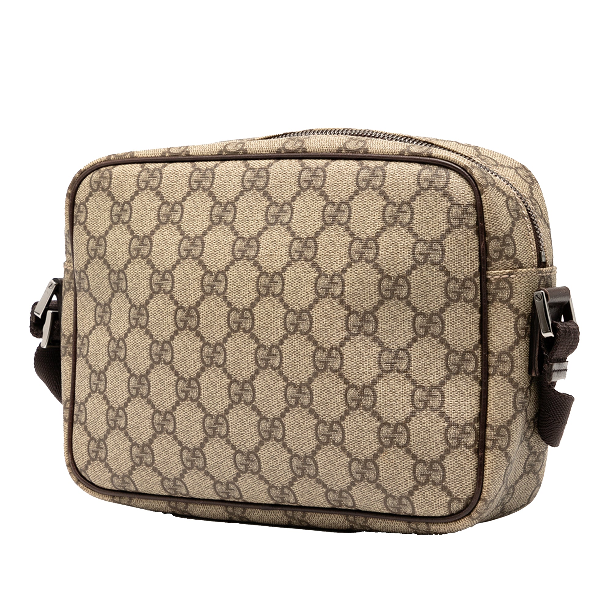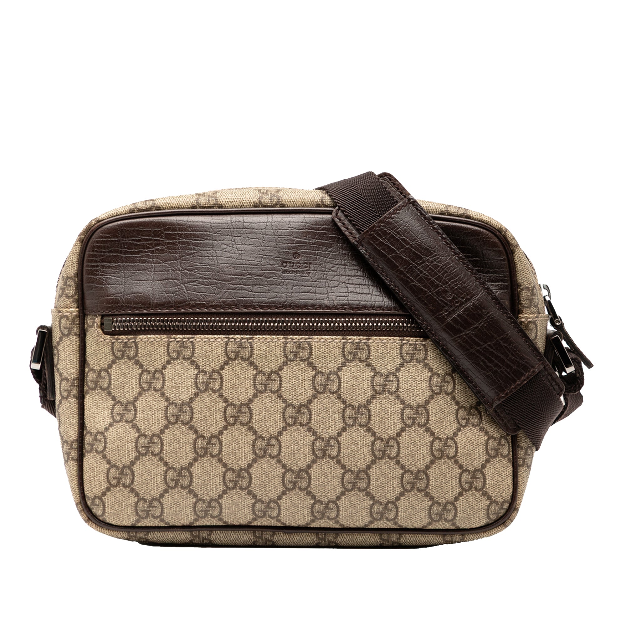 This crossbody bag features coated canvas body with leather trim, an adjustable flat strap, a top zip closure, an exterior front zip pocket, and an interior zip pocket. Retail Price: 1010.00