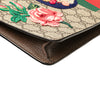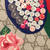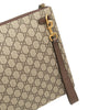 This clutch bag features an embroidered coated canvas body with web detail and button embellishments, a flat leather wrist strap, a top zip closure, and an interior zip pocket. Retail Price: 1050.00